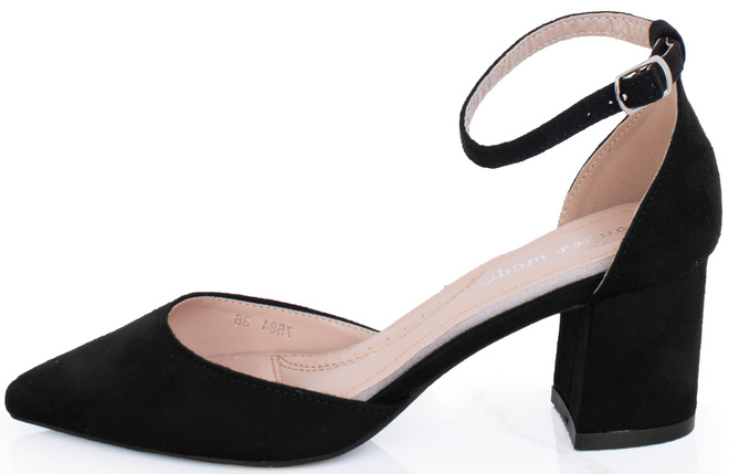 Jeśli szukasz czółenek, które będą wyglądać zarówno elegancko, jak i modnie, to mamy coś dla Ciebie! Nasze czółenka wykonane są z wysokiej jakości zamszu, mają obcas typu słupek i zapięcie wokół kostki na sprzączkę. Model ma spiczasty nosek, który dodaje mu klasycznego charakteru. Możesz je nosić na wiele różnych okazji, od oficjalnych spotkań po codzienne wyjścia. Dzięki swojemu uniwersalnemu wyglądowi będą stanowić doskonały dodatek do Twojej garderoby. Bądź pewna, że będziesz wyglądać w nich pięknie i modnie!