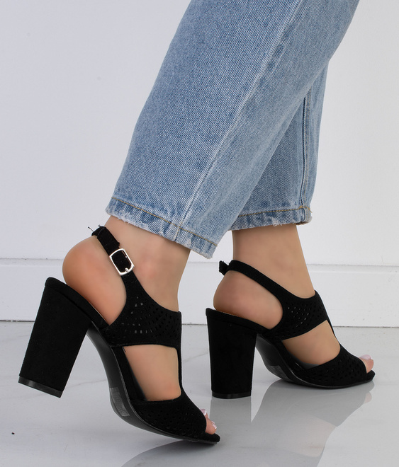 CZARNE KLASYCZNE SANDAŁY ZAMSZOWE NA SŁUPKU KRISTY