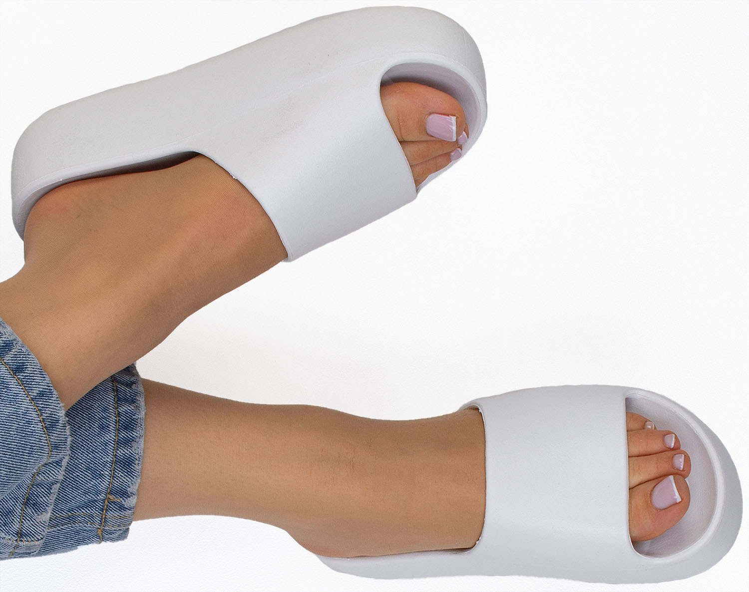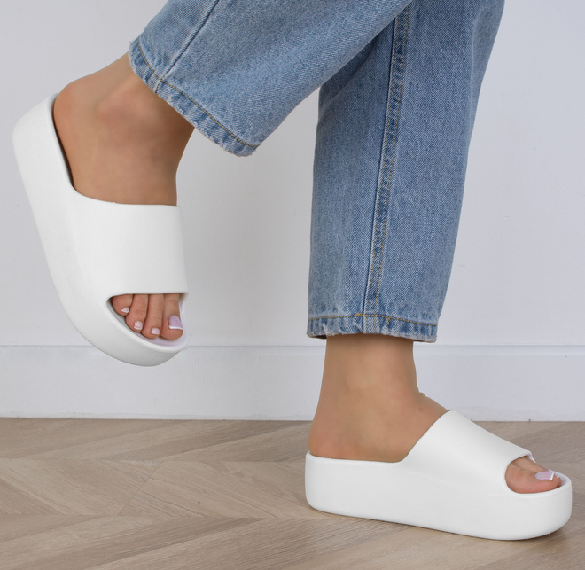 Białe gumowe klapki to idealne obuwie na lato, które łączy w sobie wygodę i funkcjonalność. Ich klasyczny kolor sprawia, że pasują do wielu różnych stylizacji, zarówno na plażę, jak i na spacer po mieście czy basen. Te klapki posiadają cholewkę wykonaną z elastycznego i wytrzymałego tworzywa gumowego, co gwarantuje trwałość i łatwość w utrzymaniu czystości. Miękka wkładka zapewnia dodatkowy komfort podczas chodzenia, a solidna podeszwa z antypoślizgowym wzorem zapewnia stabilność na różnych powierzchniach. Białe gumowe klapki są nie tylko praktycznym obuwiem na co dzień, ale również doskonale sprawdzą się na plaży, w basenie czy w ogrodzie. Ich prosty design i funkcjonalność sprawiają, że są niezastąpione podczas letnich aktywności.