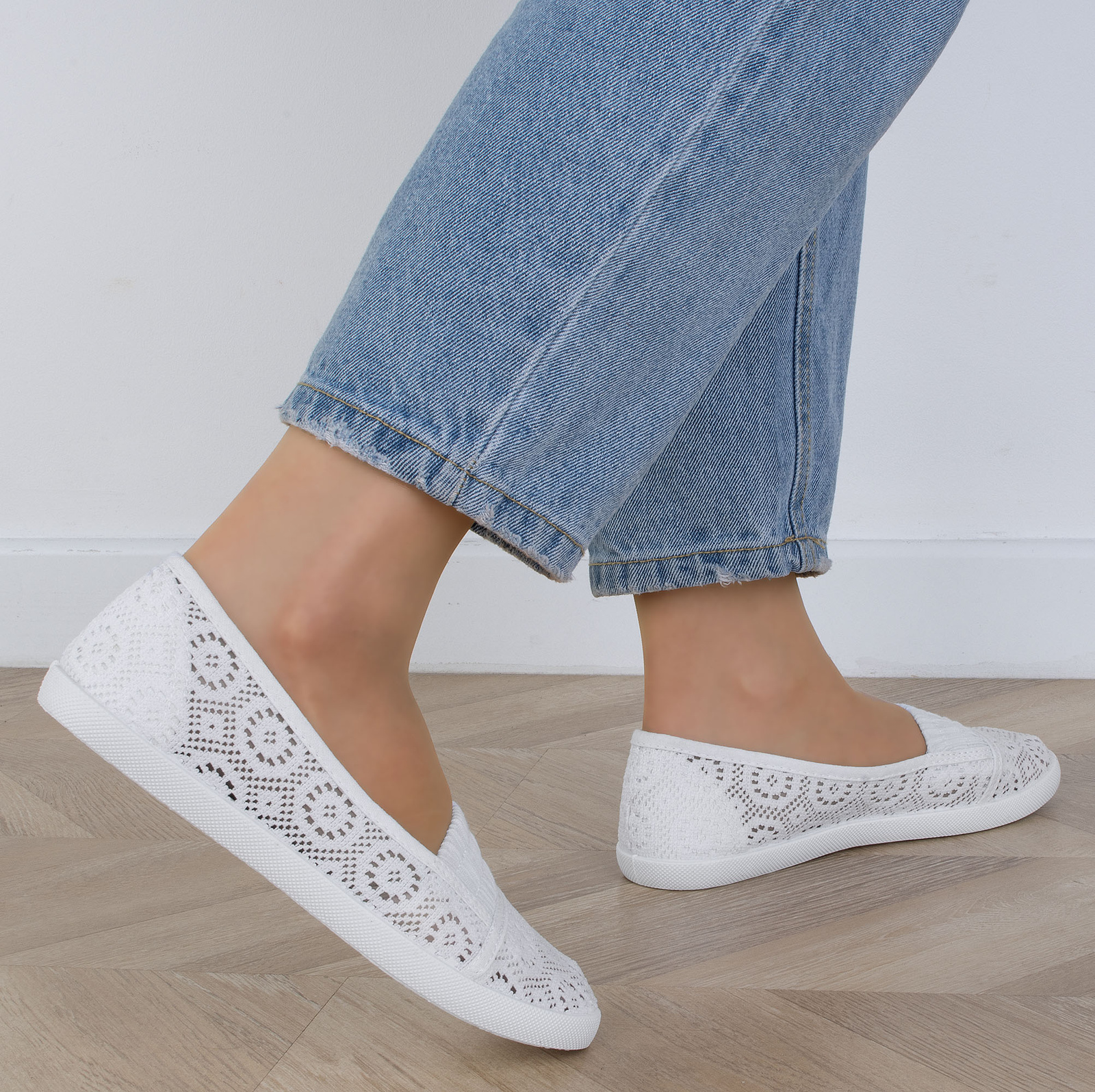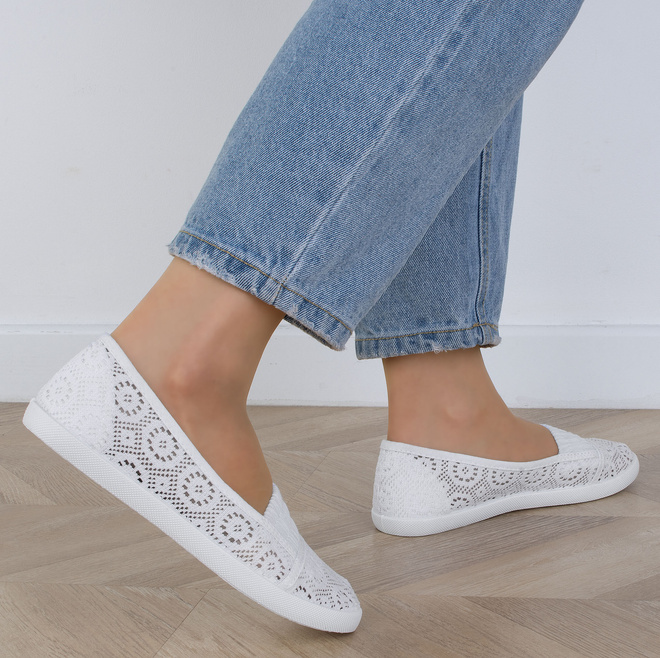 BIAŁE KORONKOWE TRAMPKI BALERINKI TENISÓWKI SULA