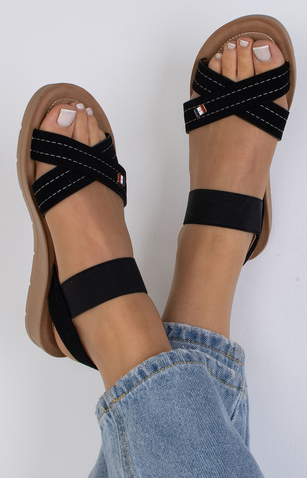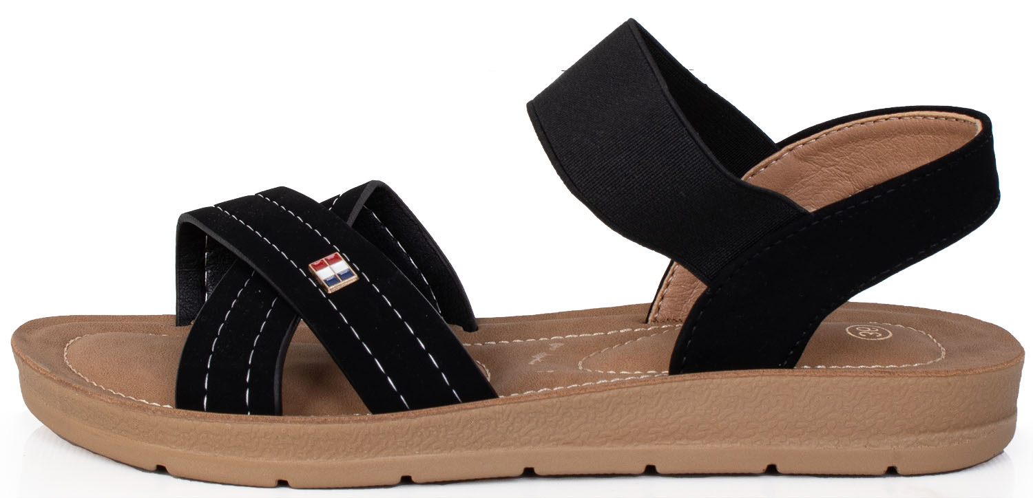 Czarne lekkie sandały z ozdobą to elegancki i wygodny wybór na letnie dni. Wykonane z wysokiej jakości materiałów, charakteryzują się lekkością i komfortem noszenia. Czarny kolor nadaje im uniwersalności, dzięki czemu łatwo je dopasować do różnych stylizacji.