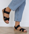 Dzięki płaskiej podeszwie, sandały zapewniają wygodę nawet podczas długiego noszenia, a solidne zapięcia gwarantują dobre dopasowanie do stopy.