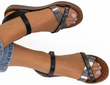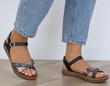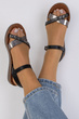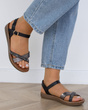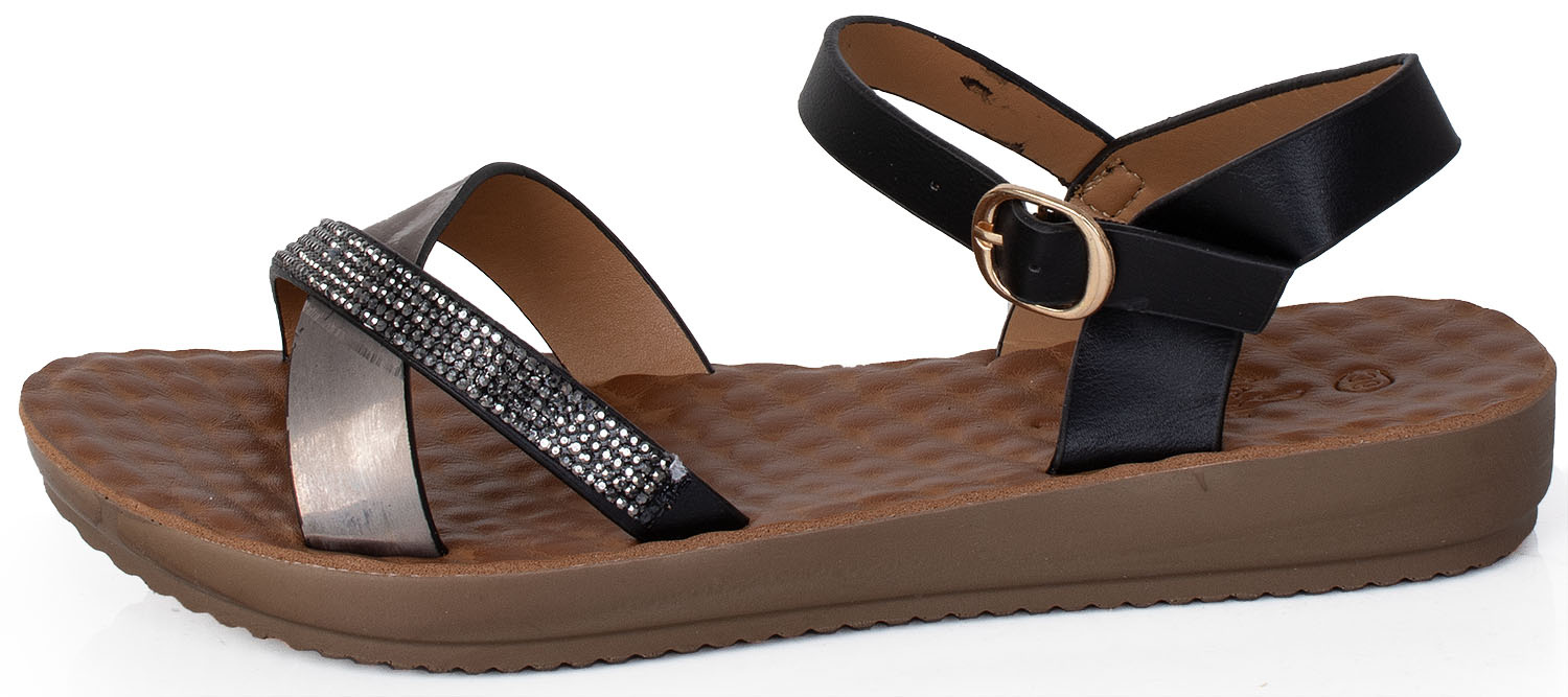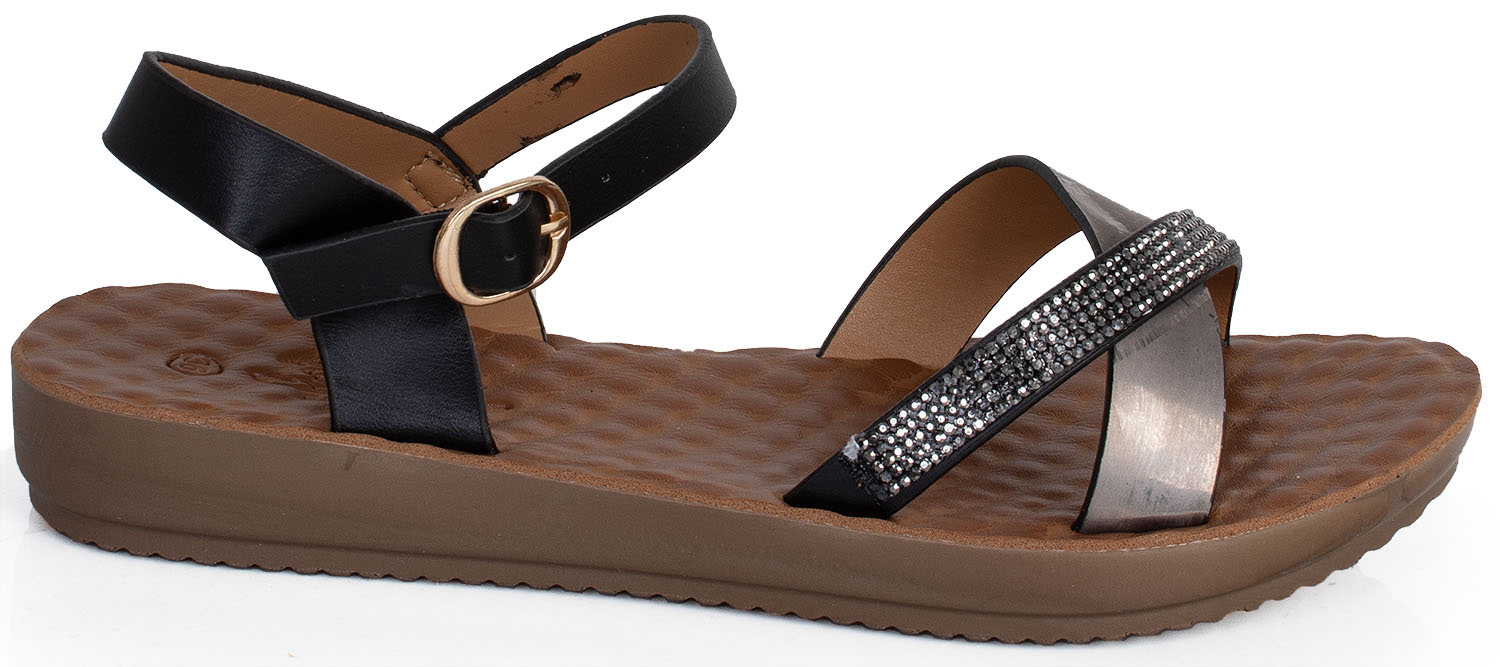 Czarne lekkie sandały z ozdobą to elegancki i wygodny wybór na letnie dni. Wykonane z wysokiej jakości materiałów, charakteryzują się lekkością i komfortem noszenia. Czarny kolor nadaje im uniwersalności, dzięki czemu łatwo je dopasować do różnych stylizacji. Ozdoby dodają tym sandałom wyjątkowego i luksusowego akcentu, podkreślając ich elegancki charakter. Dzięki płaskiej podeszwie, sandały zapewniają wygodę nawet podczas długiego noszenia, a solidne zapięcia gwarantują dobre dopasowanie do stopy. Te sandały idealnie sprawdzą się zarówno na co dzień, jak i na specjalne okazje, dodając stylu i klasy każdej stylizacji. Noszone z letnimi sukienkami, spódnicami czy spodniami, czarne lekkie sandały ze złotą ozdobą będą doskonałym uzupełnieniem Twojej garderoby..