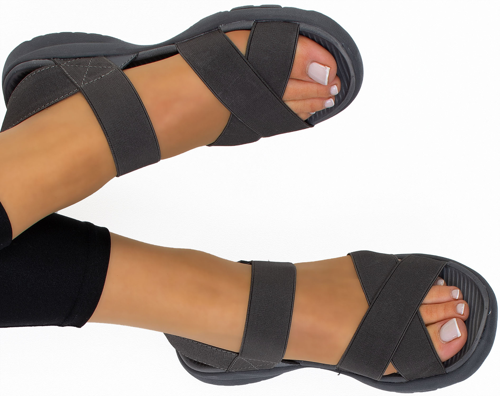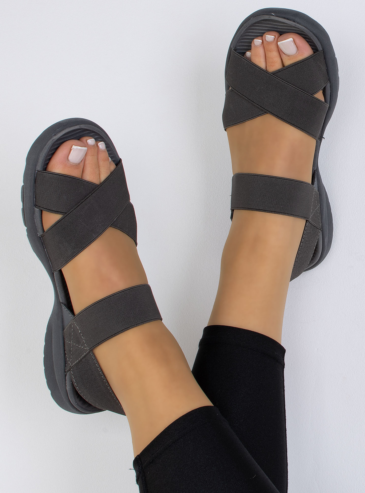 LEKKIE WSUWANE SZARE SANDAŁY Z ELASTYCZNĄ CHOLEWKĄ