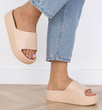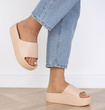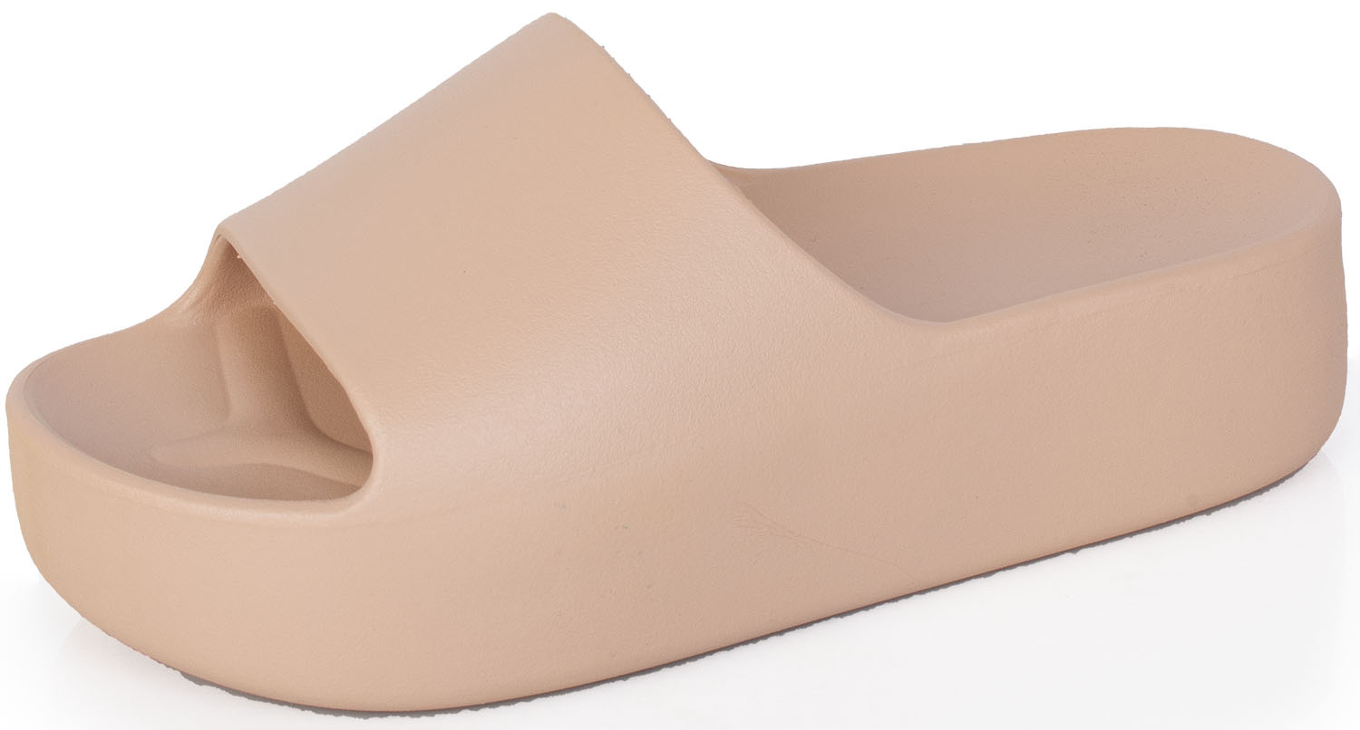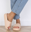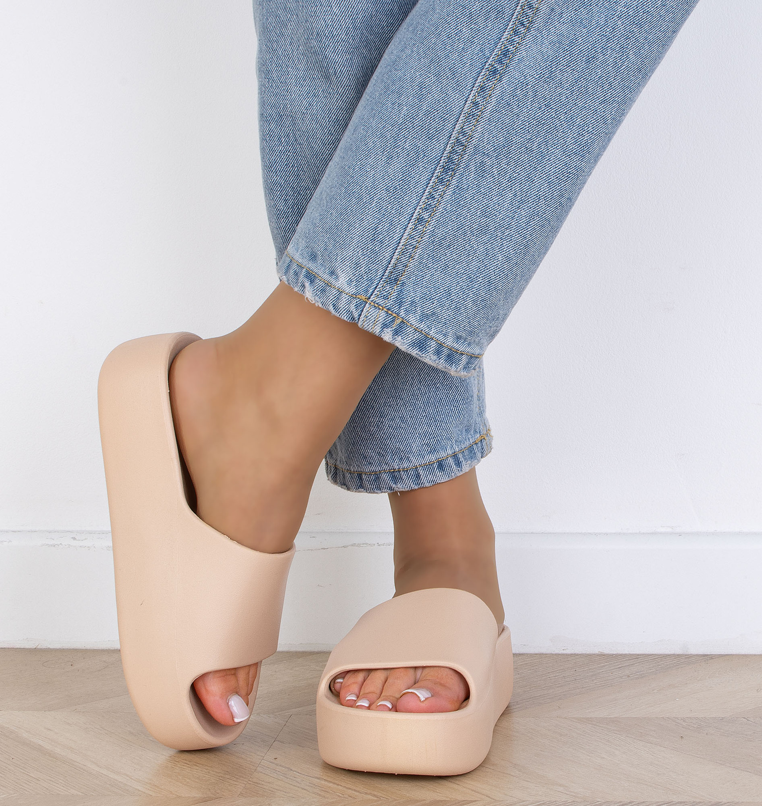 BEŻOWE DAMSKIE GUMOWE KLAPKI NA GRUBEJ PODESZWIE EMBAR