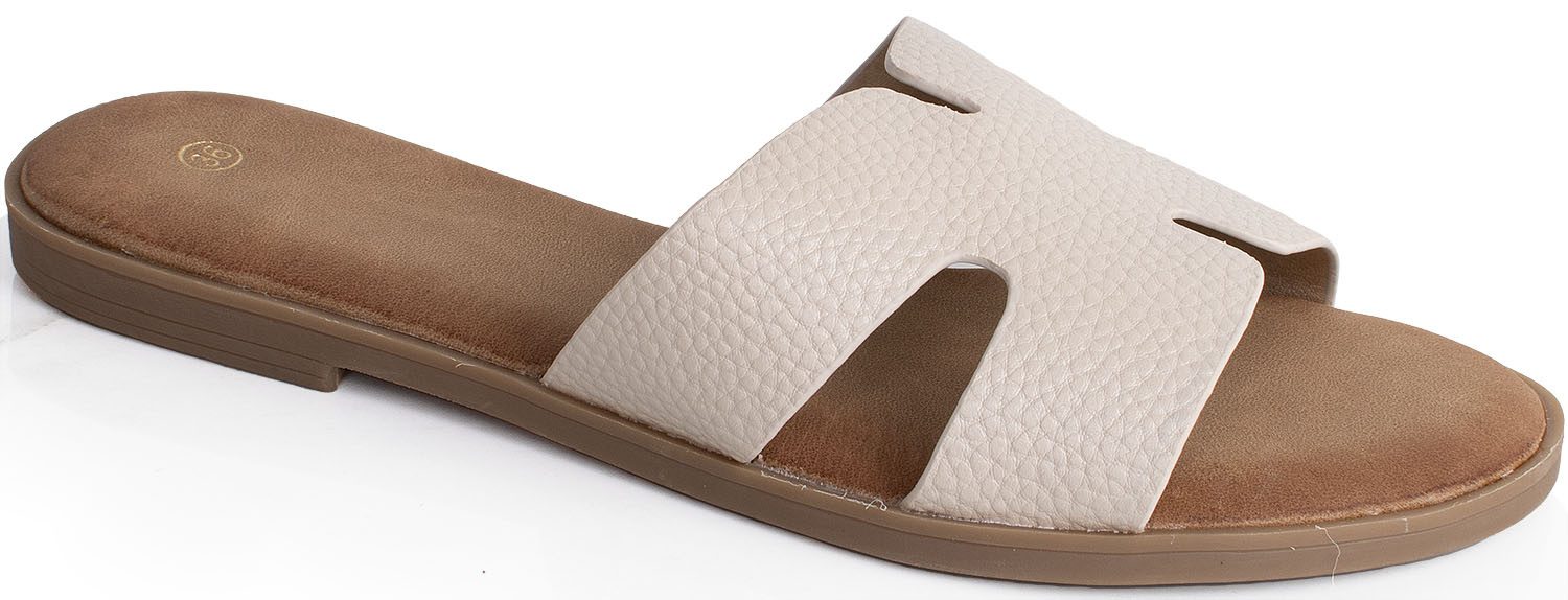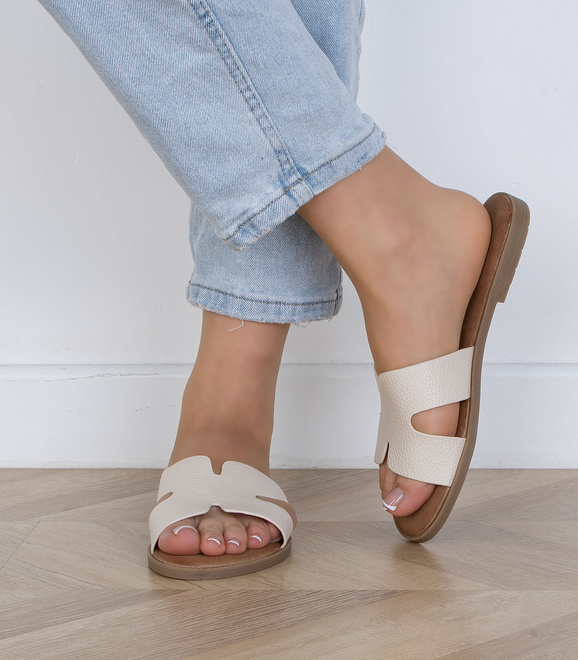 BEŻOWE KLASYCZNE KLAPKI WSUWANE DAMSKIE SKÓRZANE MARGO