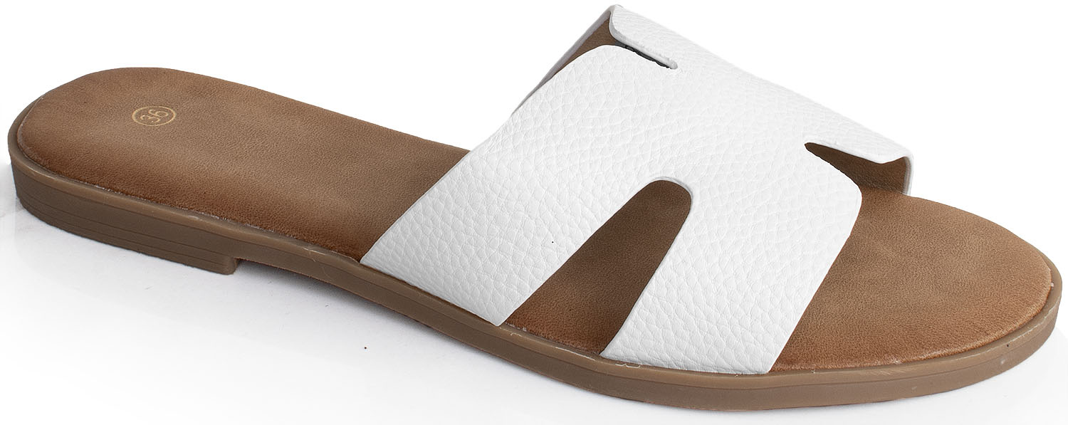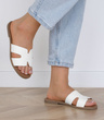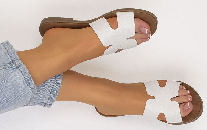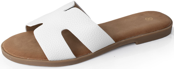 BIAŁE KLASYCZNE KLAPKI WSUWANE DAMSKIE SKÓRZANE MARGO