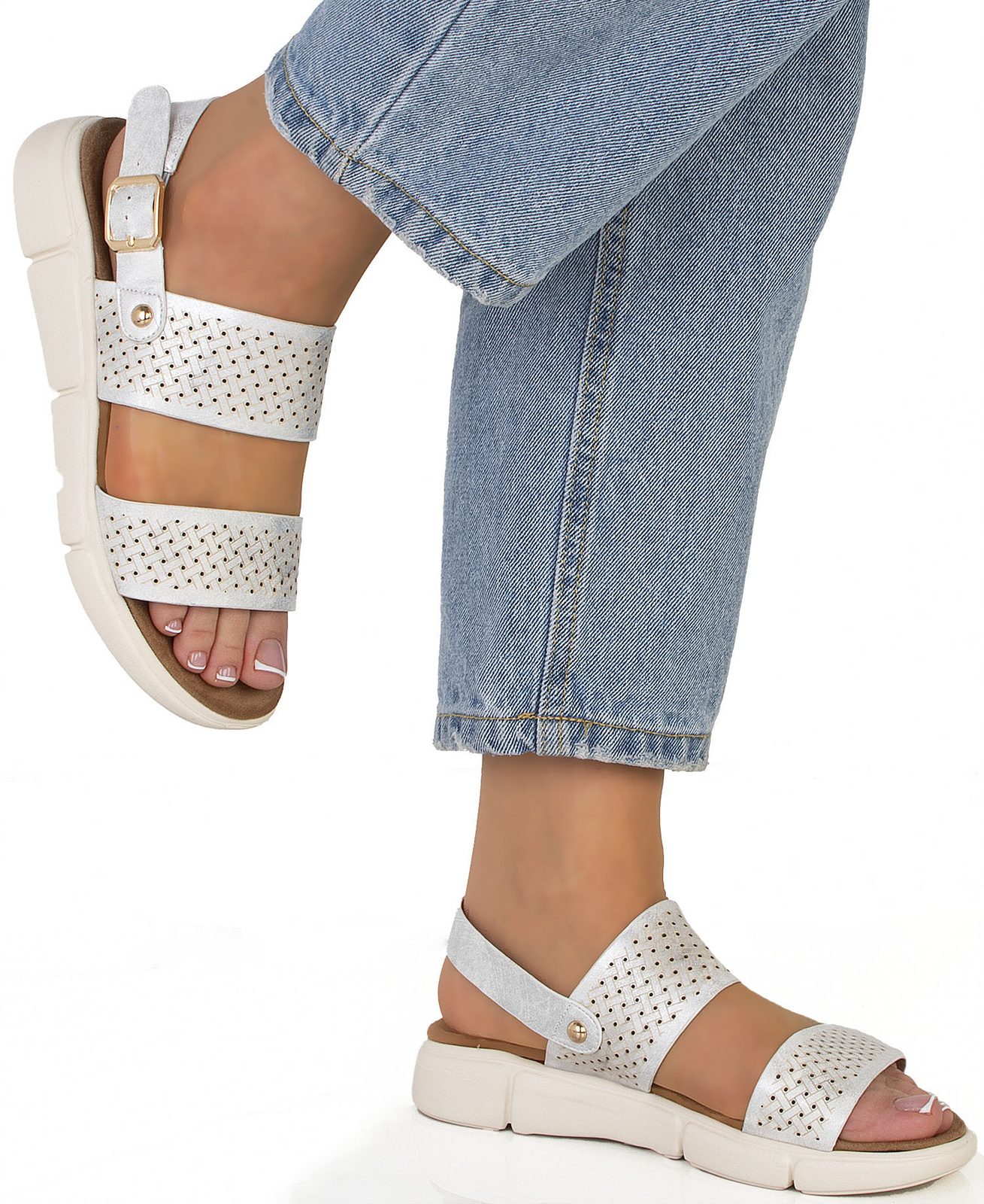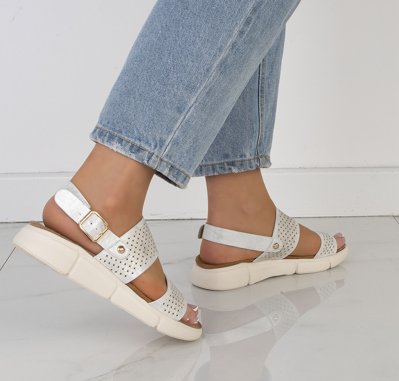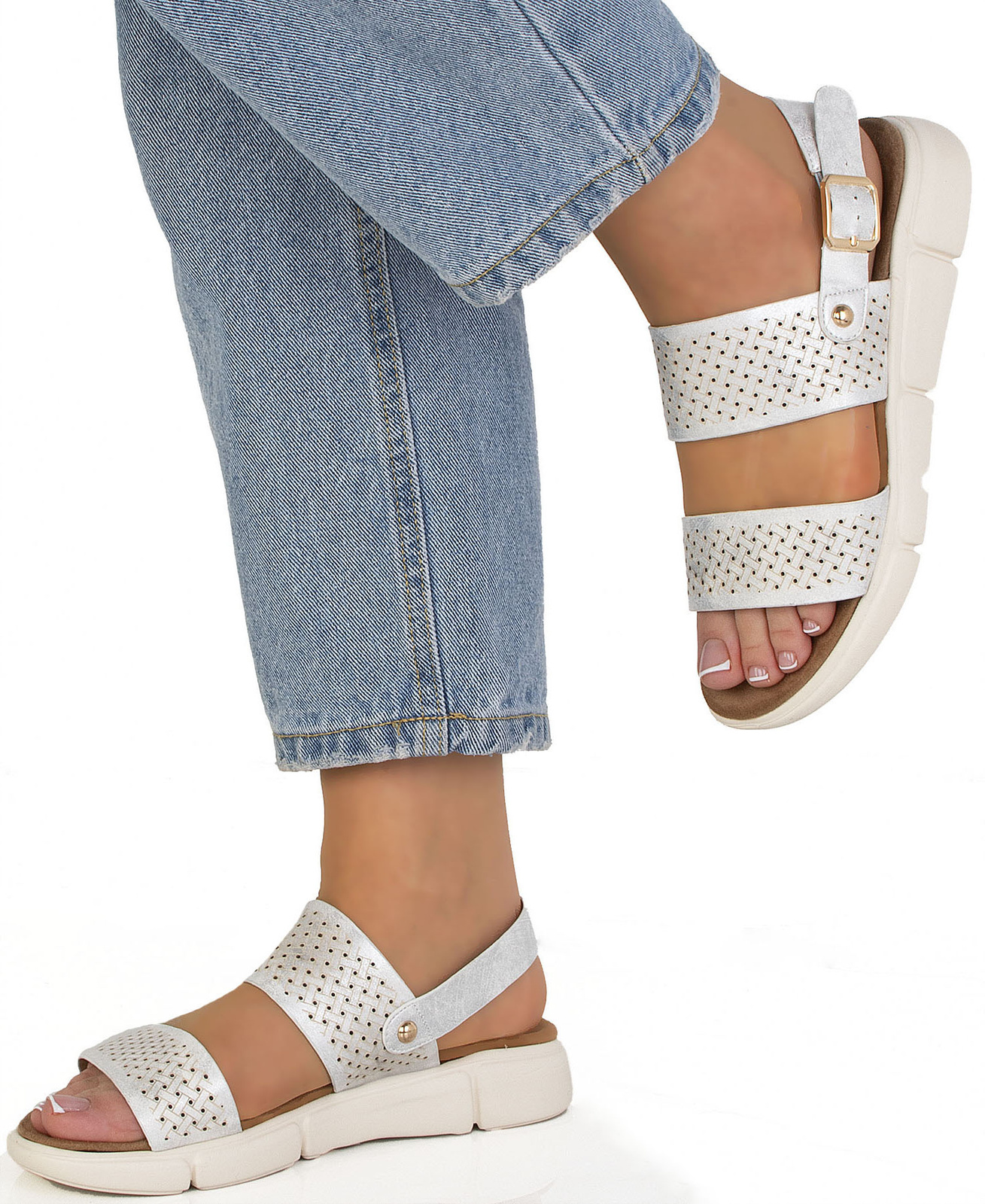 SREBRNE LEKKIE SANDAŁY ELASTYCZNE PASKI KLAMRA VENITA