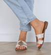 Klapki damskie to obuwie, które jest idealne na każdą okazję. Te wygodne klapki na płaskiej podeszwie są idealne na spacer po plaży lub po prostu na codzienne noszenie. Wykonane z wysokiej jakości skóry, są one wygodne i trwałe, a dodatkowo wyposażone w skórzany pasek z efektowną złotą ozdobą, która dodaje im uroku. Te klapki są idealne na lato, ponieważ są lekkie i wygodne, dzięki czemu możesz cieszyć się wygodą i stylowym wyglądem. Są one dostępne w wielu kolorach, więc możesz wybrać coś, co pasuje do Twojego stylu. Te klapki są świetnym dodatkiem do Twojej letniej garderoby i zapewnią Ci wygodę i styl.