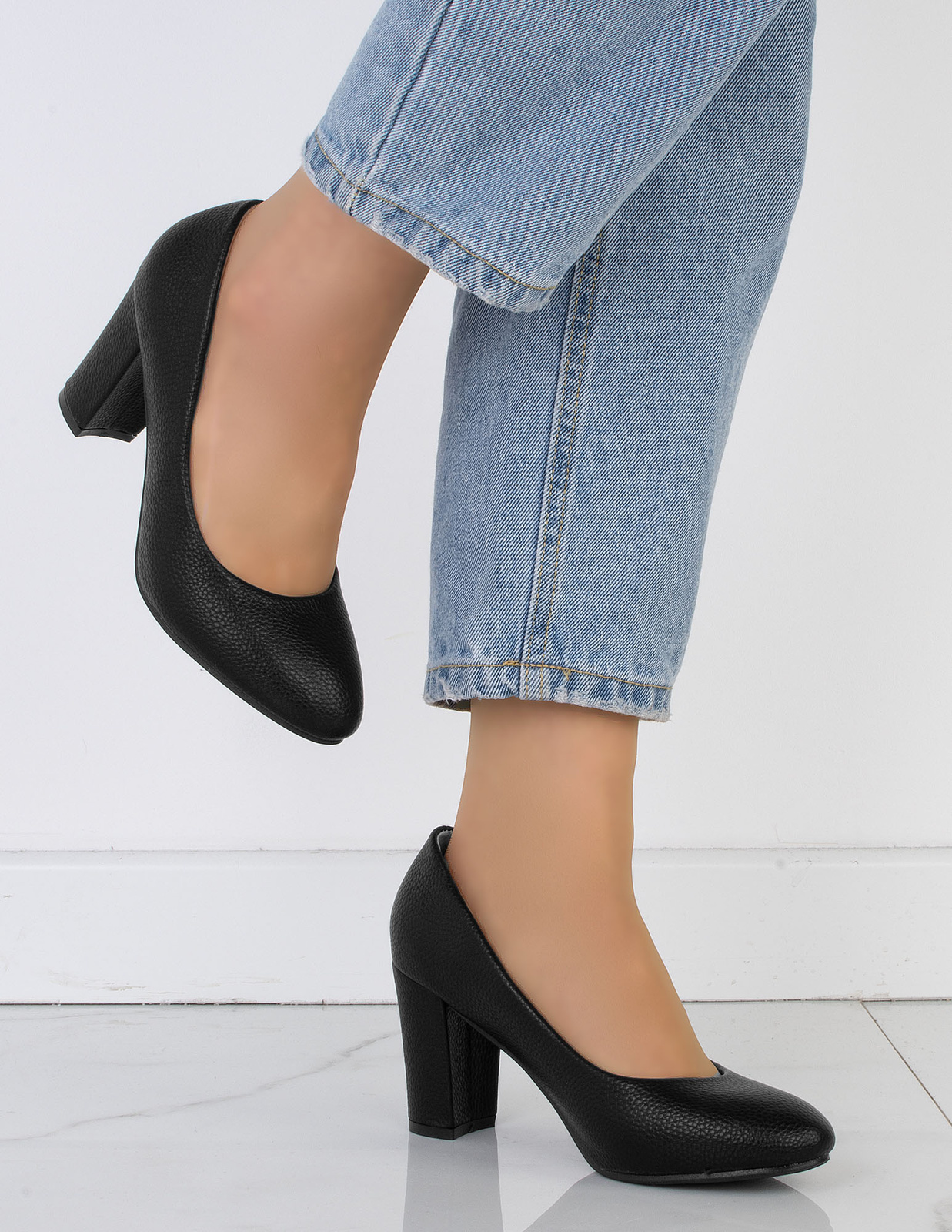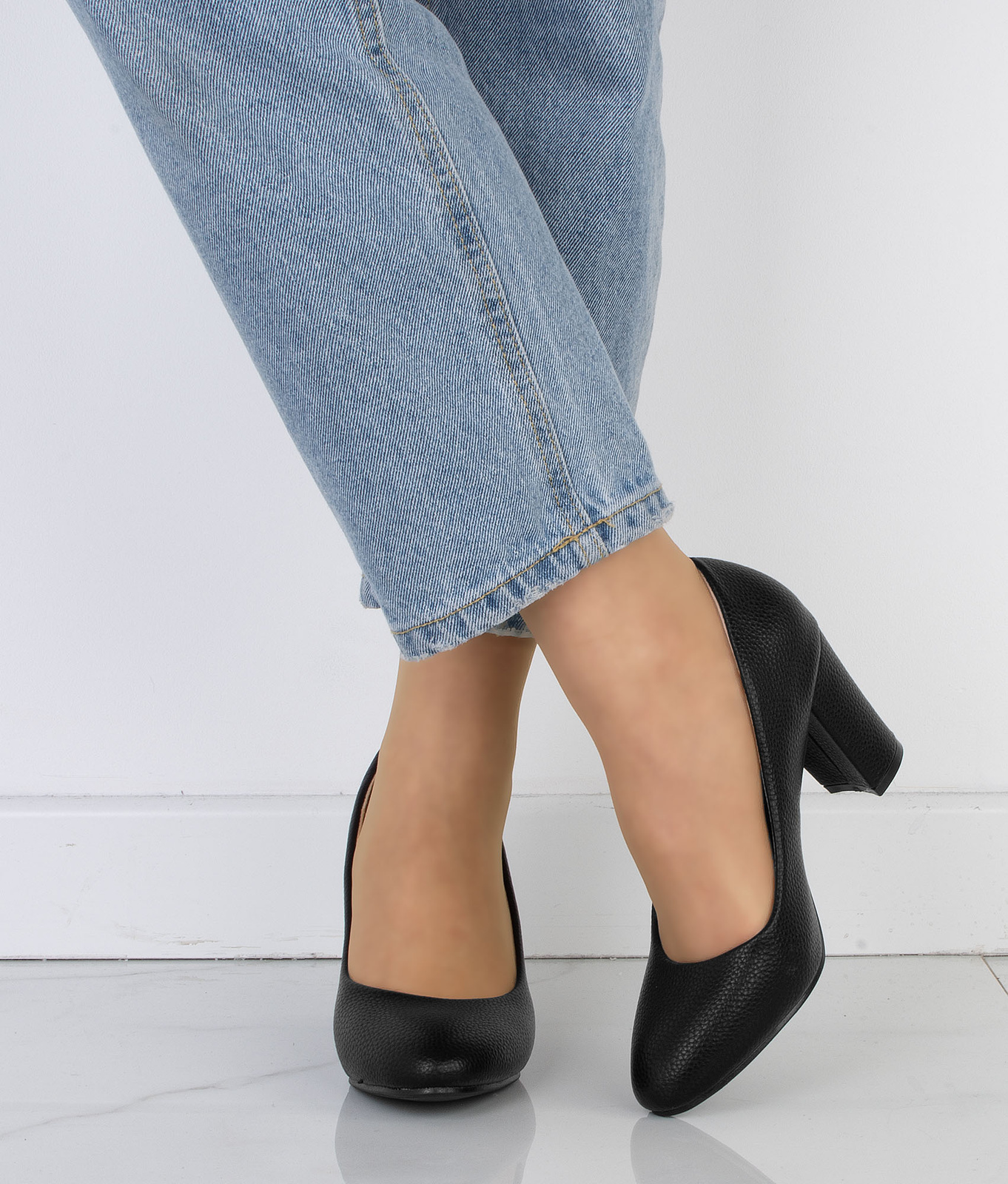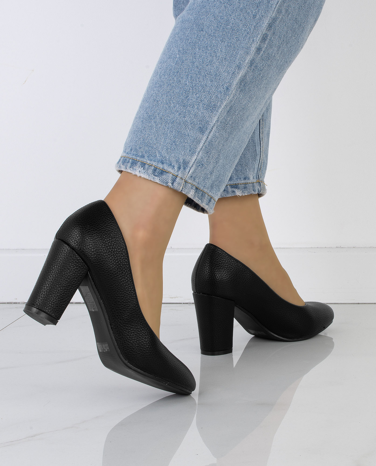 DAMSKIE CZÓŁENKA CZARNE KLASYCZNE NA SŁUPKU AMAYA