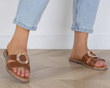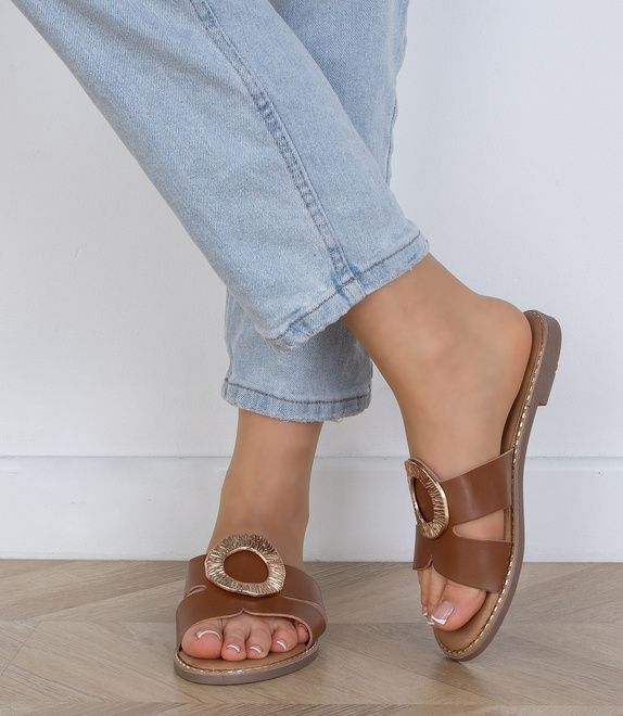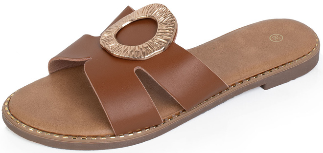 CAMEL DAMSKIE SKÓRZANE KLAPKI ELEGANCKIE OZDOBA JUSTA