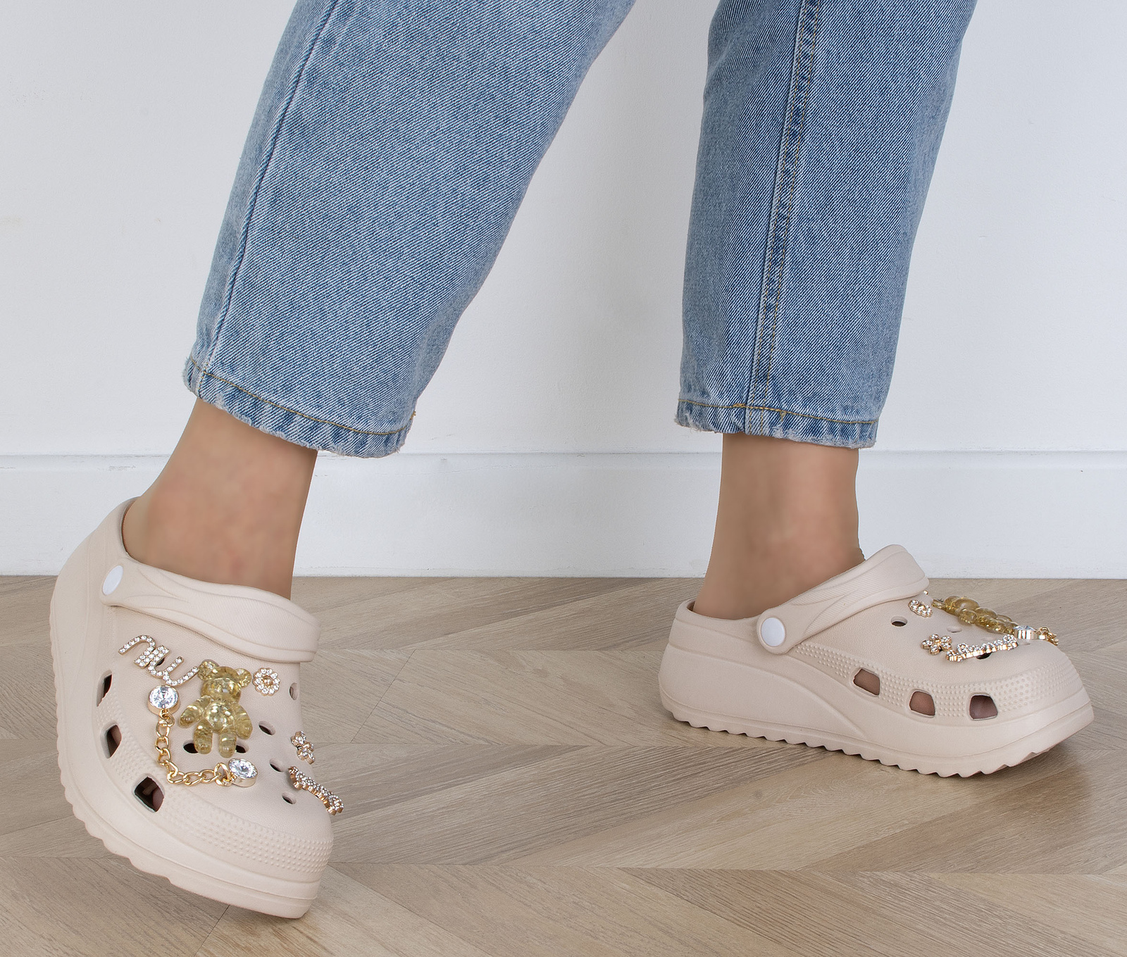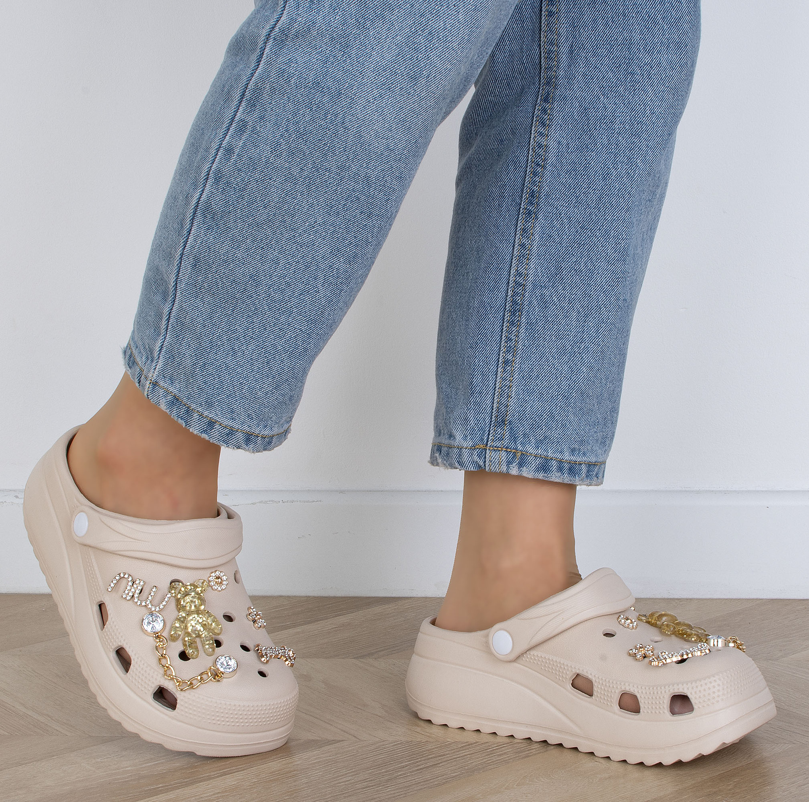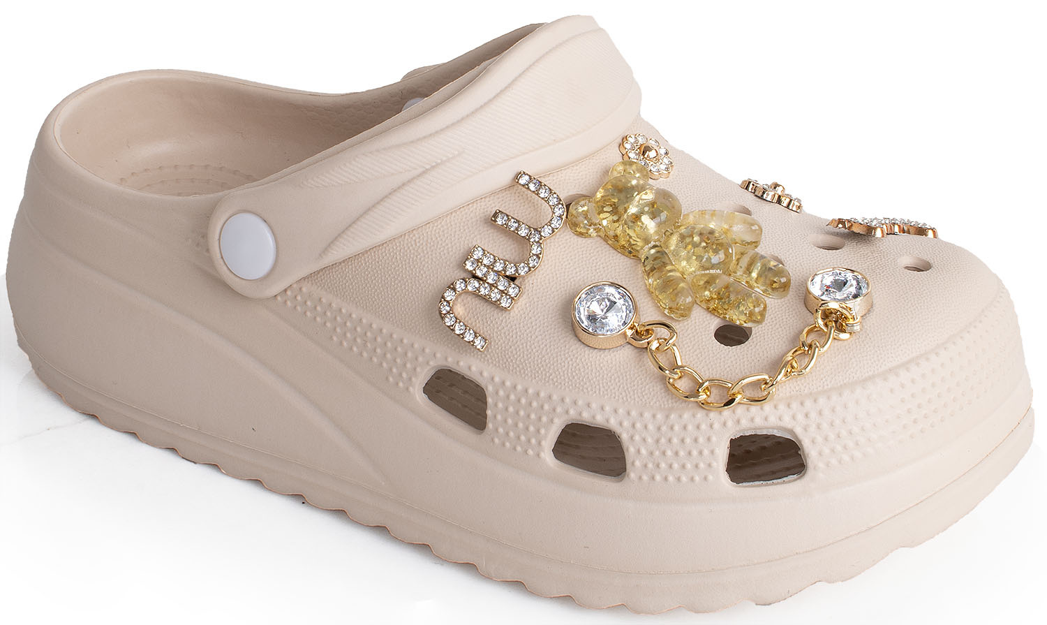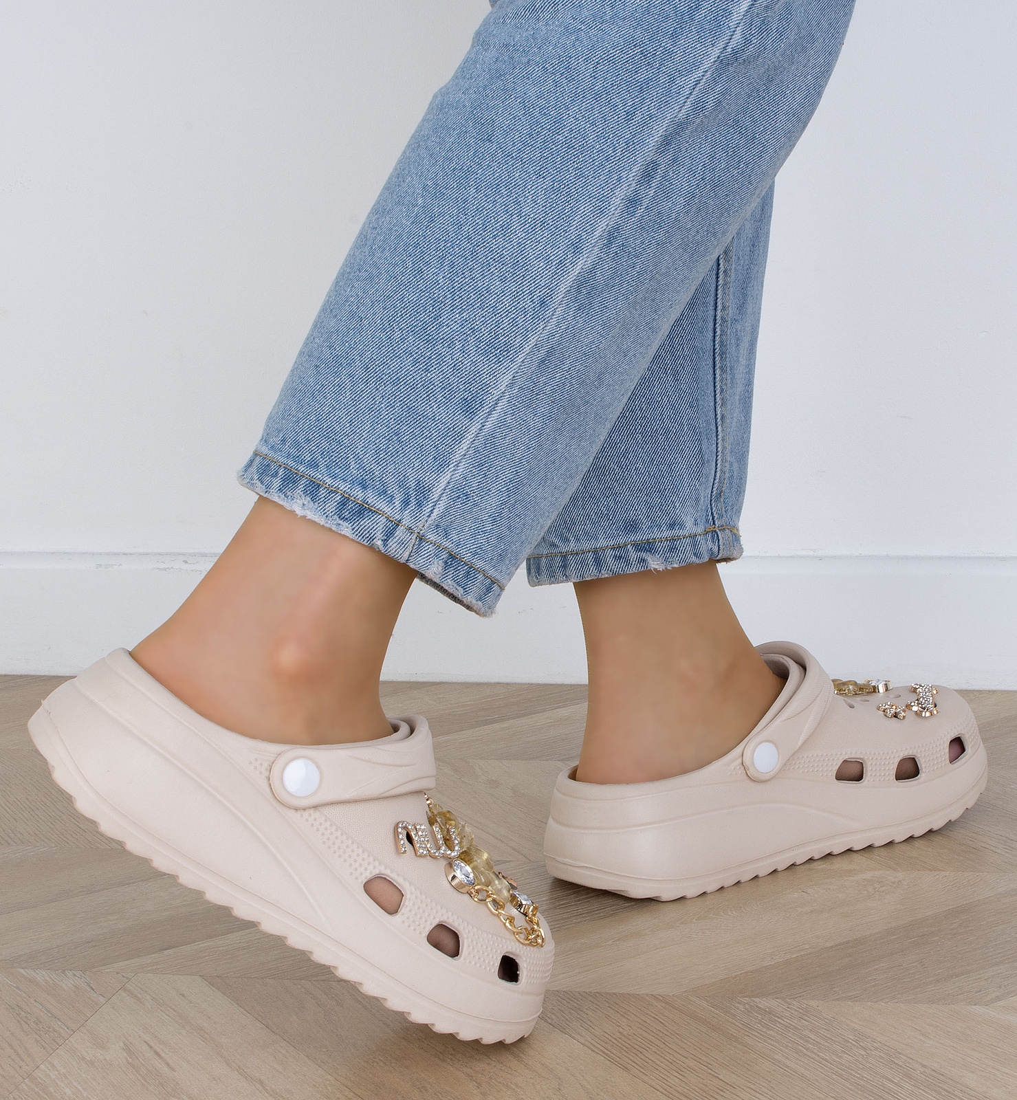 Beżowe klapki na platformie ze złotymi ozdobami to oryginalne obuwie, które łączy w sobie wygodę i styl. Wykonane z wytrzymałego materiału, te klapki są doskonałym wyborem na letnie dni, zarówno na plażę, jak i na spacer po mieście. Ich kolorystyka nadaje im świeży i nowoczesny wygląd, który doskonale komponuje się z letnimi stylizacjami. Dodatkowo, złote ozdoby dodają im elegancji i oryginalności, sprawiając, że są nie tylko praktycznym, ale także stylowym dodatkiem. Beżowe klapki na platformie ze złotymi ozdobami to doskonały wybór dla osób ceniących sobie wygodę i styl. Bez względu na okazję, będą one idealnym uzupełnieniem letniej garderoby, dodając każdej stylizacji nuty świeżości i oryginalności. Obuwie dostępne w rozmiarach 36/37, 38/39 i 40/41.