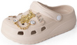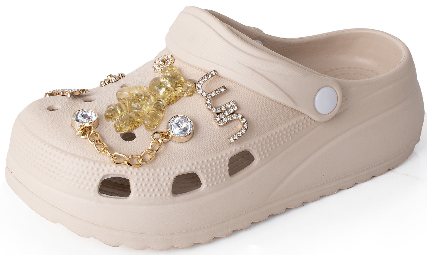 • Klapki na platformie ze złotymi ozdobami to oryginalne obuwie, które łączy w sobie wygodę i styl. Wykonane z wytrzymałego materiału, te klapki są doskonałym wyborem na letnie dni, zarówno na plażę, jak i na spacer po mieście.