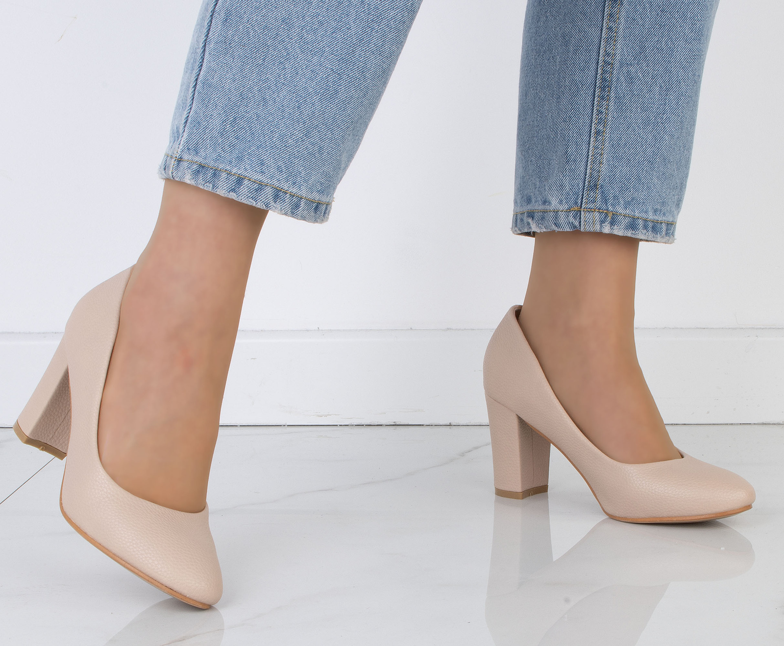 DAMSKIE CZÓŁENKA BEŻOWE KLASYCZNE NA SŁUPKU ARIELA
