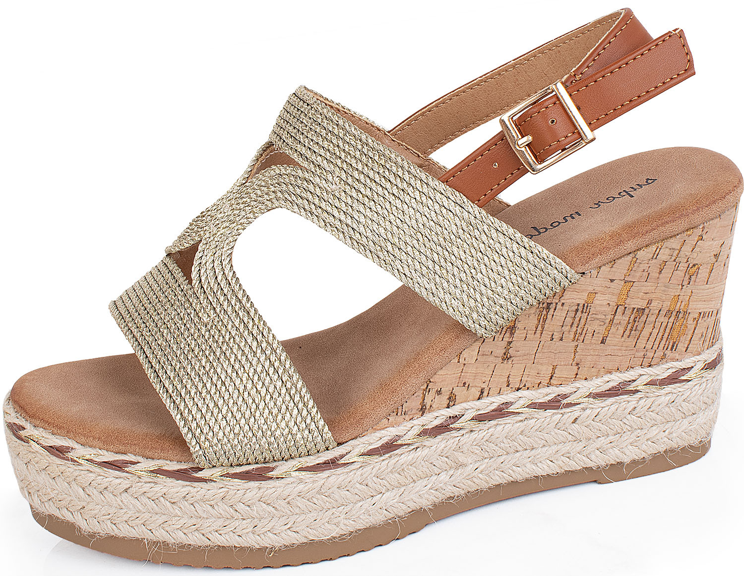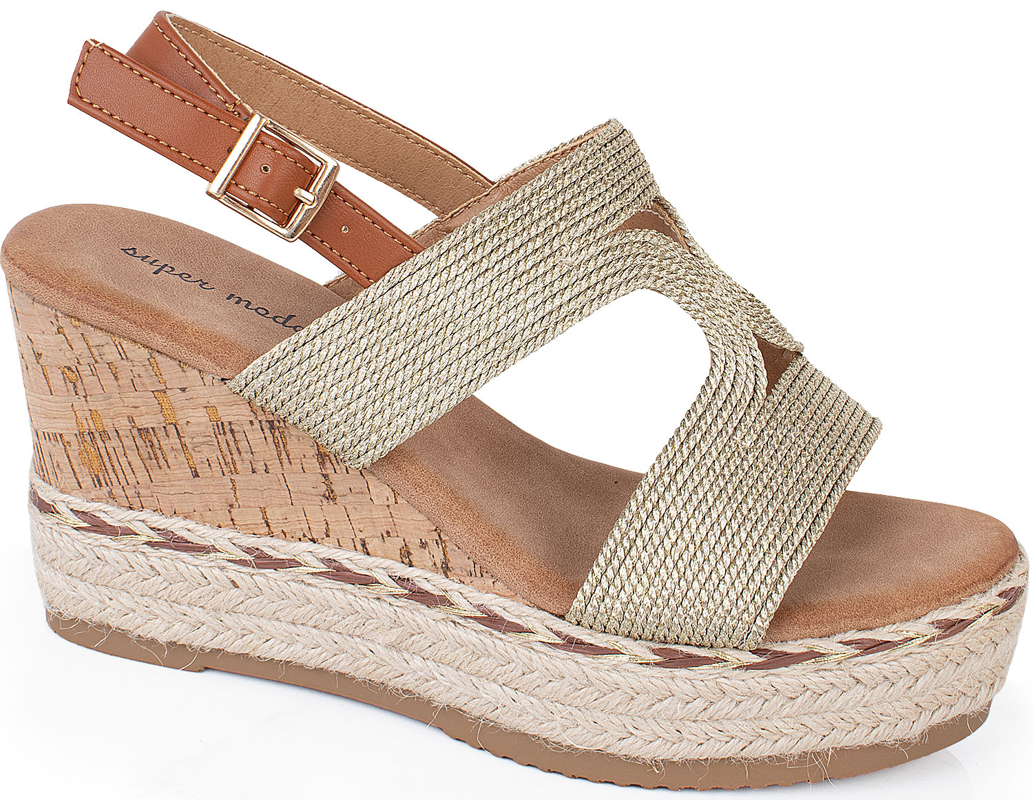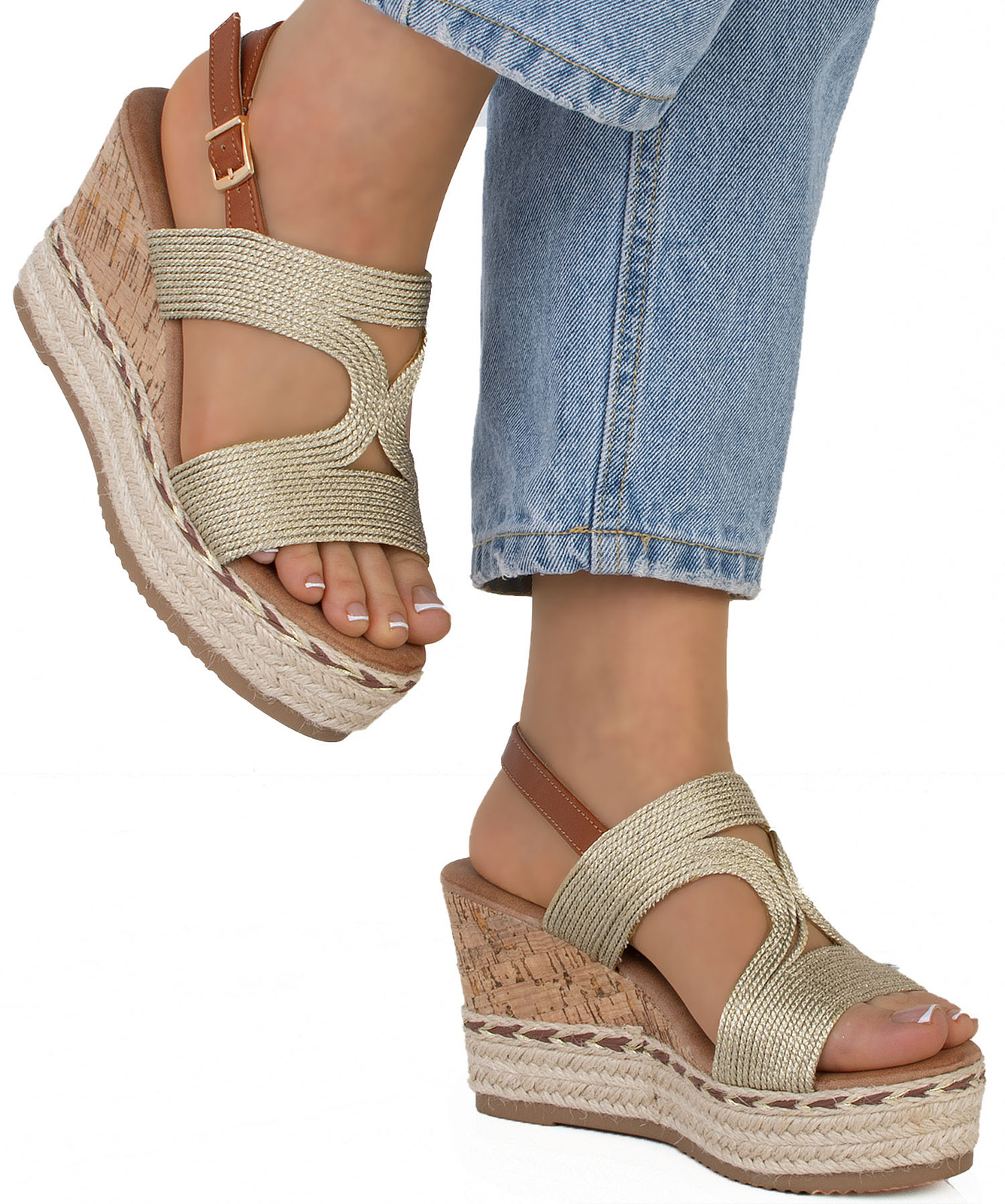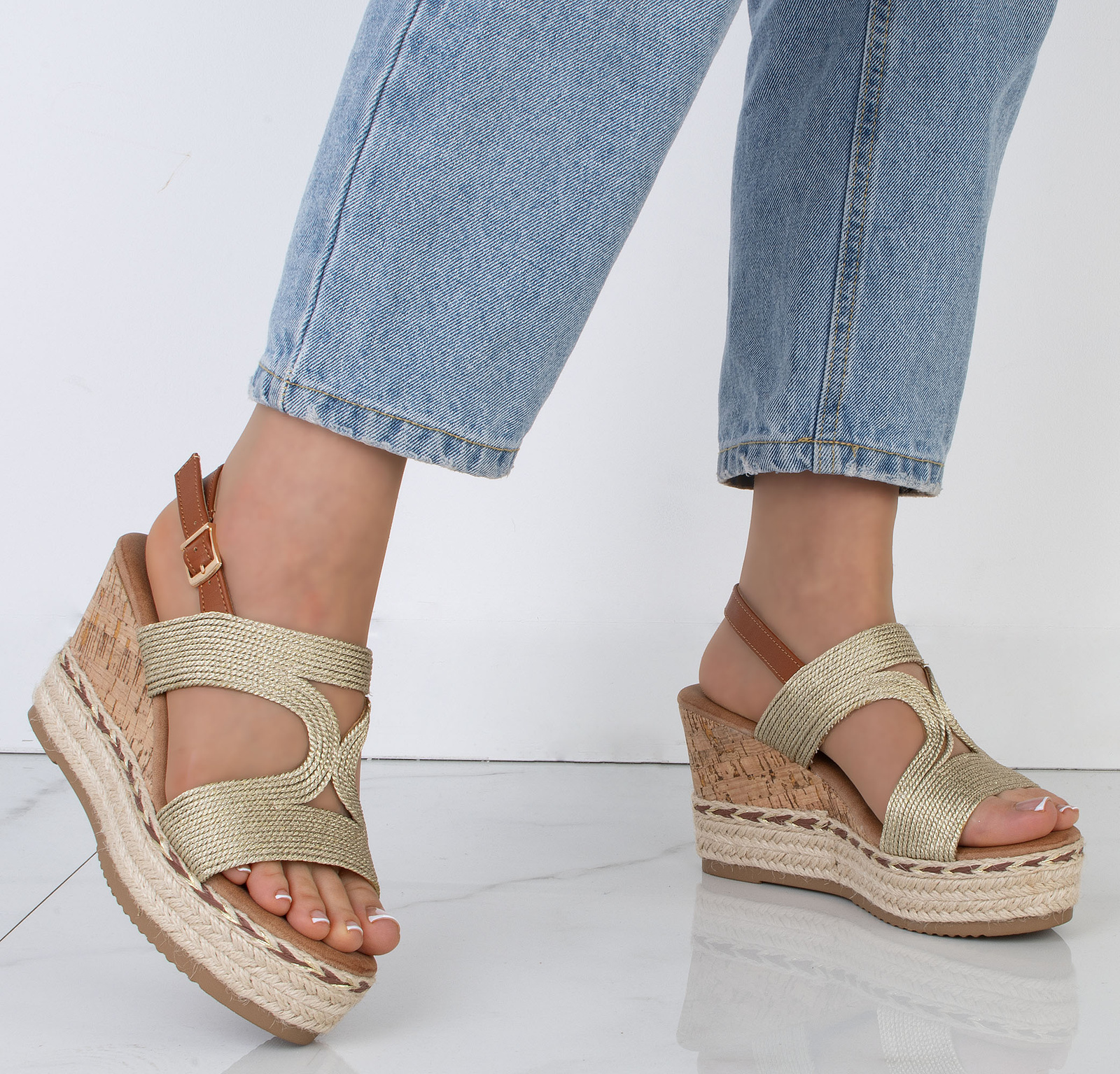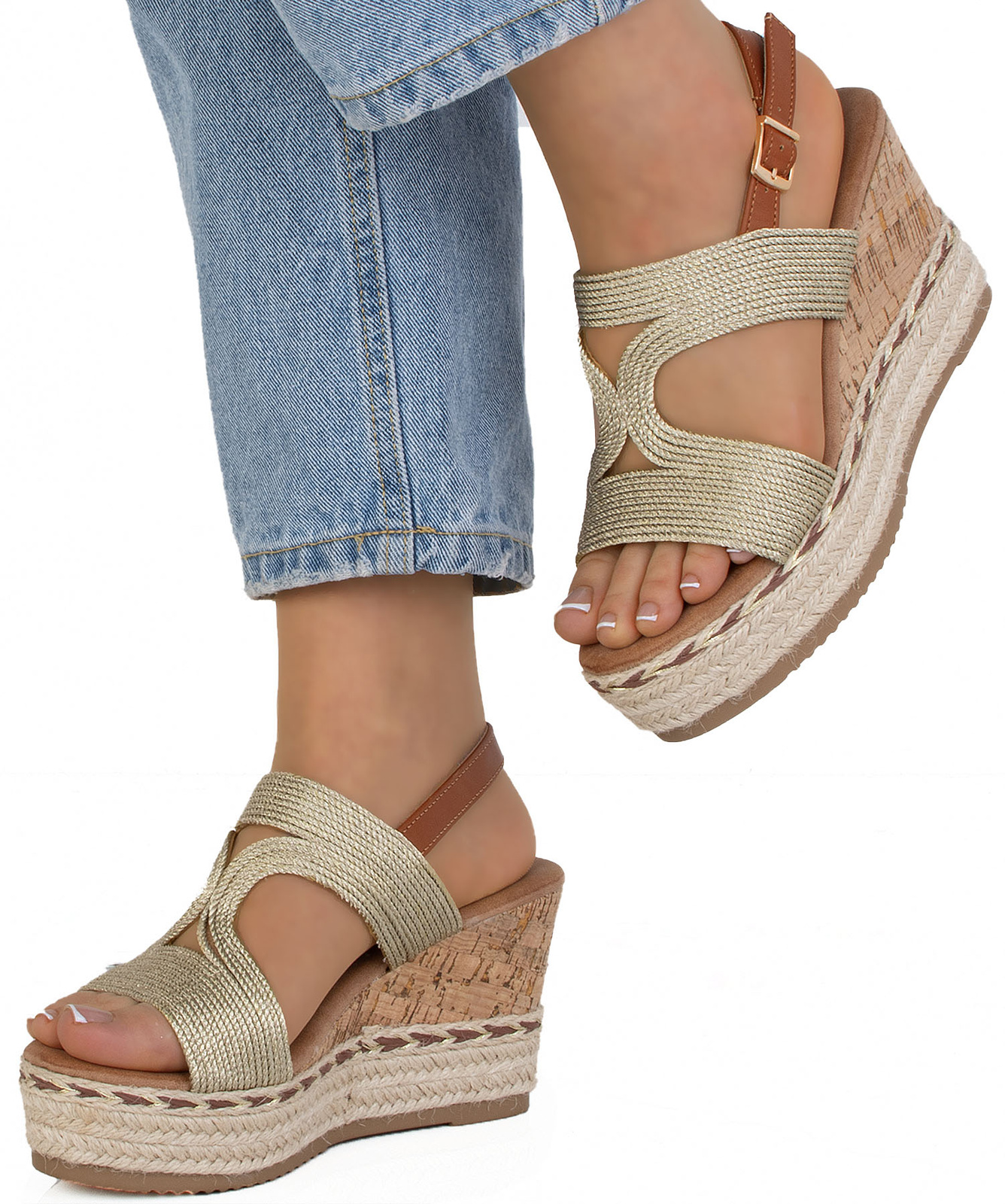 ZŁOTE DAMSKIE SANDAŁY NA KOTURNIE ESPADRYLE CRISTY