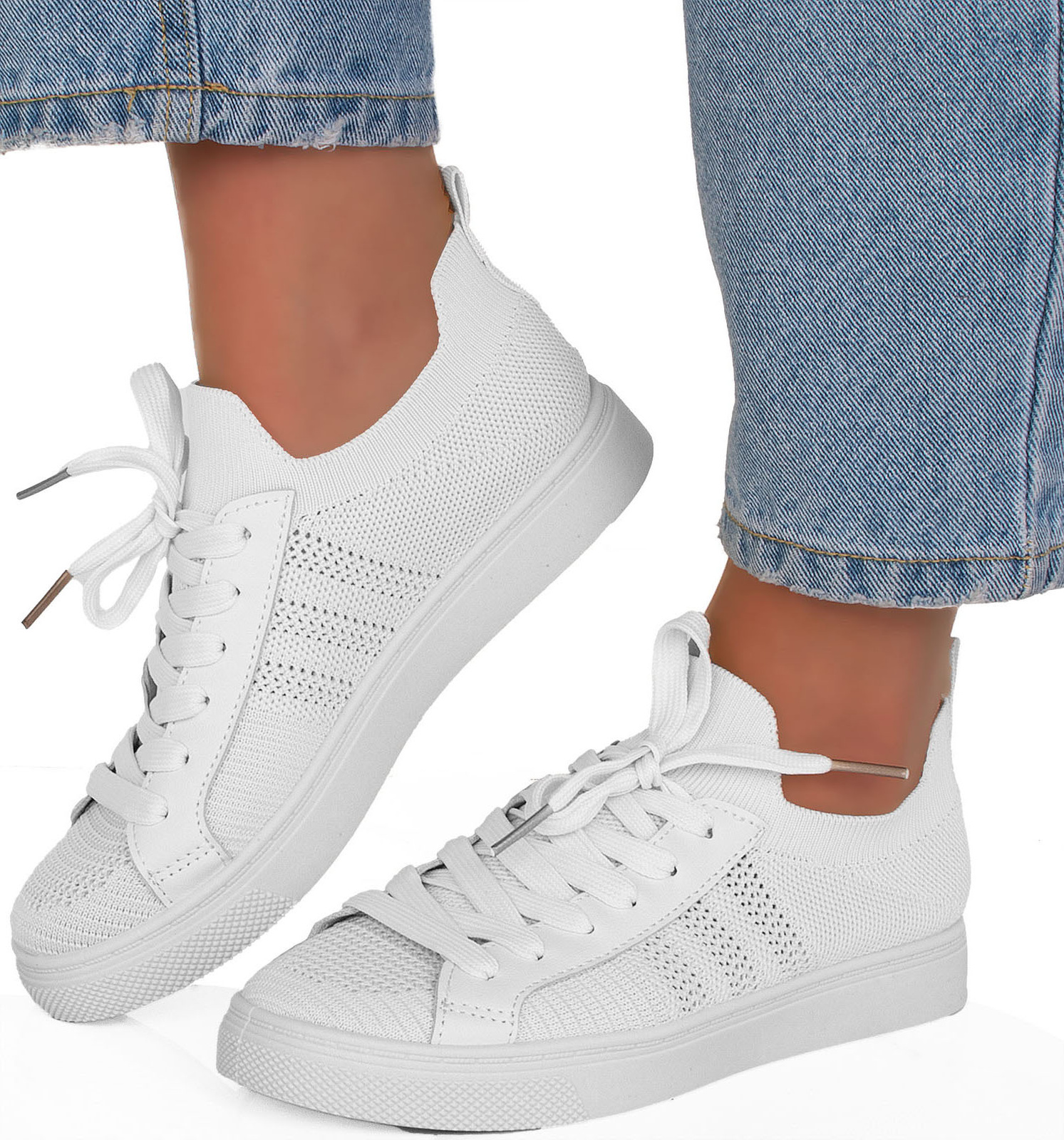 BIAŁE TENISÓWKI AŻUROWE SZNUROWANE ODETTE