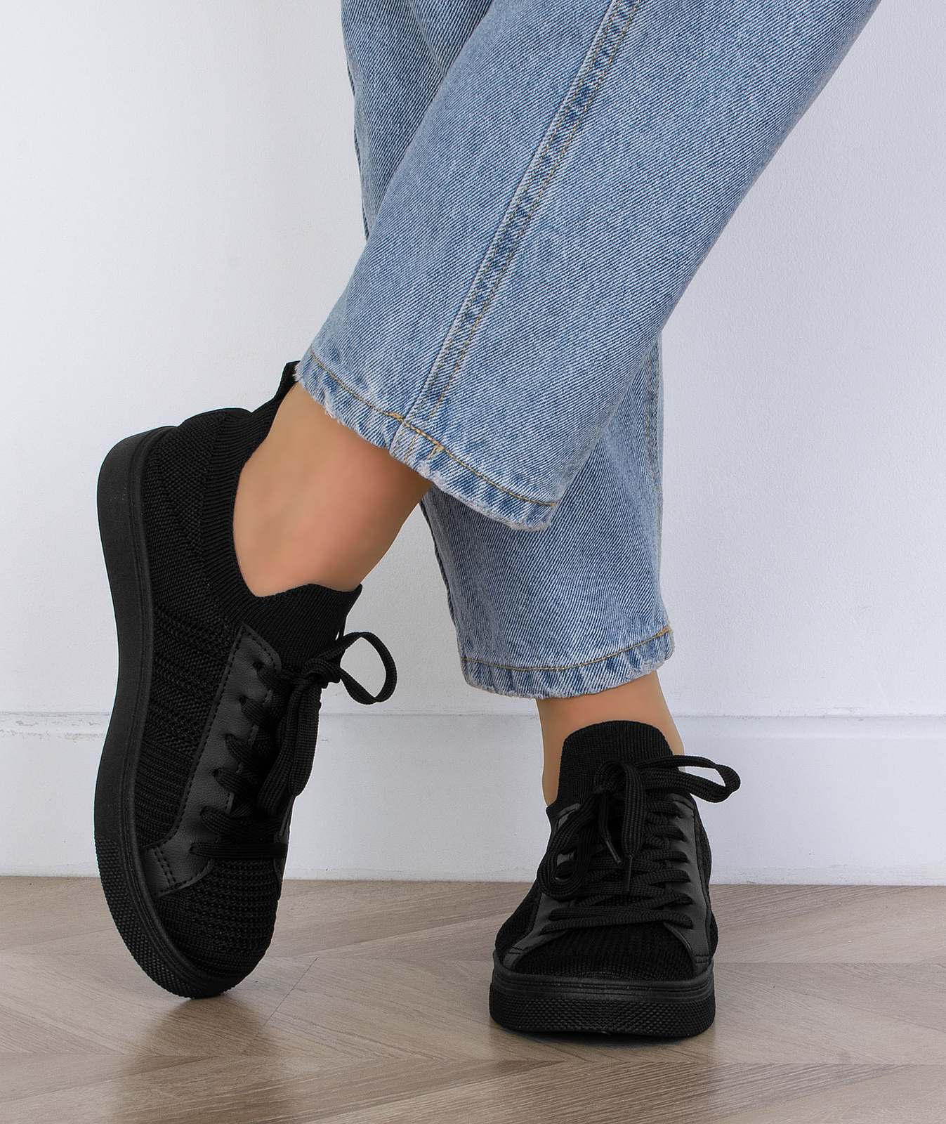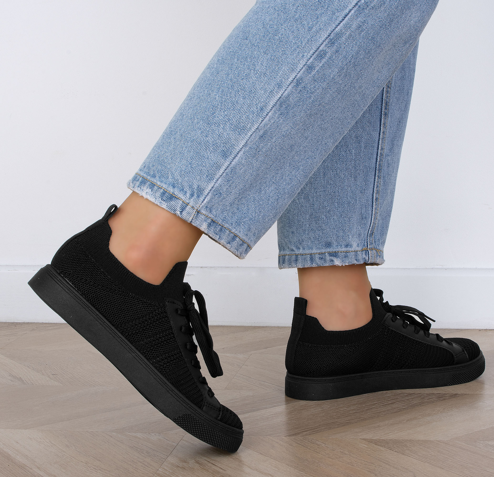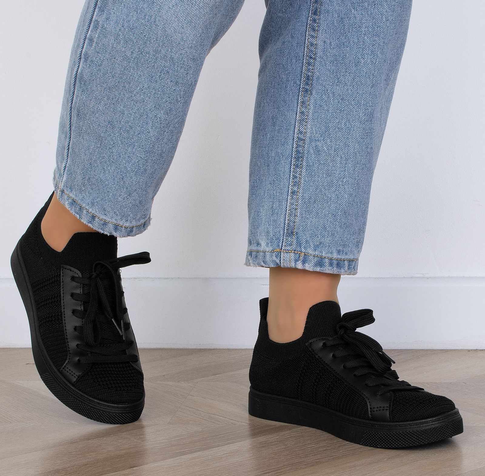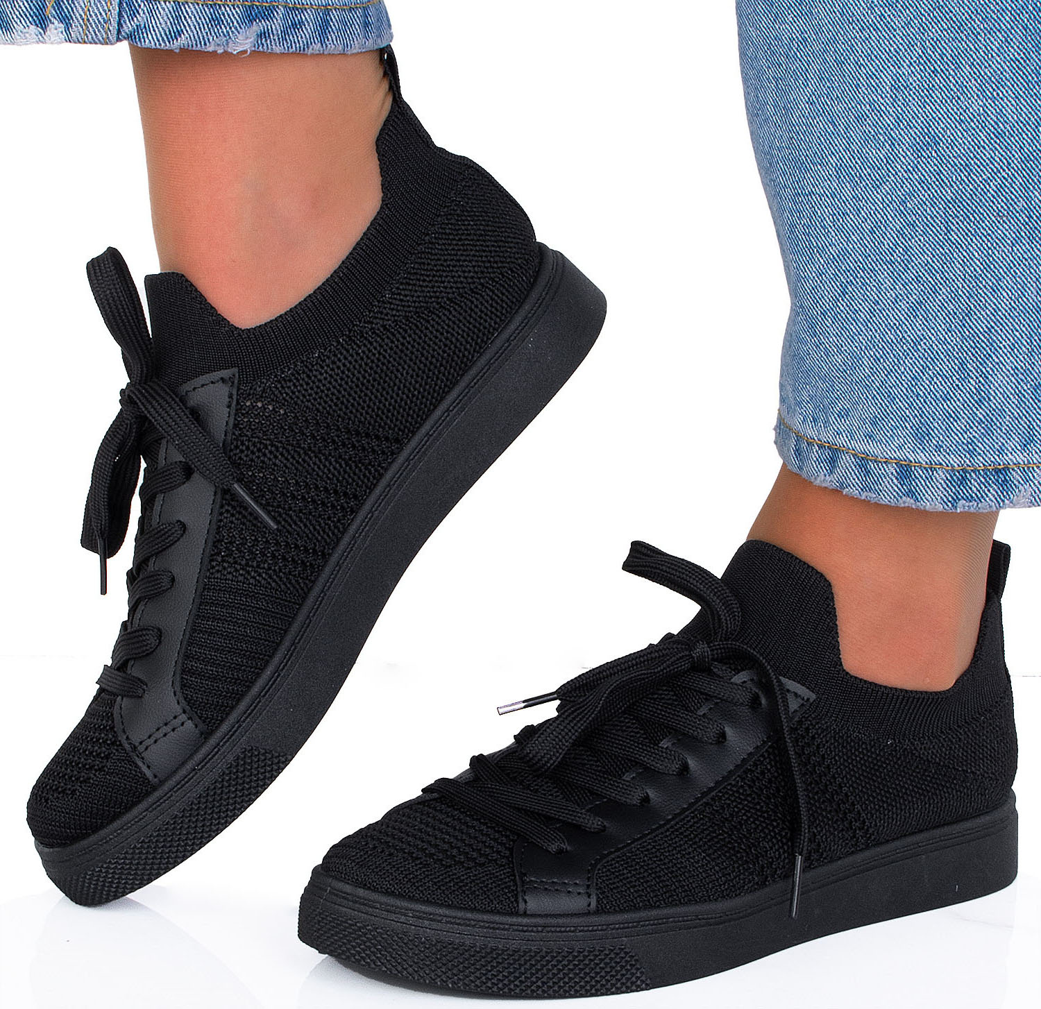 CZARNE TENISÓWKI AŻUROWE SZNUROWANE ODETTE