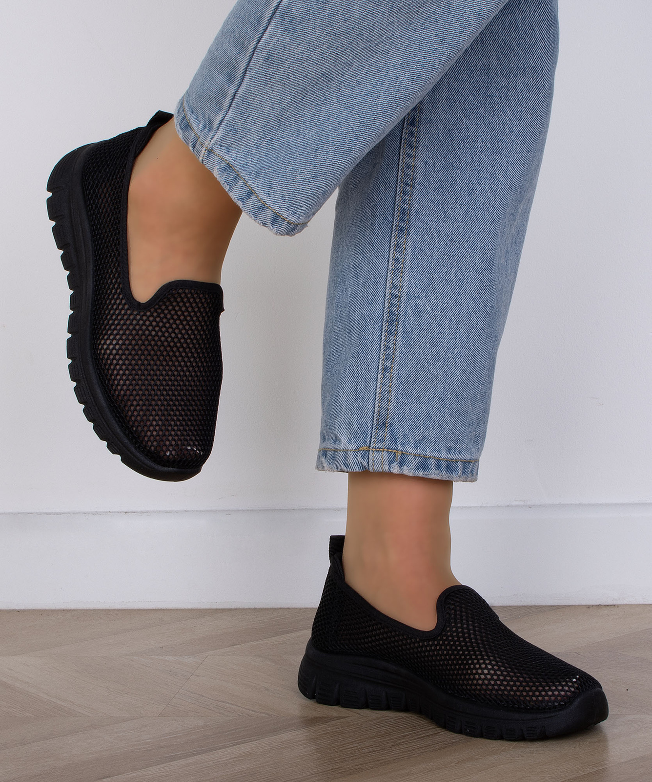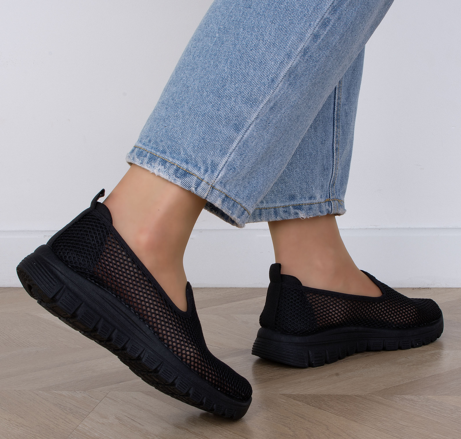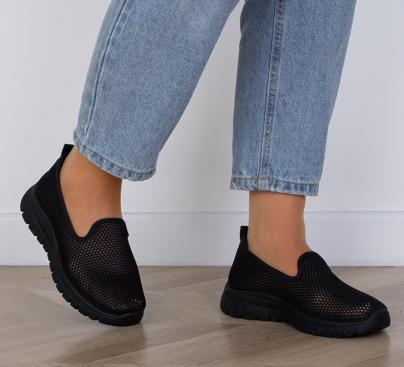 CZARNE TENISÓWKI AŻUROWE SLIP ON WSUWANE ALODIA