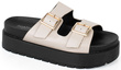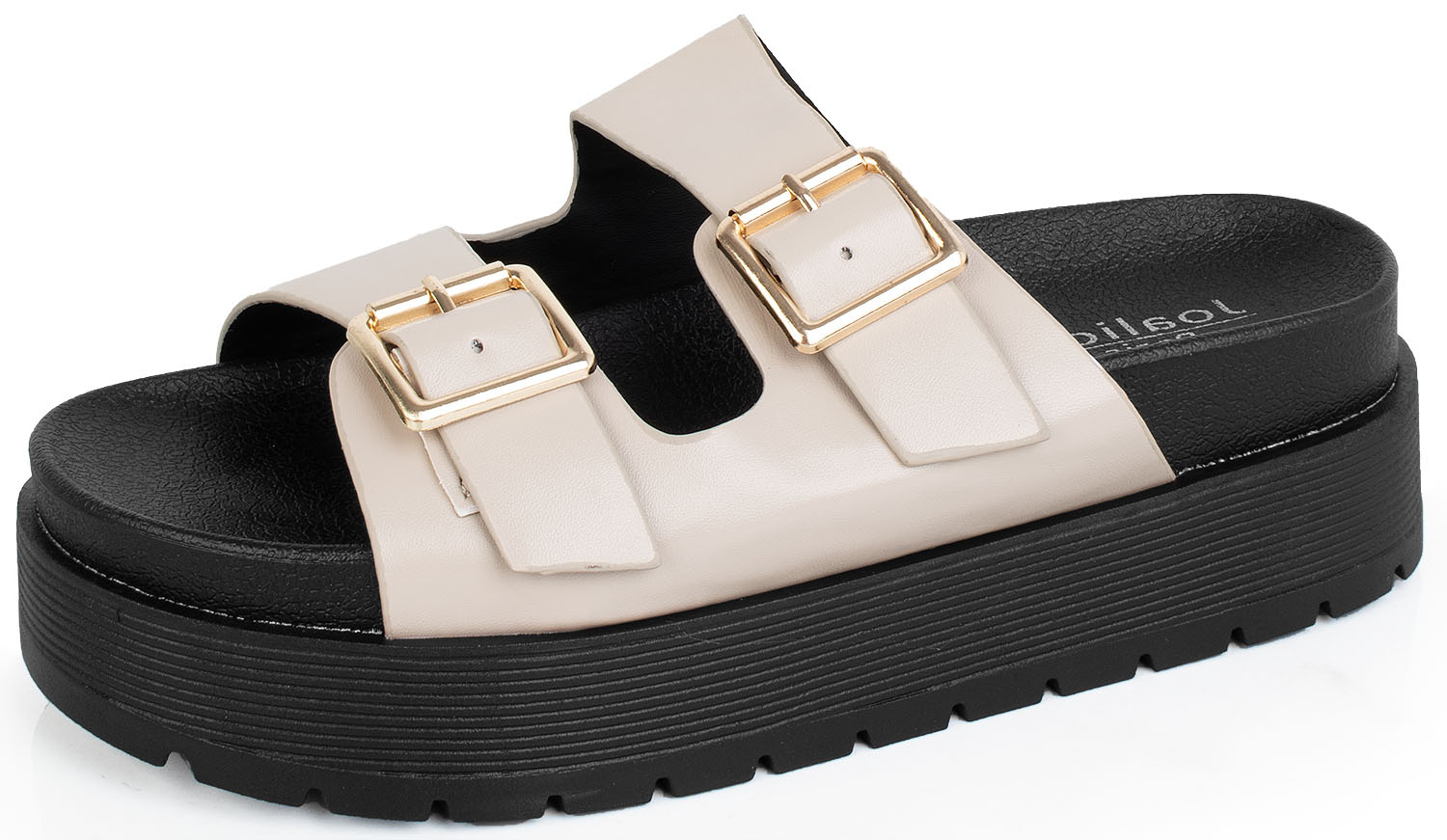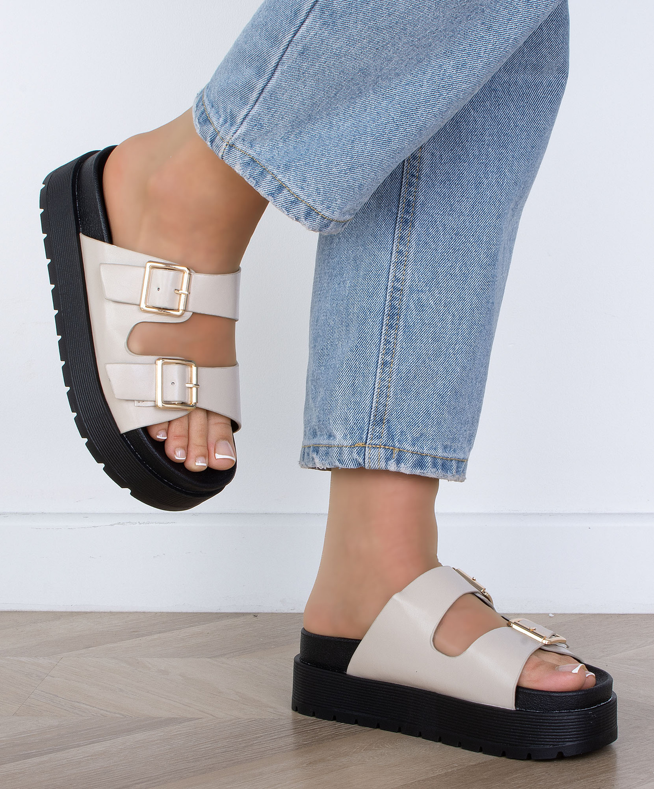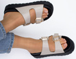 BEŻOWE KLAPKI KLAMRA SKÓRZANE GRUBA PODESZWA IMELDA