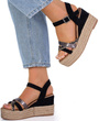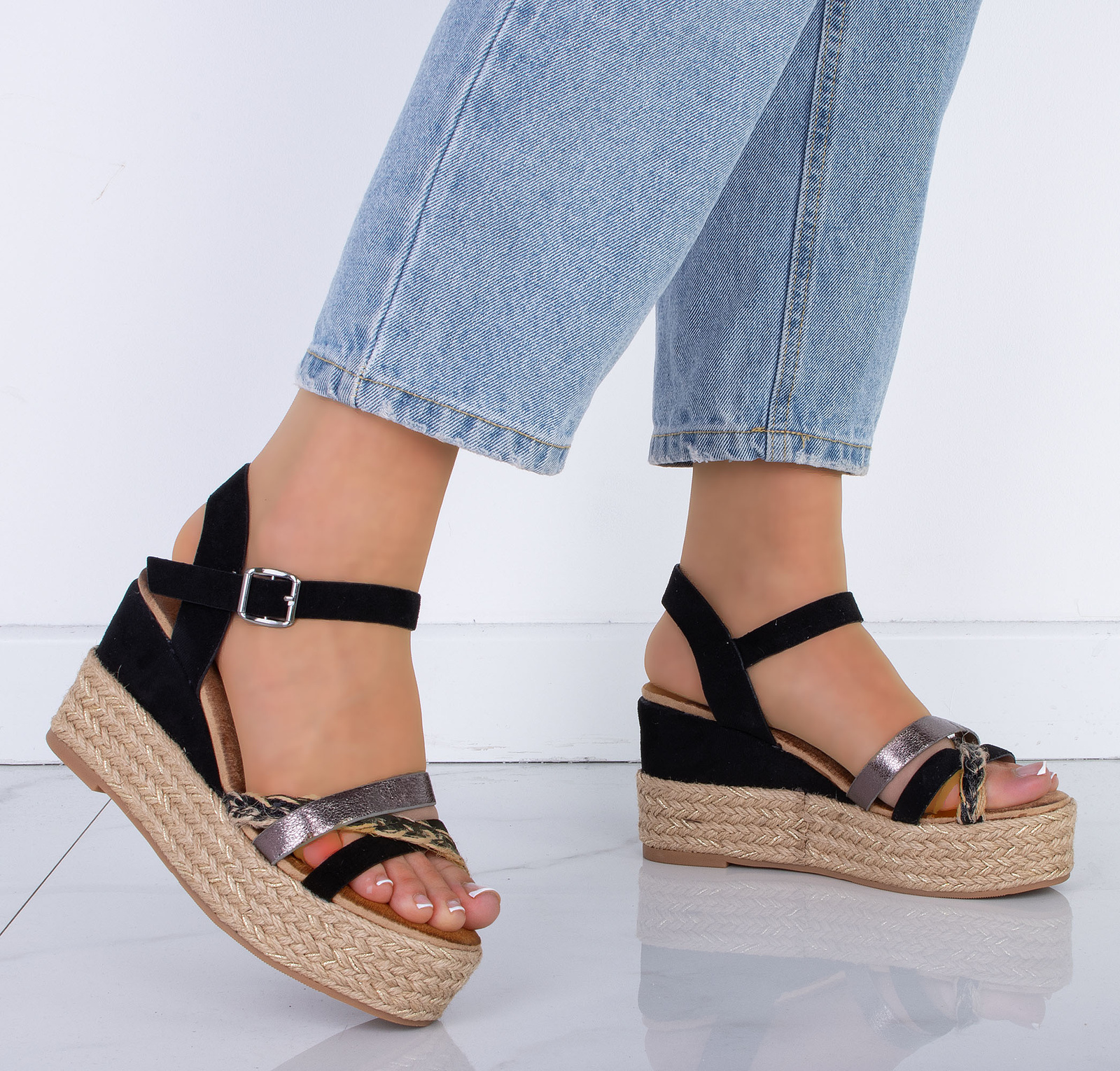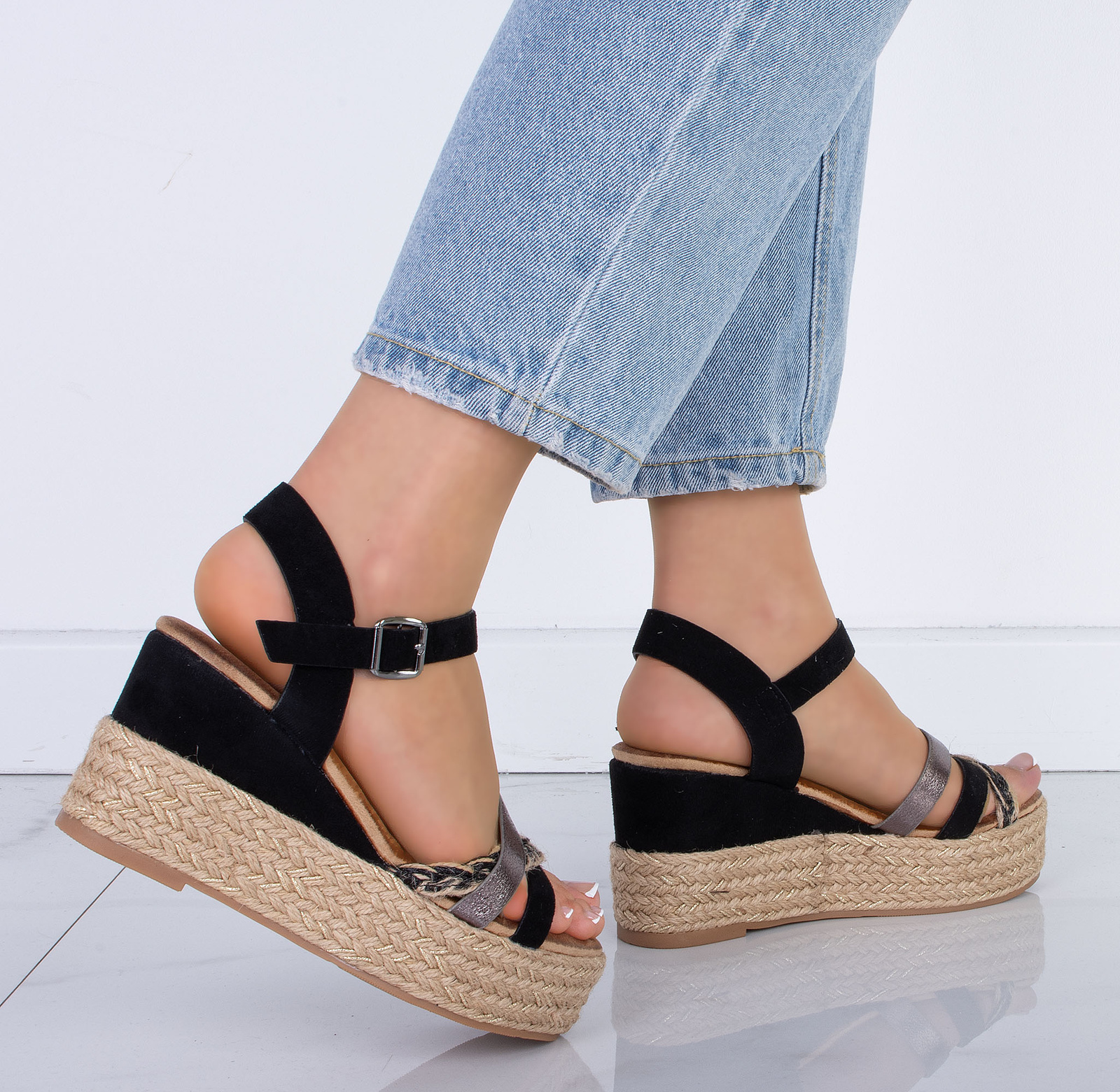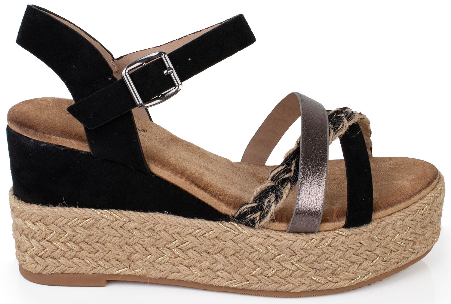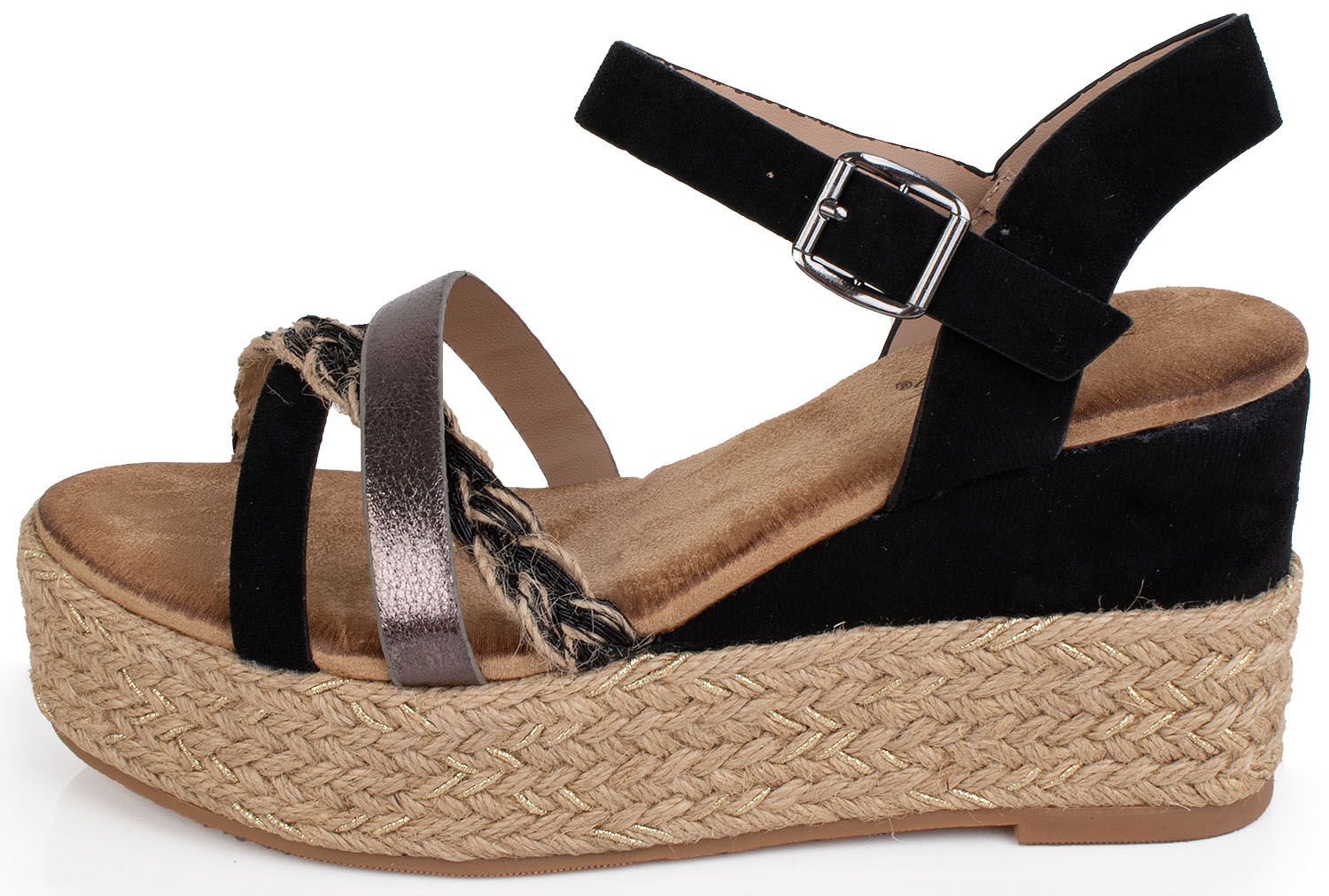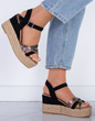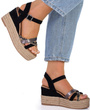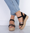 CZARNE DAMSKIE SANDAŁY NA KOTURNIE ESPADRYLE AMORINA
