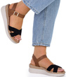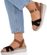 Czarne sandały na platformie to elegancka i modna propozycja dla kobiet ceniących sobie styl i komfort. Klasyczny czarny kolor sprawia, że są uniwersalne i pasują do wielu różnych stylizacji – zarówno tych codziennych, jak i bardziej formalnych. Platforma dodaje kilka centymetrów wzrostu, jednocześnie zapewniając stabilność i wygodę. Czarne sandały na platformie to stylowy i praktyczny wybór na letnie dni. Dzięki eleganckiemu designowi i wysokiej jakości materiałom są trwałe i wygodne. Idealne na różne okazje – od codziennych wyjść po bardziej formalne wydarzenia.