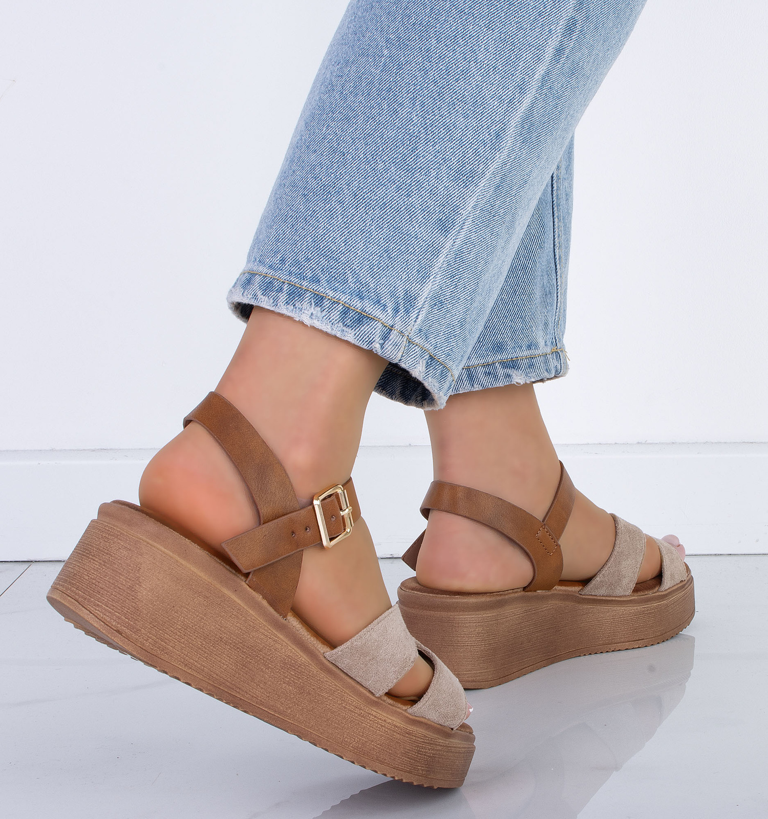 BEŻOWE SANDAŁY ESPADRYLE DAMSKIE NA PLATFORMIE JORMA