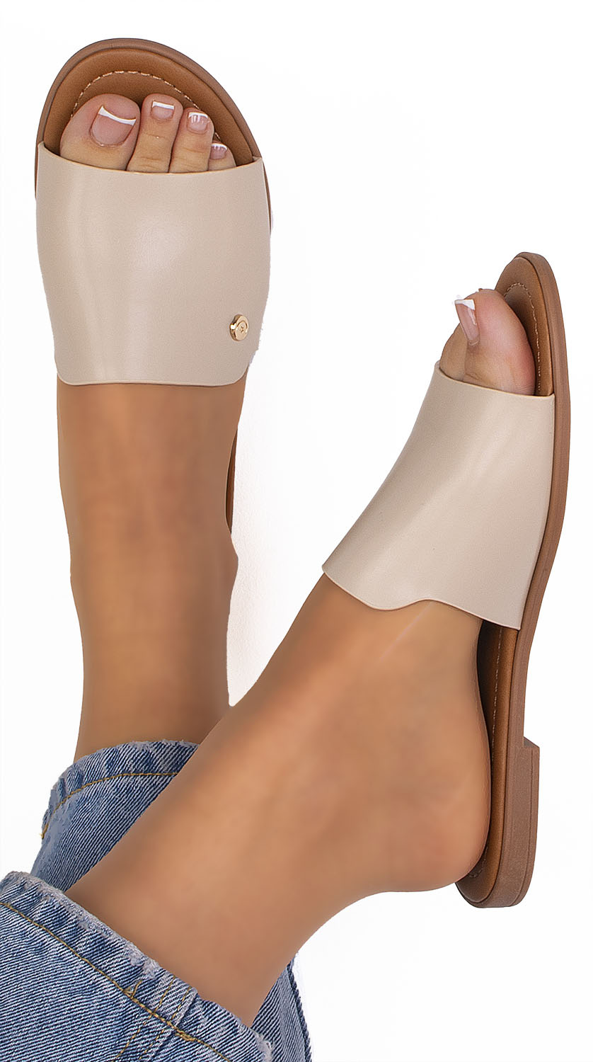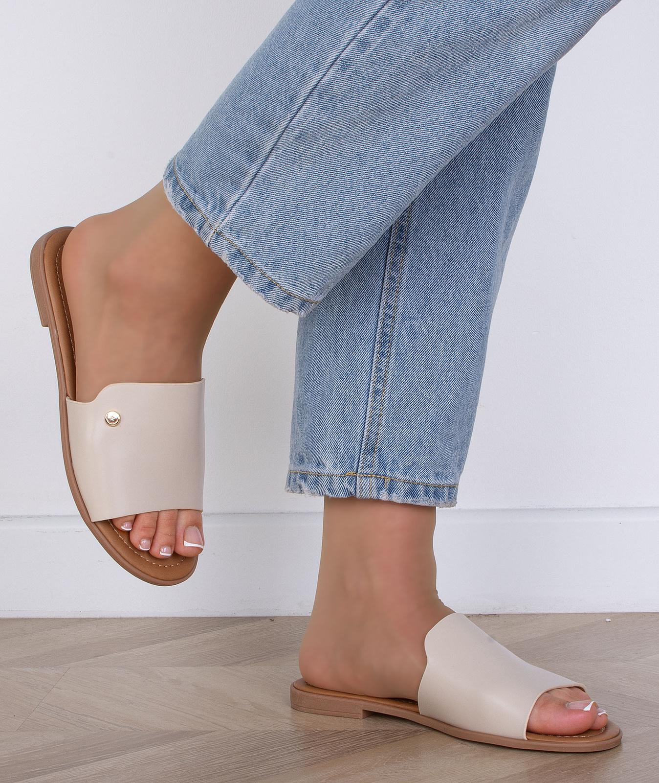 BEŻOWE KLASYCZNE KLAPKI WSUWANE DAMSKIE SKÓRZANE VERICIA