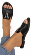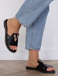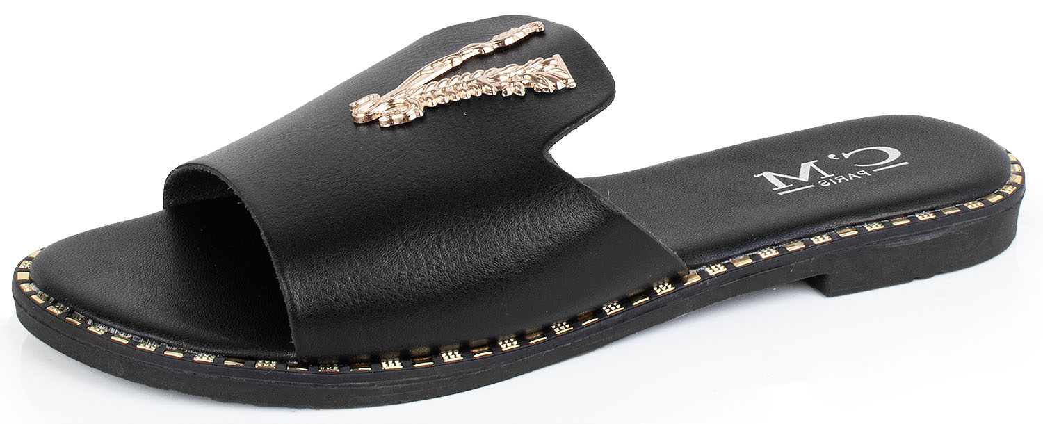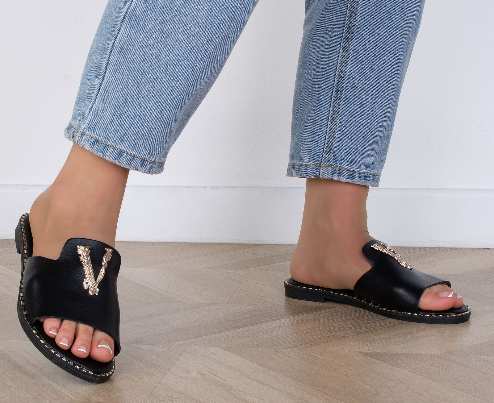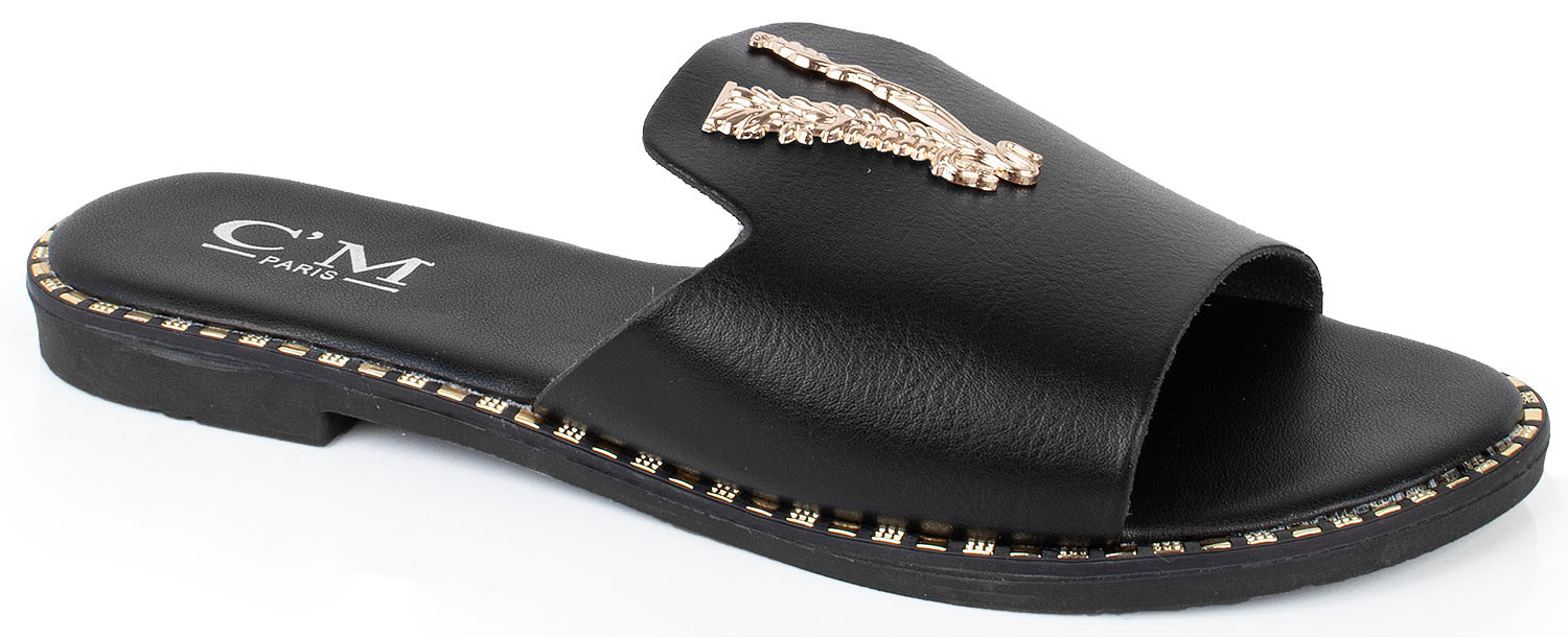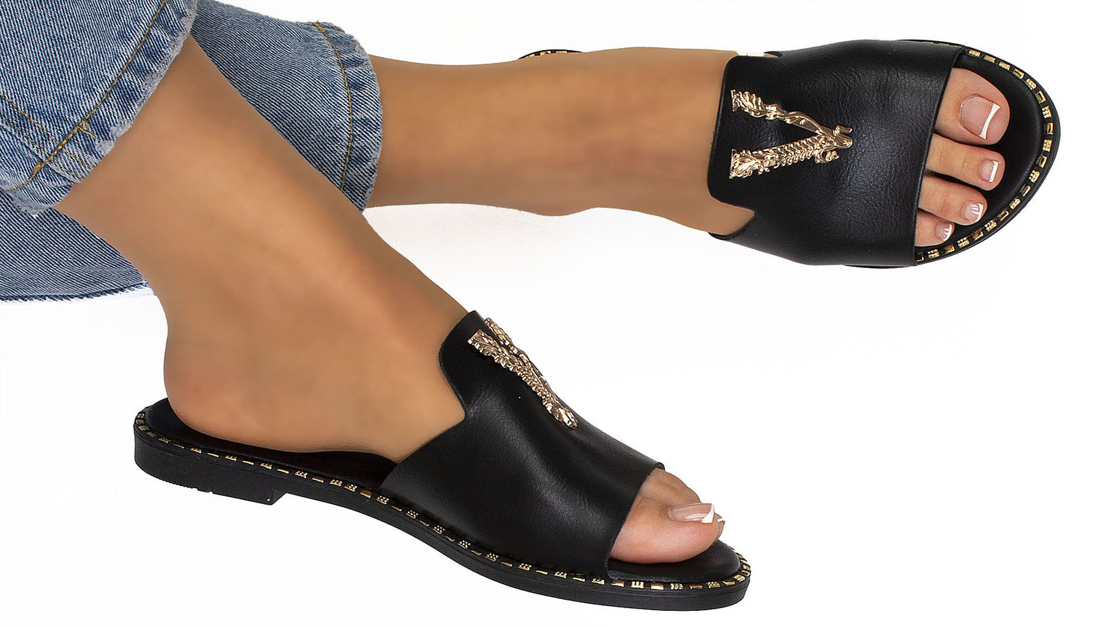 CZARNE DAMSKIE SKÓRZANE KLAPKI ELEGANCKIE OZDOBA FRANKLIN