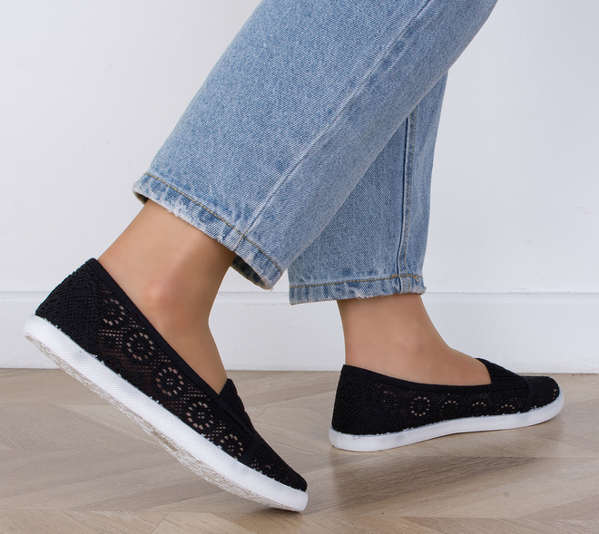 Czarne koronkowe trampki to połączenie wygody sportowych butów z delikatnym, kobiecym akcentem koronki. Ich neutralny szary kolor sprawia, że są one doskonałym wyborem na różne okazje, od casualowych spacerów po bardziej eleganckie wyjścia. Koronkowa cholewka dodaje tym trampkom subtelności i delikatności, co sprawia, że wyróżniają się spośród innych modeli sportowych obuwia. Koronka doskonale komponuje się z gumową podeszwą w tym samym kolorze, tworząc spójną i stylową całość. Wykonane z wysokiej jakości materiałów, szare koronkowe trampki są nie tylko atrakcyjne wizualnie, ale także wygodne w noszeniu. Ich lekka konstrukcja zapewnia komfort i swobodę ruchów, a amortyzowana podeszwa absorbuje wstrząsy, zapewniając stabilność i wsparcie dla stopy.