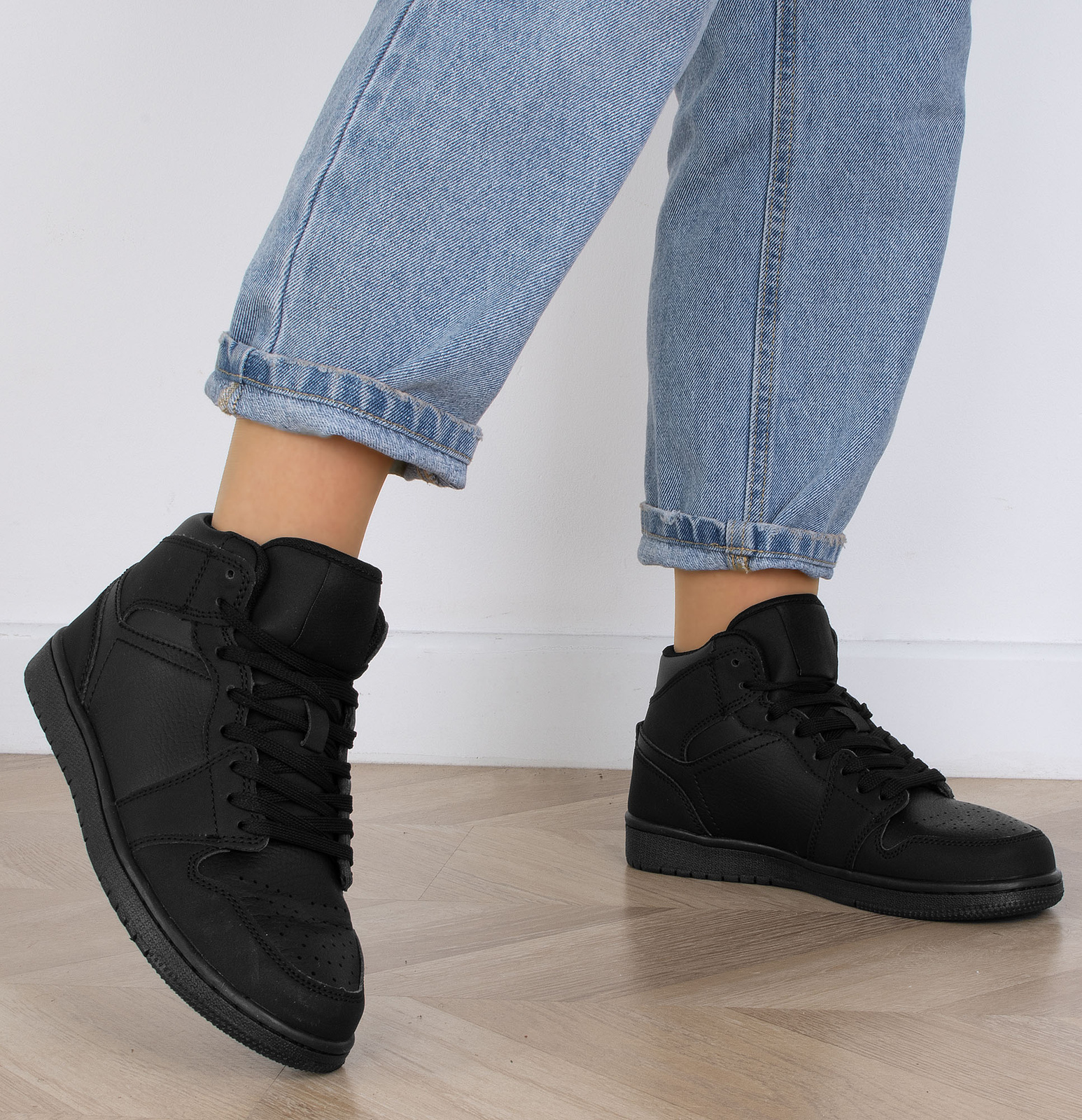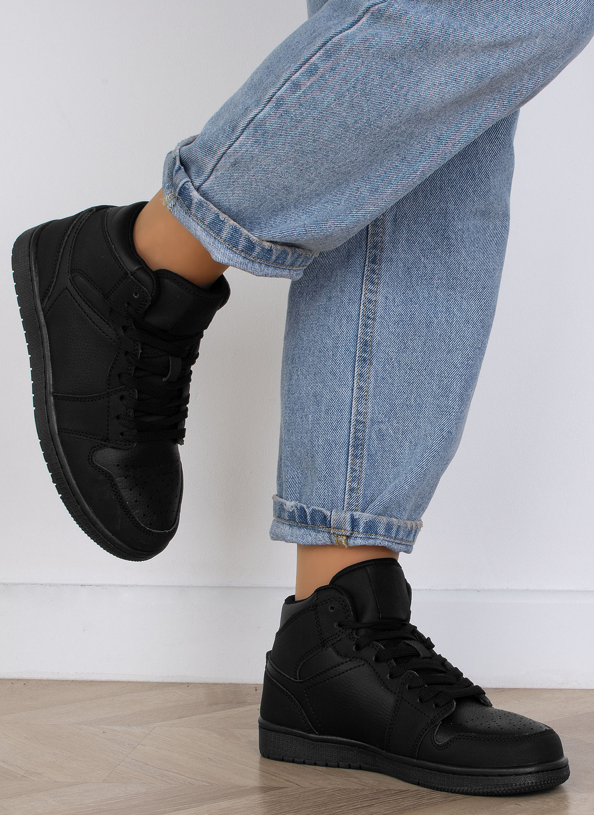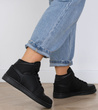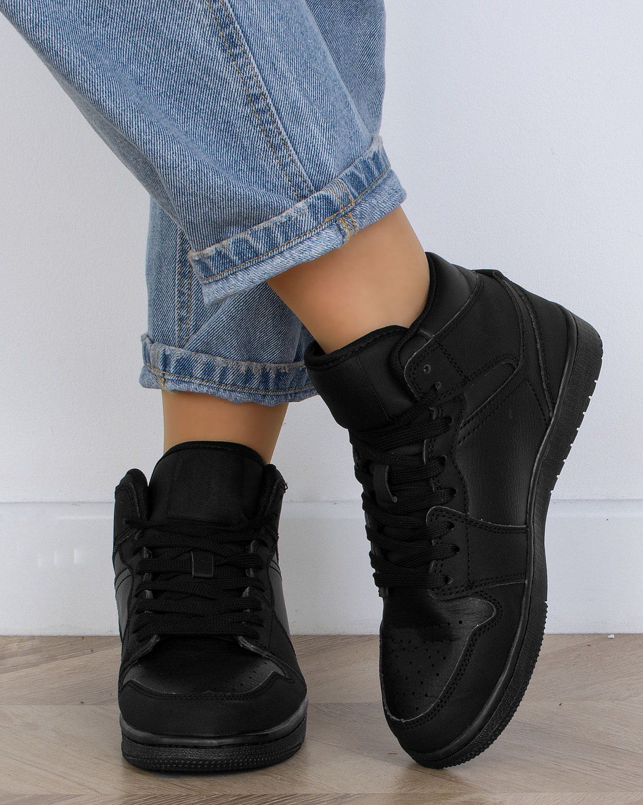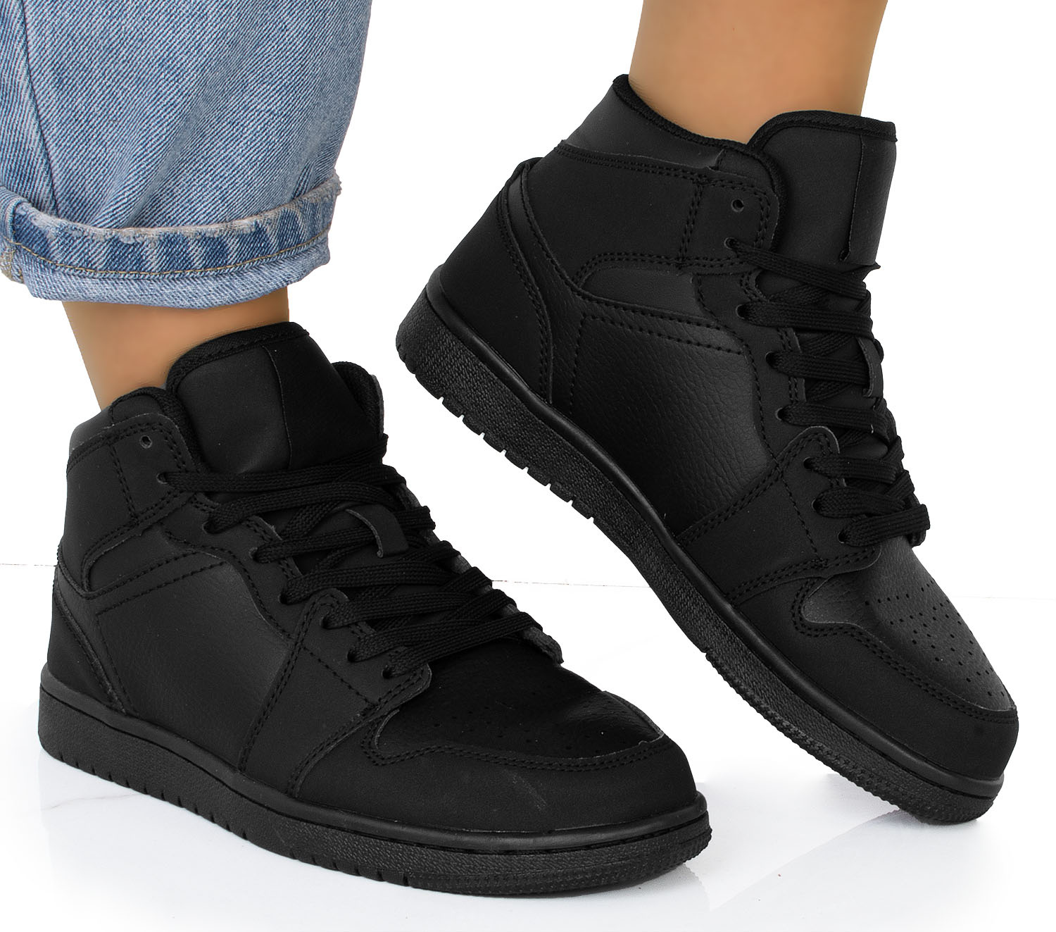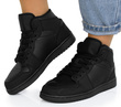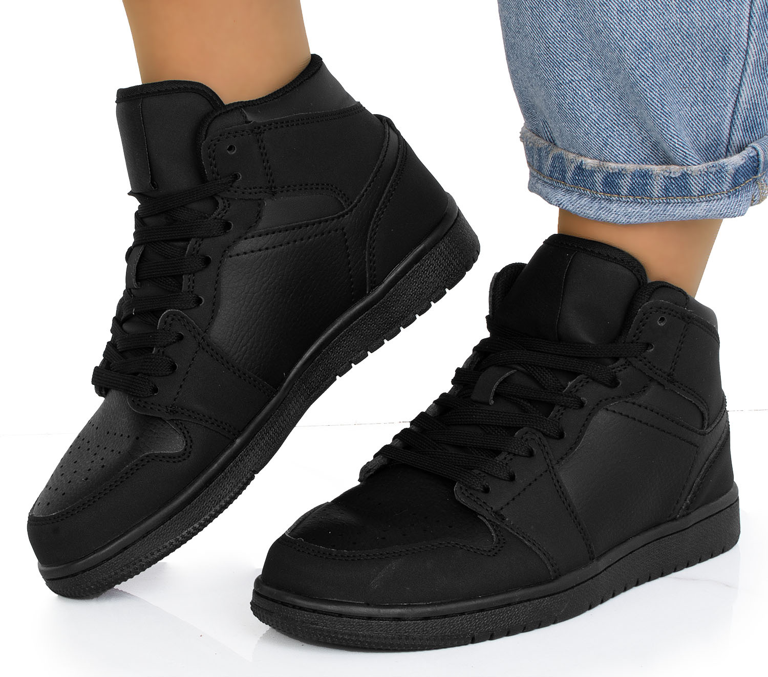 Czarne wysokie sneakersy to idealne połączenie stylu sportowego i casualowego. Wyższa cholewka zapewnia nowoczesny, modny wygląd, który świetnie wpisuje się w aktualne trendy. Uniwersalny czarny kolor sprawia, że obuwie pasuje do niemal każdej stylizacji, od dresowych zestawów po jeansy i sukienki. Wysoka cholewka chroni kostki, dodając stabilności. Ten model to must-have w szafie każdego miłośnika miejskiego stylu! Idealne na każdą porę roku, zarówno dla kobiet, jak i mężczyzn.