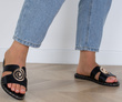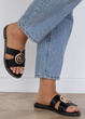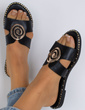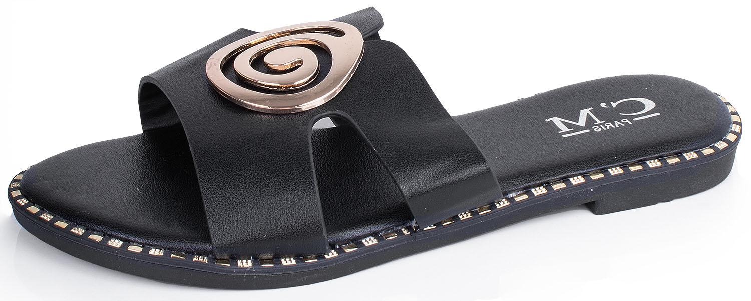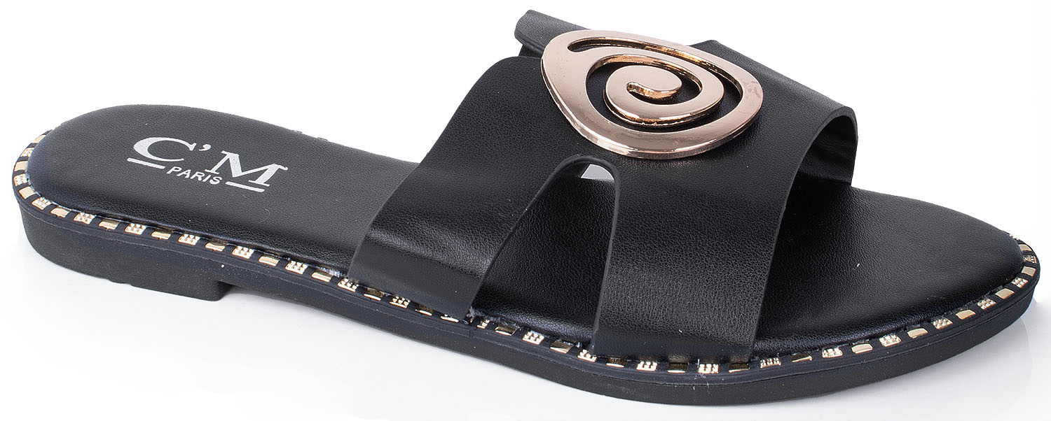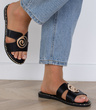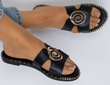 CZARNE DAMSKIE SKÓRZANE KLAPKI ELEGANCKIE OZDOBA DALIA