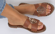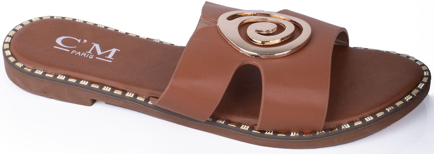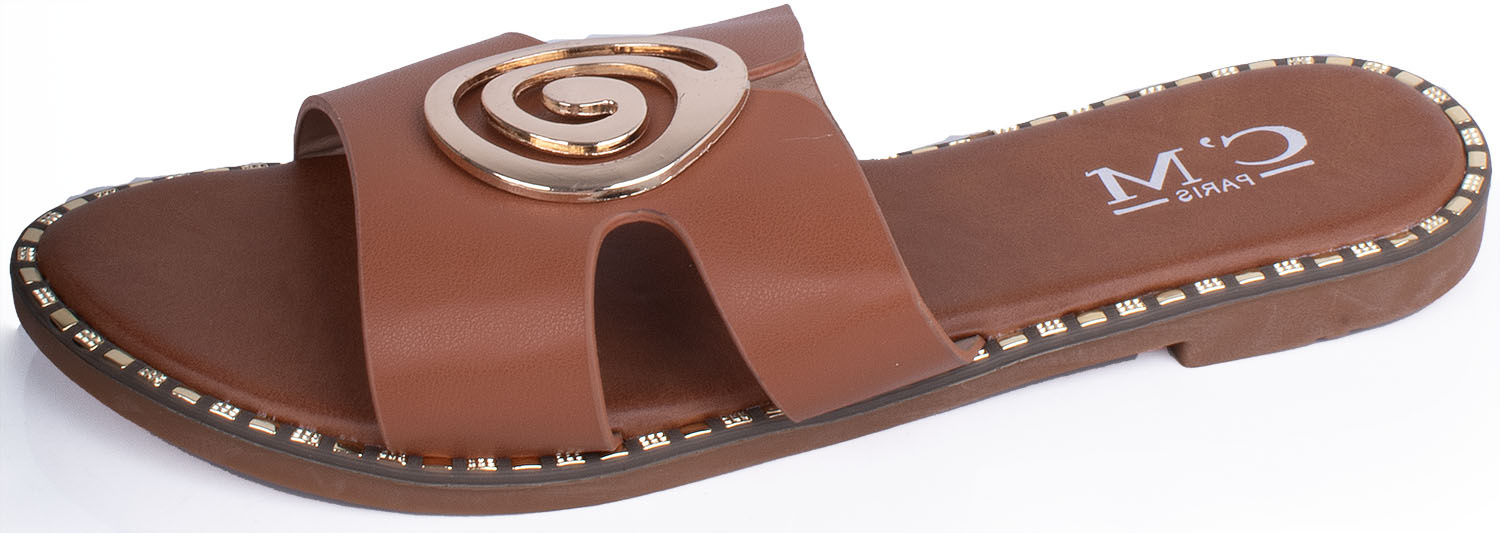 CAMEL DAMSKIE SKÓRZANE KLAPKI ELEGANCKIE OZDOBA DALIA
