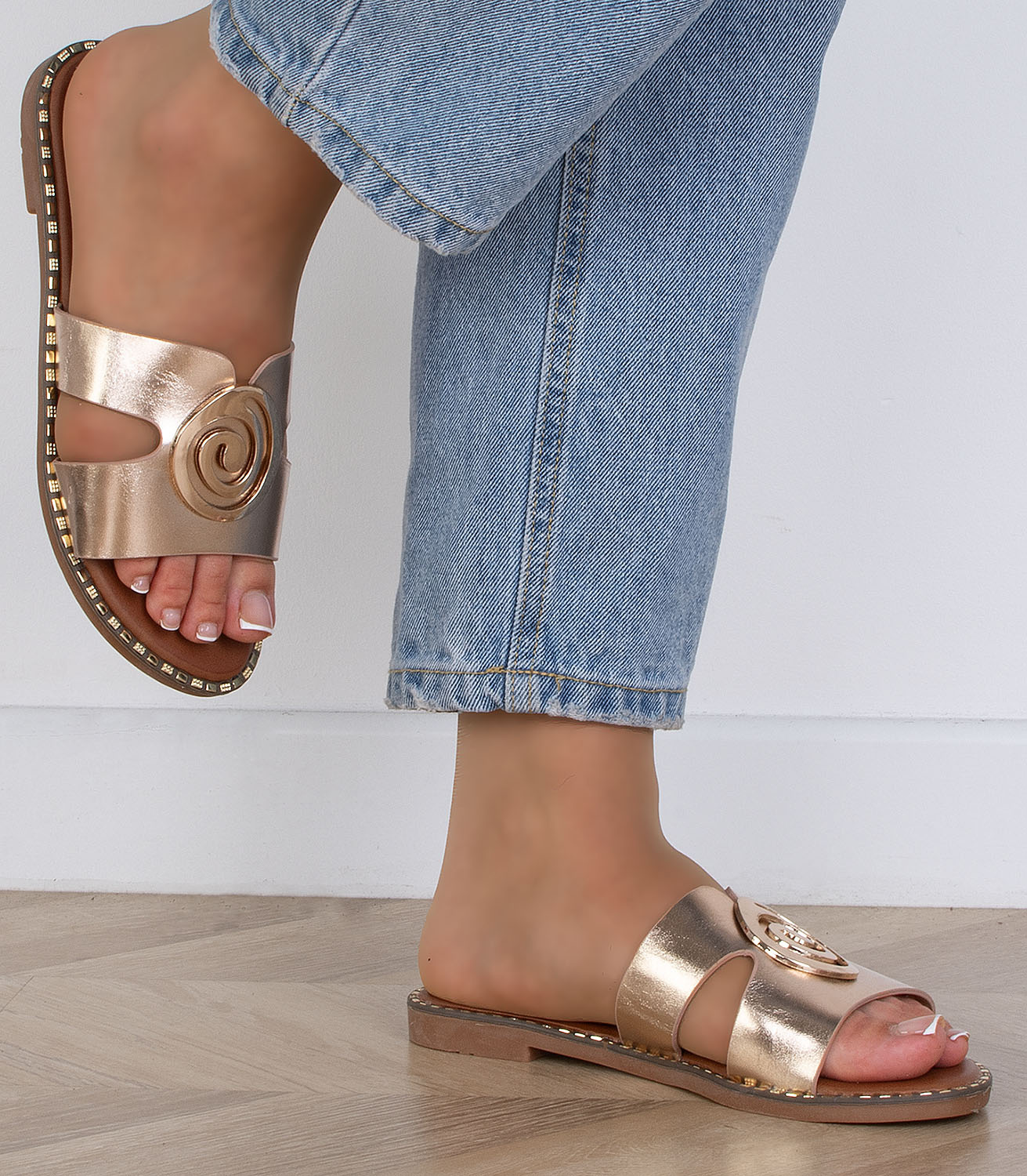 Klapki damskie to obuwie, które jest idealne na każdą okazję. Te wygodne klapki na płaskiej podeszwie są idealne na spacer po plaży lub po prostu na codzienne noszenie. Wykonane z wysokiej jakości skóry, są one wygodne i trwałe, a dodatkowo wyposażone w skórzany pasek z efektowną złotą ozdobą, która dodaje im uroku. Te klapki są idealne na lato, ponieważ są lekkie i wygodne, dzięki czemu możesz cieszyć się wygodą i stylowym wyglądem. Są one dostępne w wielu kolorach, więc możesz wybrać coś, co pasuje do Twojego stylu. Te klapki są świetnym dodatkiem do Twojej letniej garderoby i zapewnią Ci wygodę i styl.