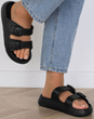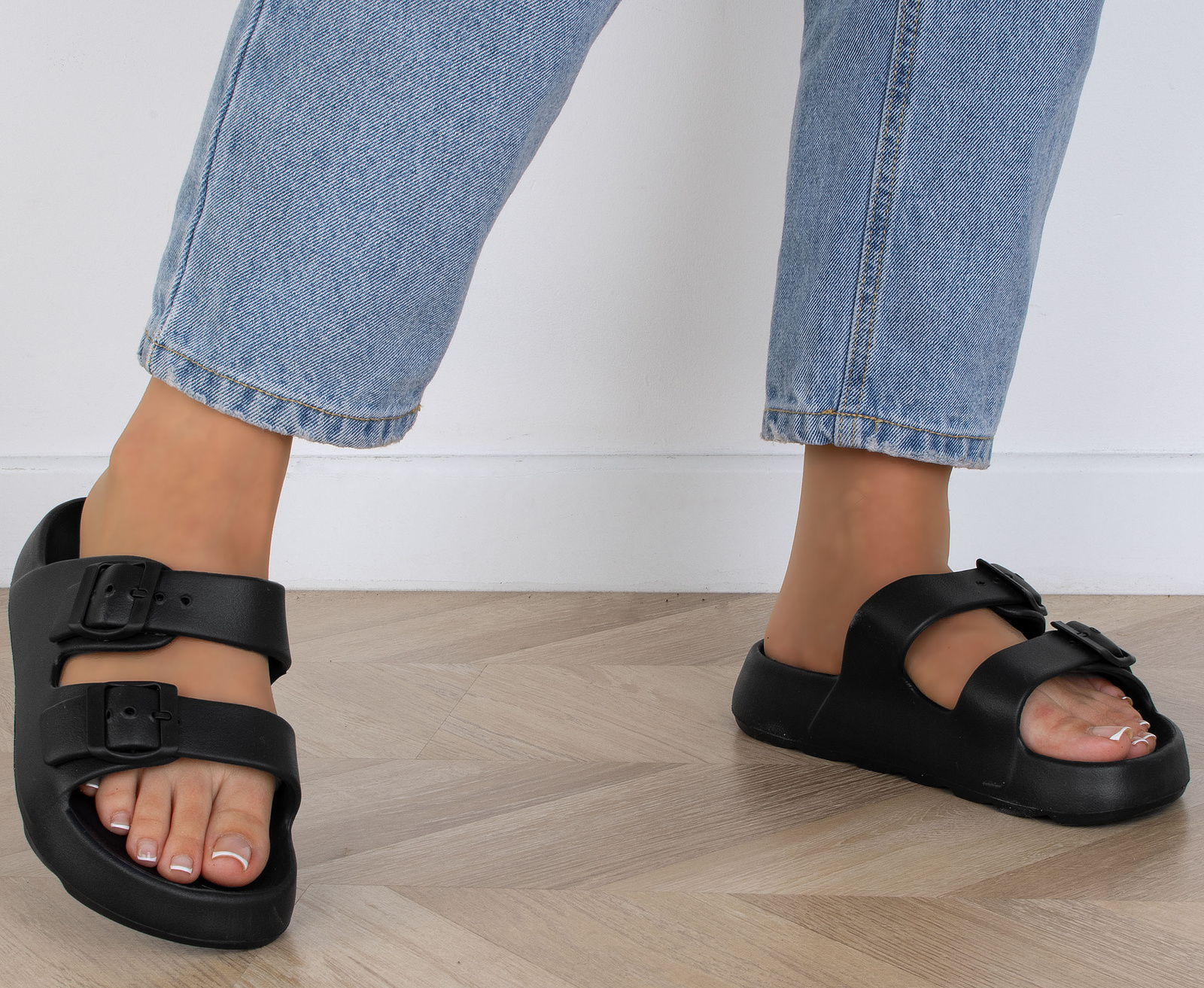 CZARNE DAMSKIE KLAPKI WYGODNE NA PLATFORMIE JEREZ