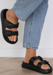 Czarne klapki na platformie to oryginalne obuwie, które łączy w sobie wygodę i styl. Wykonane z wytrzymałego materiału, te klapki są doskonałym wyborem na letnie dni, zarówno na plażę, jak i na spacer po mieście. Ich kolorystyka nadaje im świeży i nowoczesny wygląd, który doskonale komponuje się z letnimi stylizacjami. Klapki na platformie z klamrą to doskonały wybór dla osób ceniących sobie wygodę i styl. Bez względu na okazję, będą one idealnym uzupełnieniem letniej garderoby, dodając każdej stylizacji nuty świeżości i oryginalności.