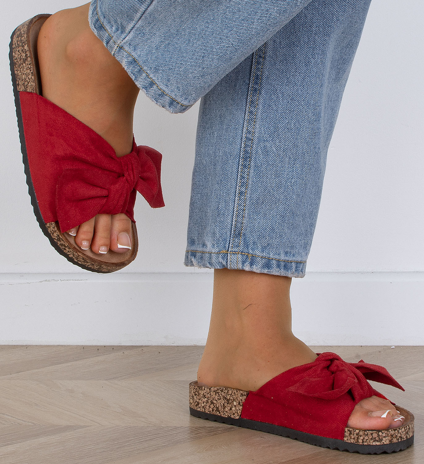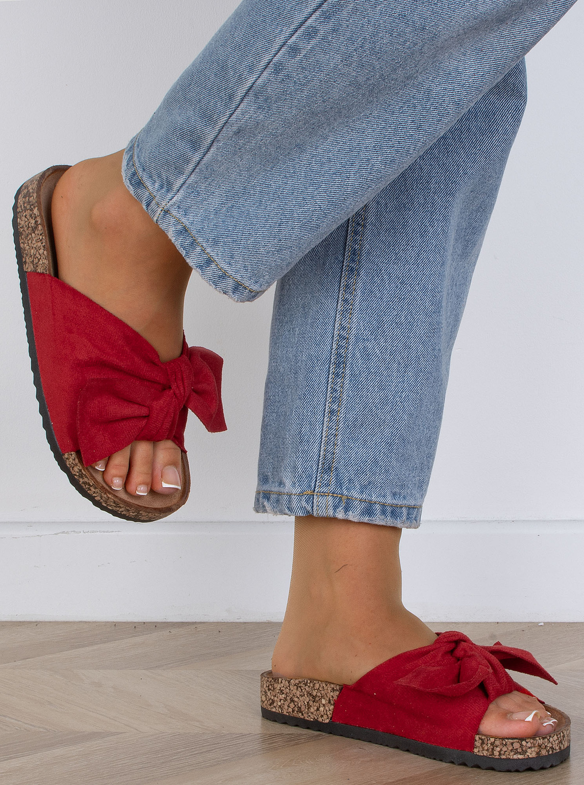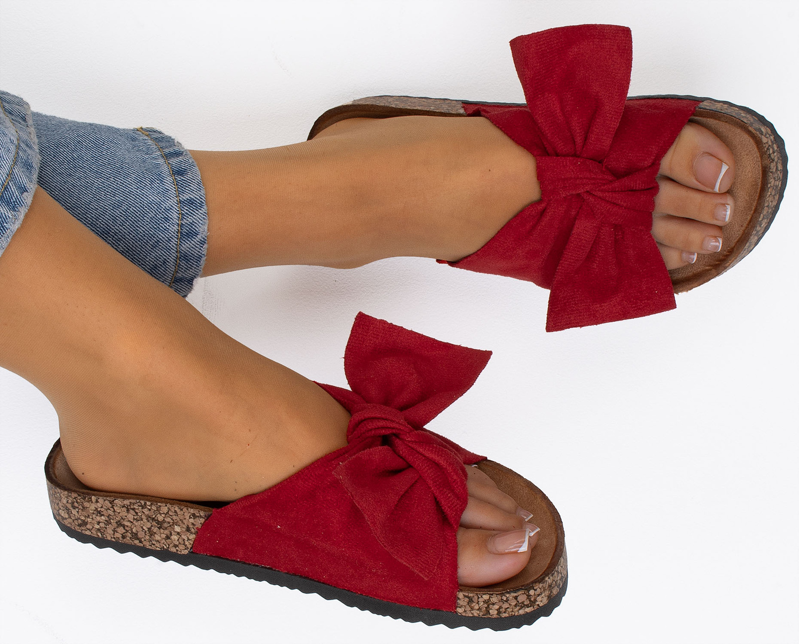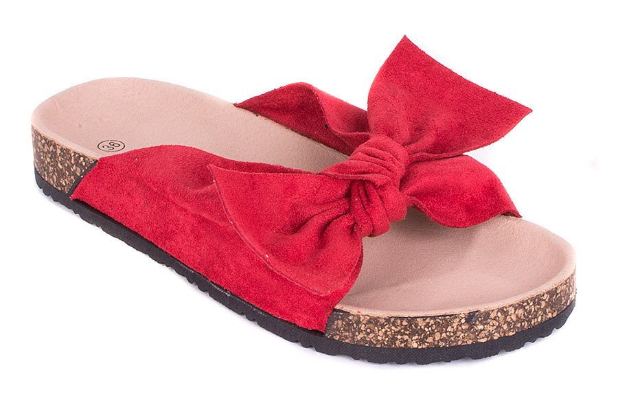 CZERWONE ZAMSZOWE KLAPKI Z KOKARDĄ ALISIA