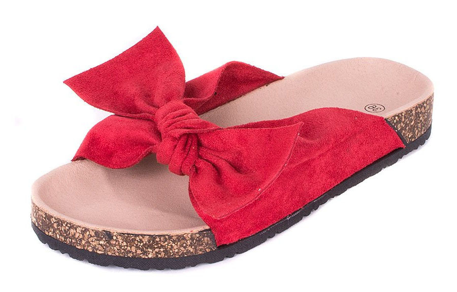 • Klapki to uniwersalny model, który sprawdzi się w każdej sytuacji. Wykonane są z miękkiego zamszu, dzięki czemu są wygodne i przyjemne w dotyku. Na korku znajduje się kokardka, która dodaje im uroku.