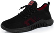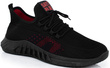 Męskie buty sportowe wykonane z materiału tkaninowego w kolorze czarnym z czerwonymi wstawkami. Obuwie sznurowane, lekka sportowa podeszwa, idealne na wiosnę.