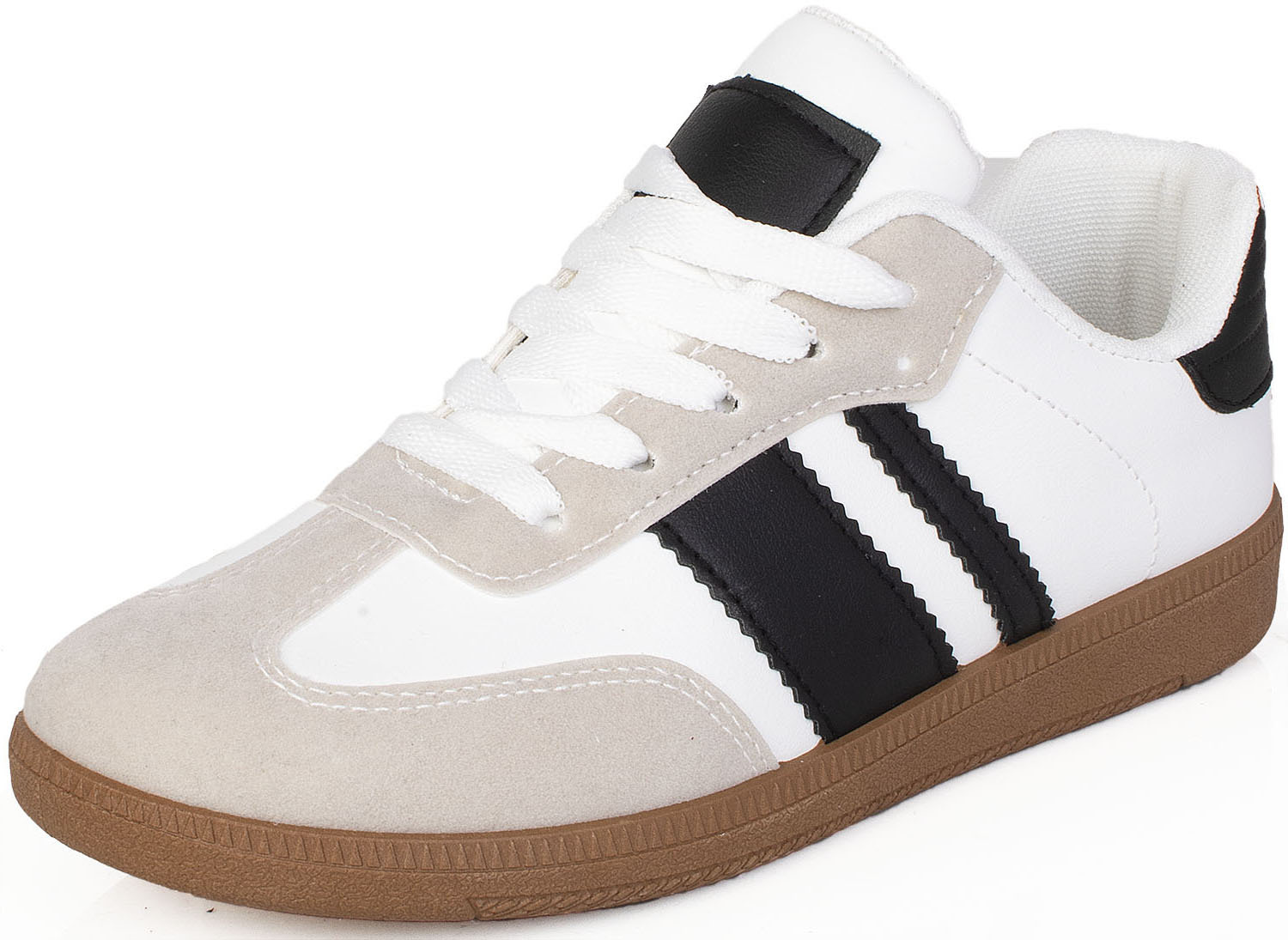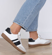 Nasze sneakersy skórzane, wyprodukowane z najwyższej jakości ekoskóry, to odpowiedź na Twoje potrzeby. Przyjazny dla środowiska i modny design sportowego stylu sprawią, że będziesz wyglądać modnie, a dodatkowo miękka cholewka zapewni Ci wygodę przy każdym kroku. Jeśli to Cię nie przekonuje, ten model cechuje się również miękką i przyjemną wkładką tkaninową, dzięki której twój komfort noszenia jest dostosowany do Twoich potrzeb. No i oczywiście sznurowane zapięcie, dzięki któremu dobierzesz idealną precyzję dopasowania. Te sneakersy skórzane to strzał w dziesiątkę dla każdej Pani, która ceni sobie modny i funkcjonalny styl.