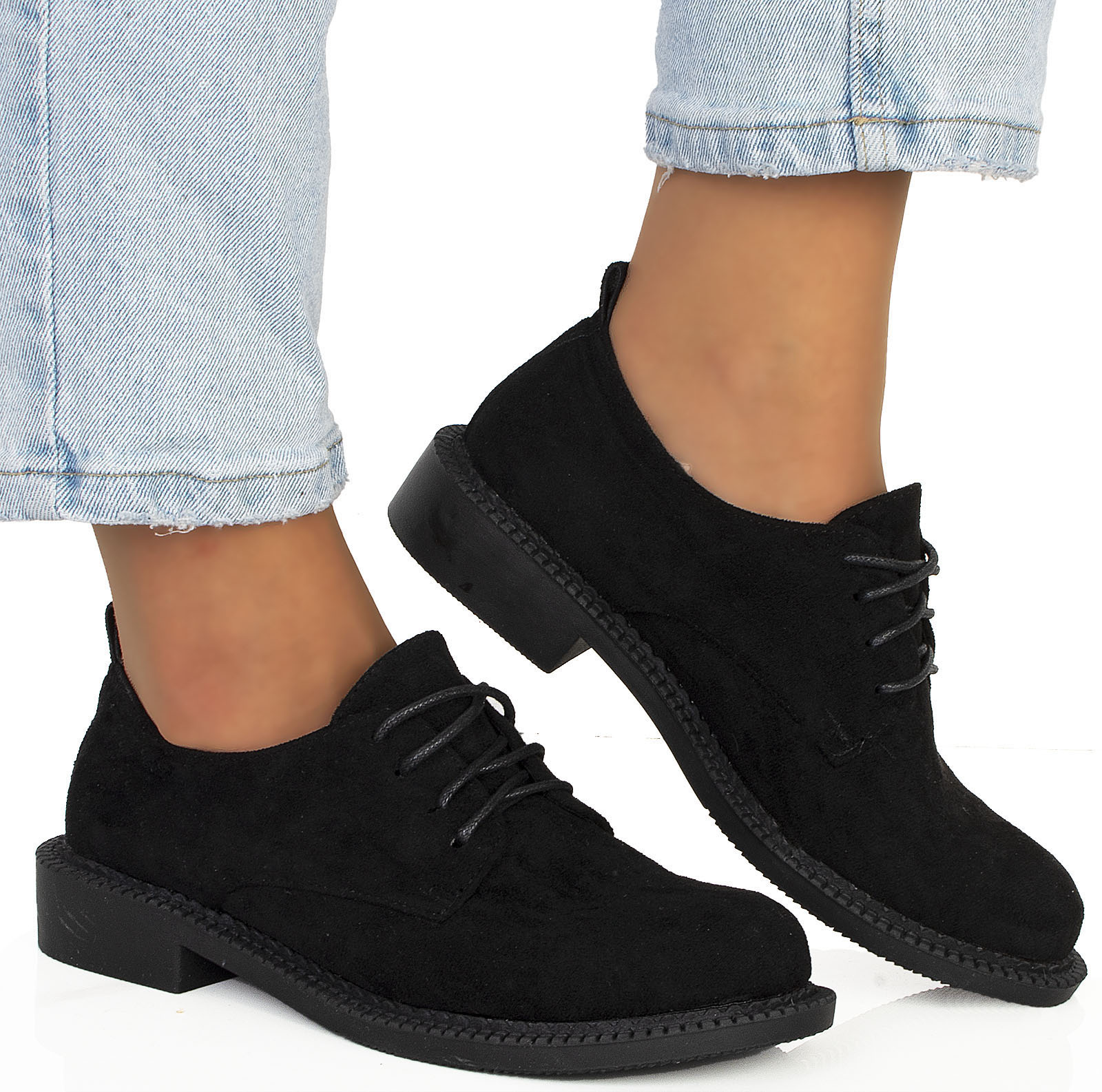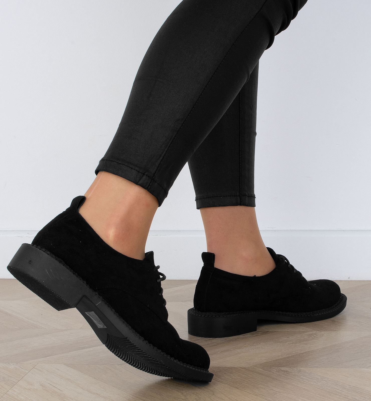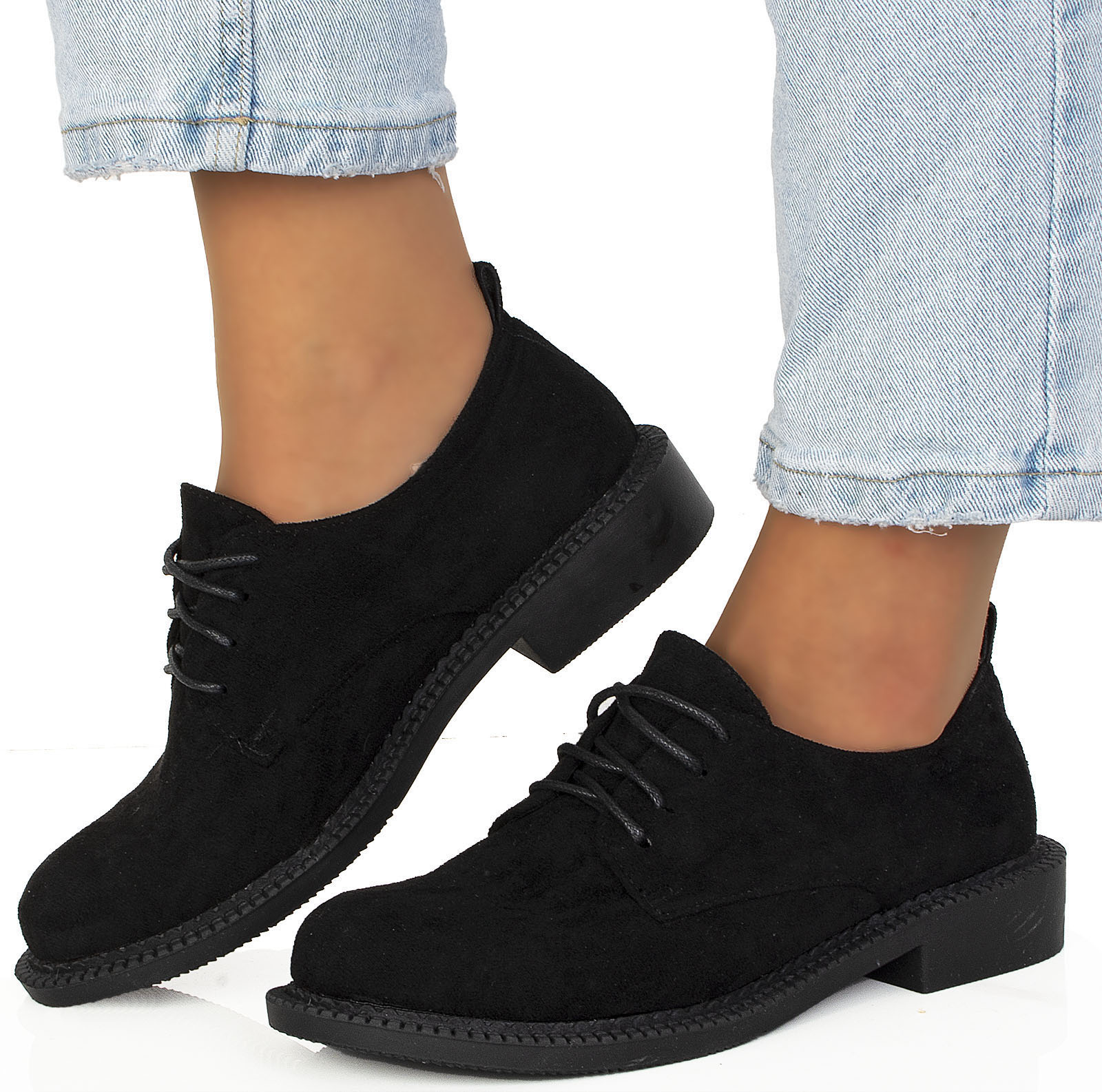 CZARNE PÓŁBUTY ZAMSZOWE DAMSKIE SZNUROWANE SIRRO