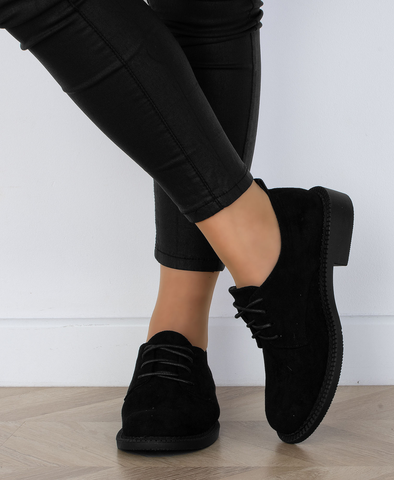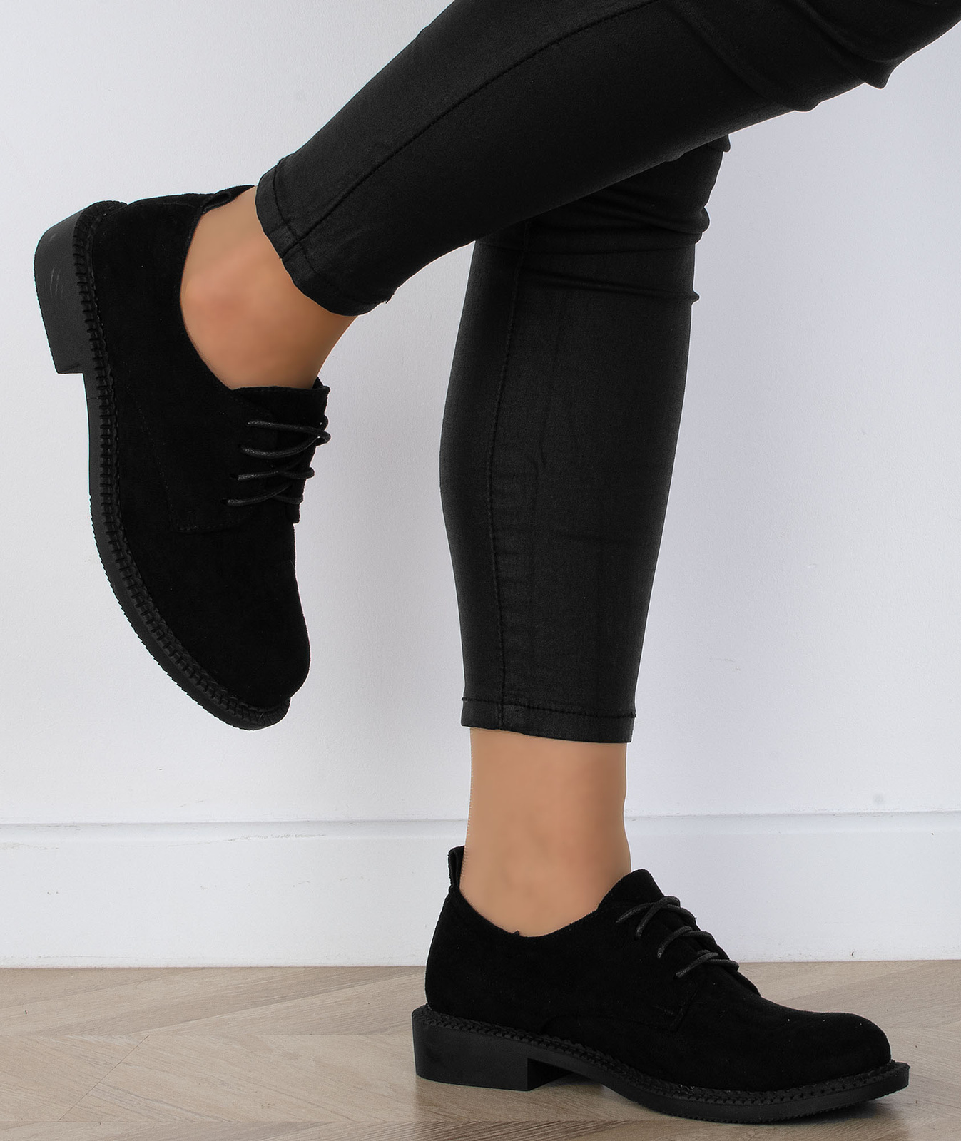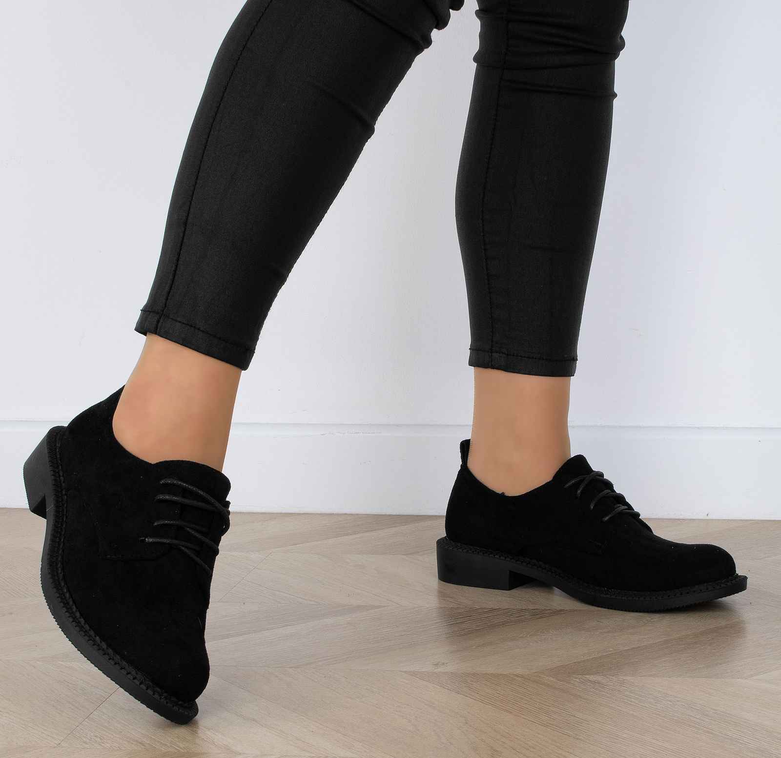 CZARNE PÓŁBUTY ZAMSZOWE DAMSKIE SZNUROWANE SIRRO