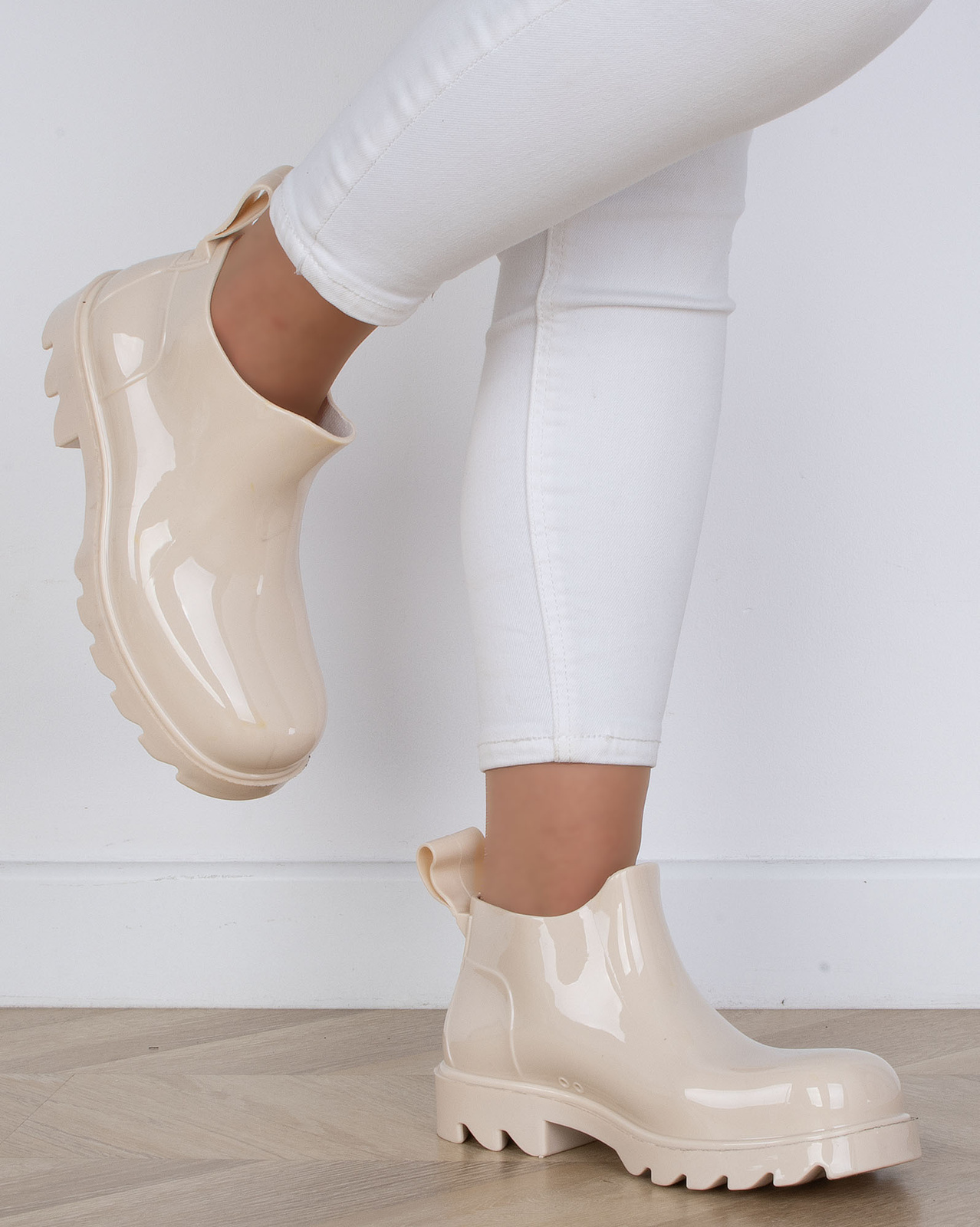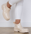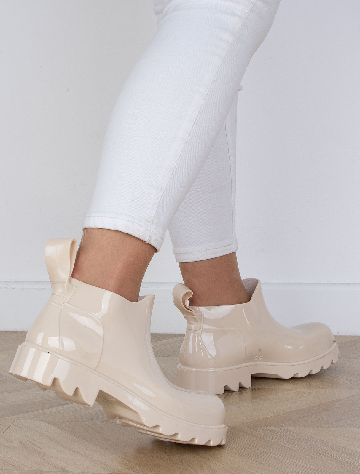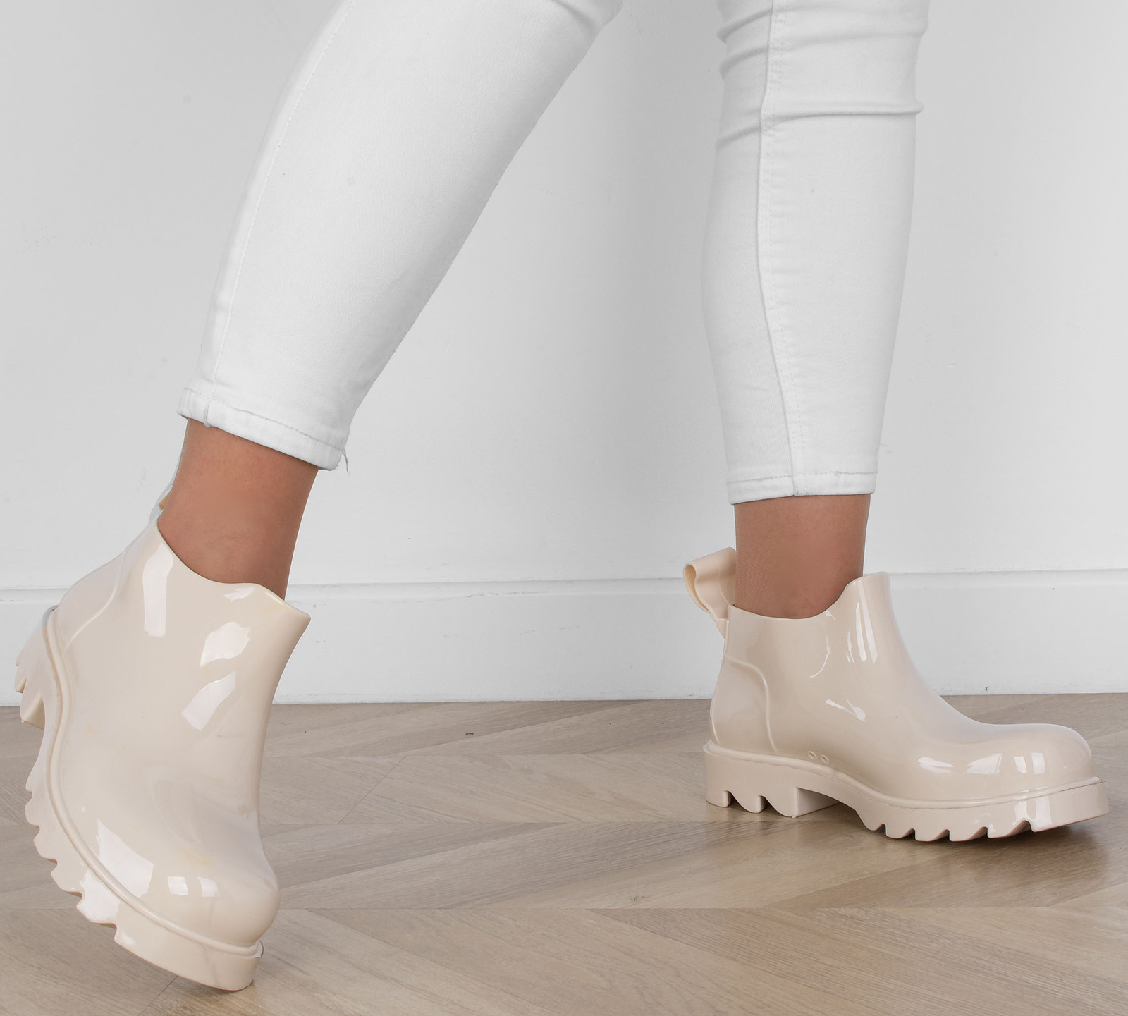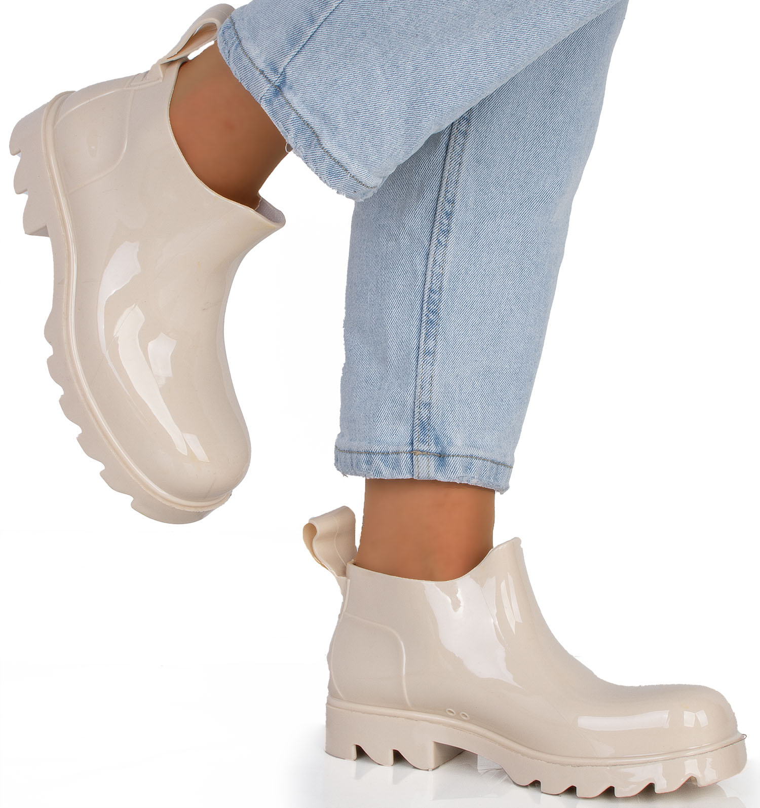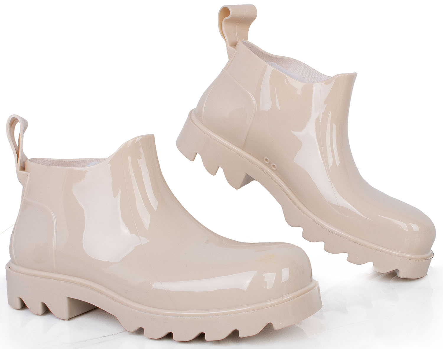 BEŻOWE DAMSKIE KRÓTKIE KALOSZE LAKIEROWANE WINSLOW
