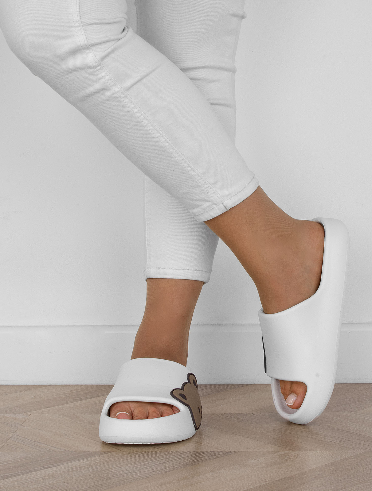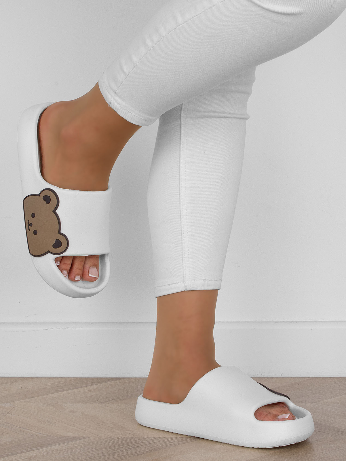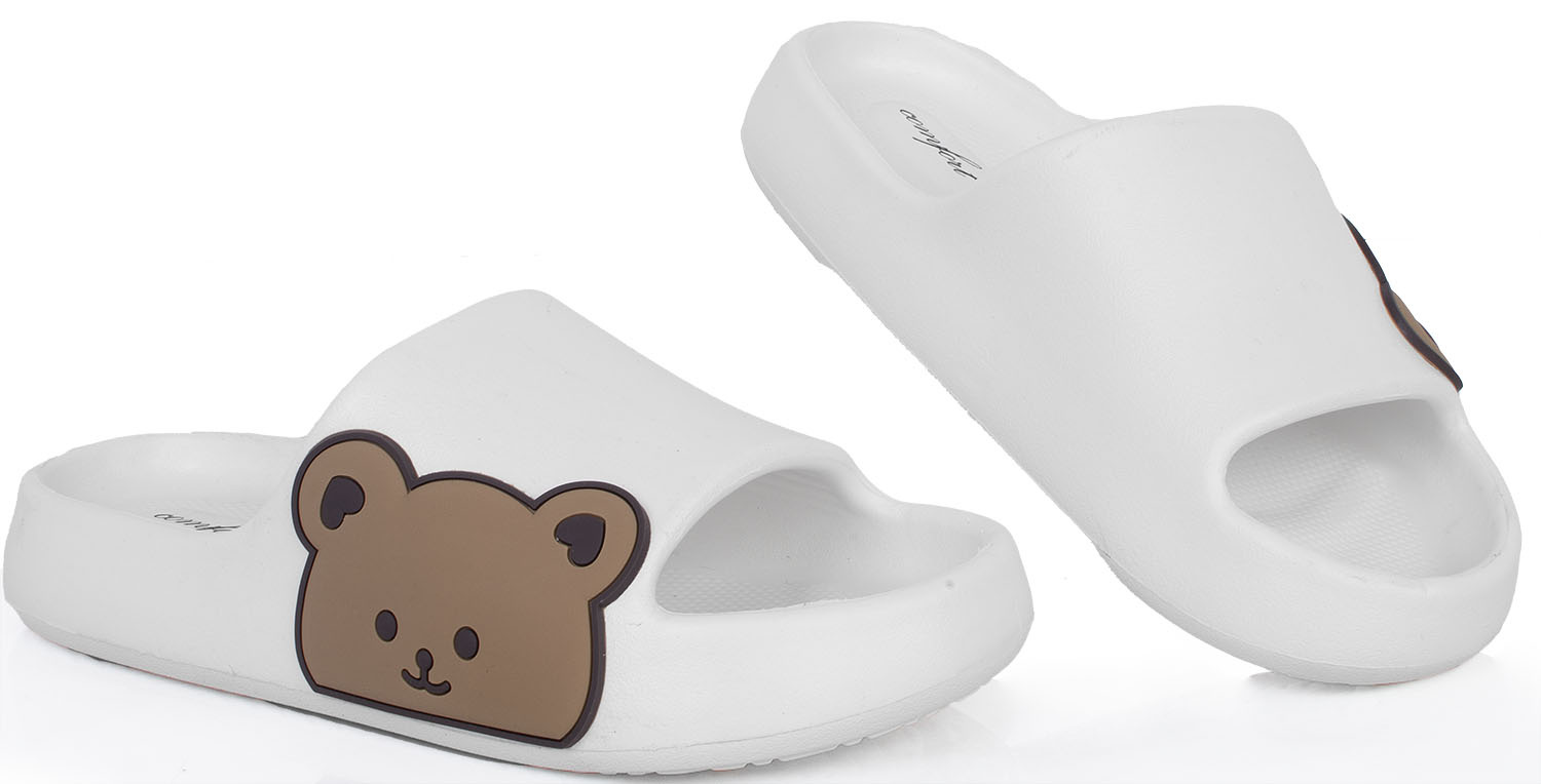 BIAŁE DAMSKIE PIANKOWE KLAPKI MIŚ ASHBY