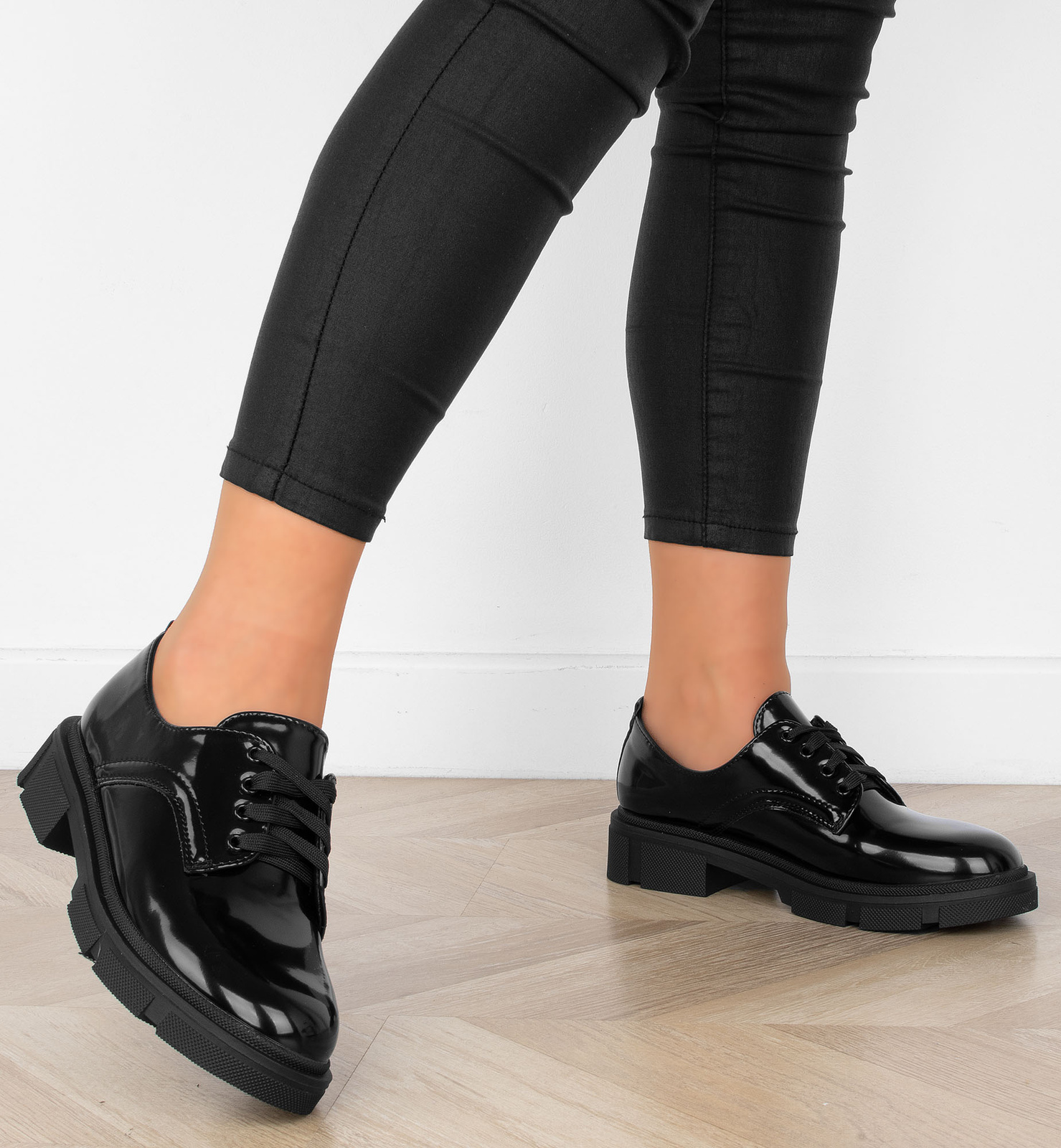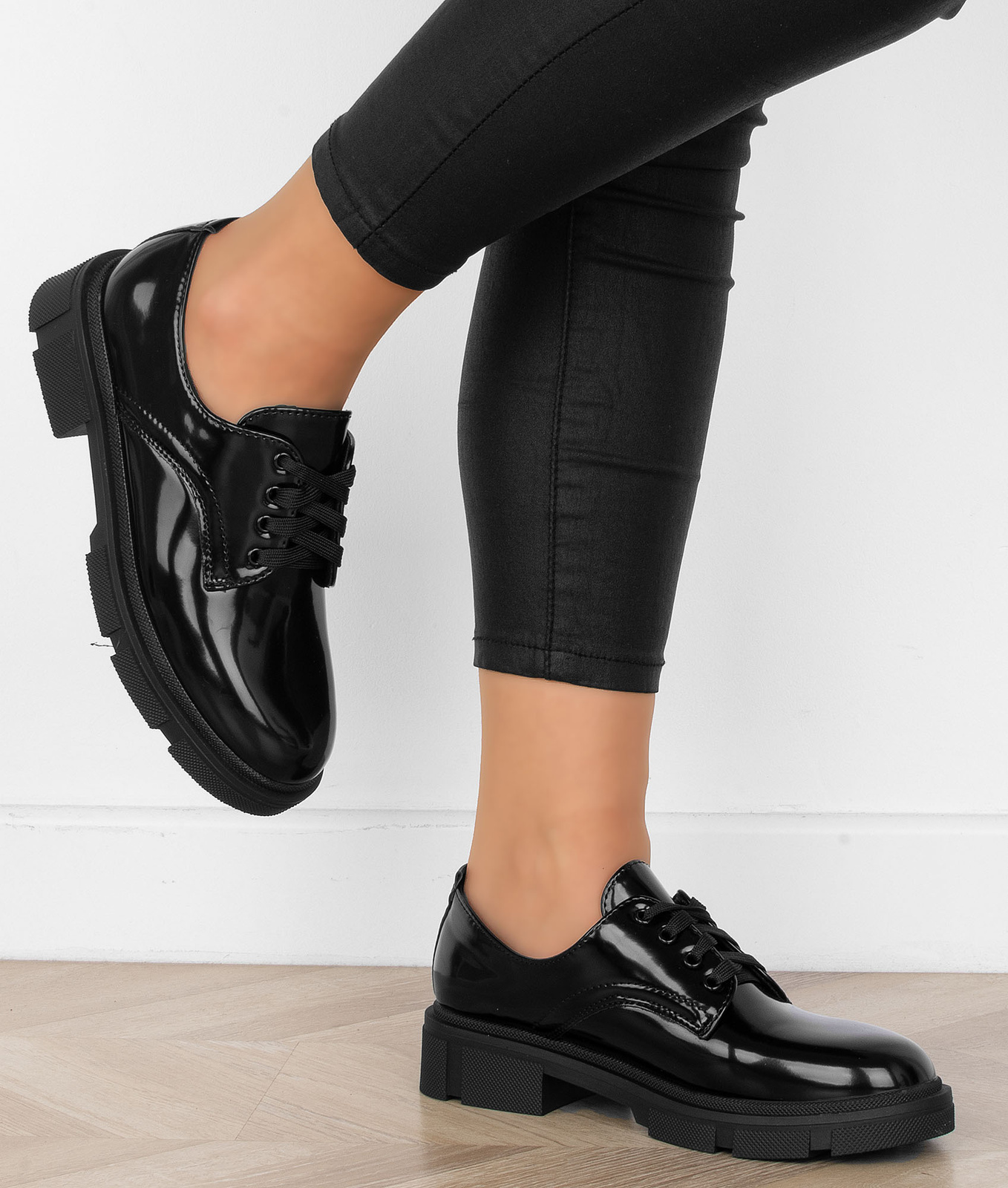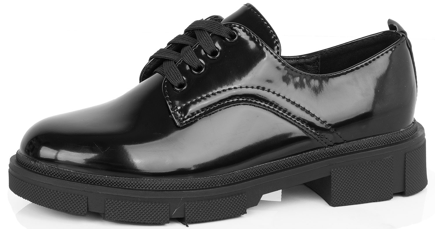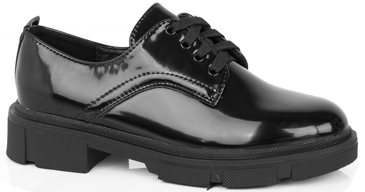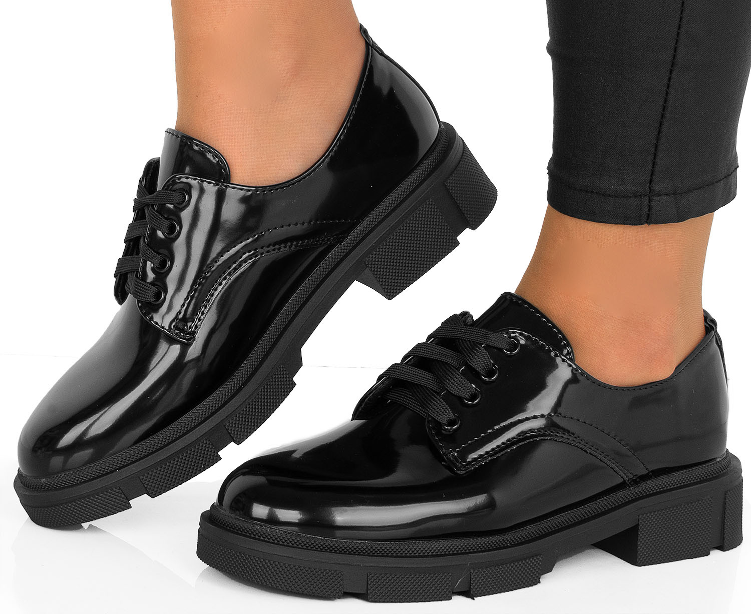 CZARNE MOKASYNY SZNUROWANE LAKIEROWANE PÓŁBUTY ROBIN