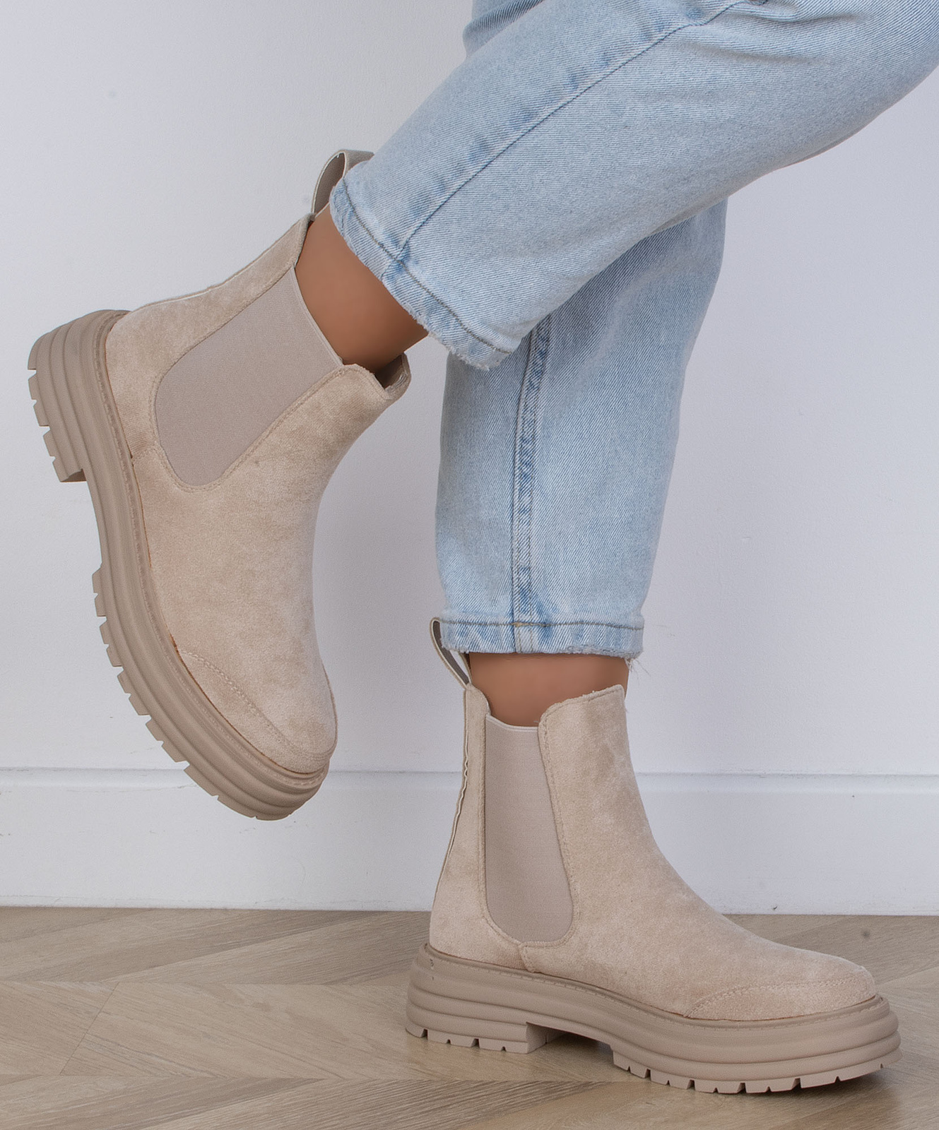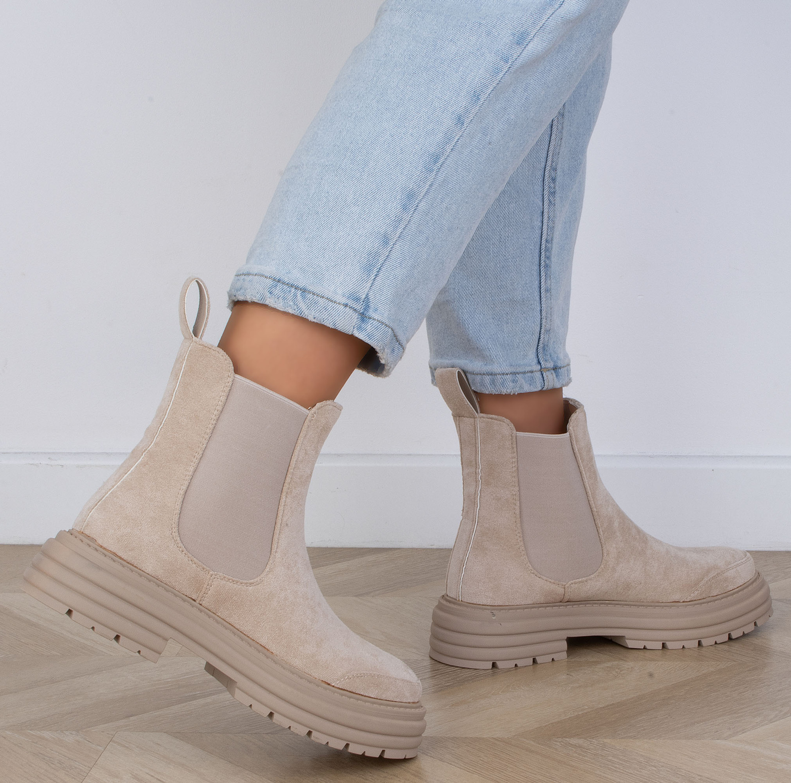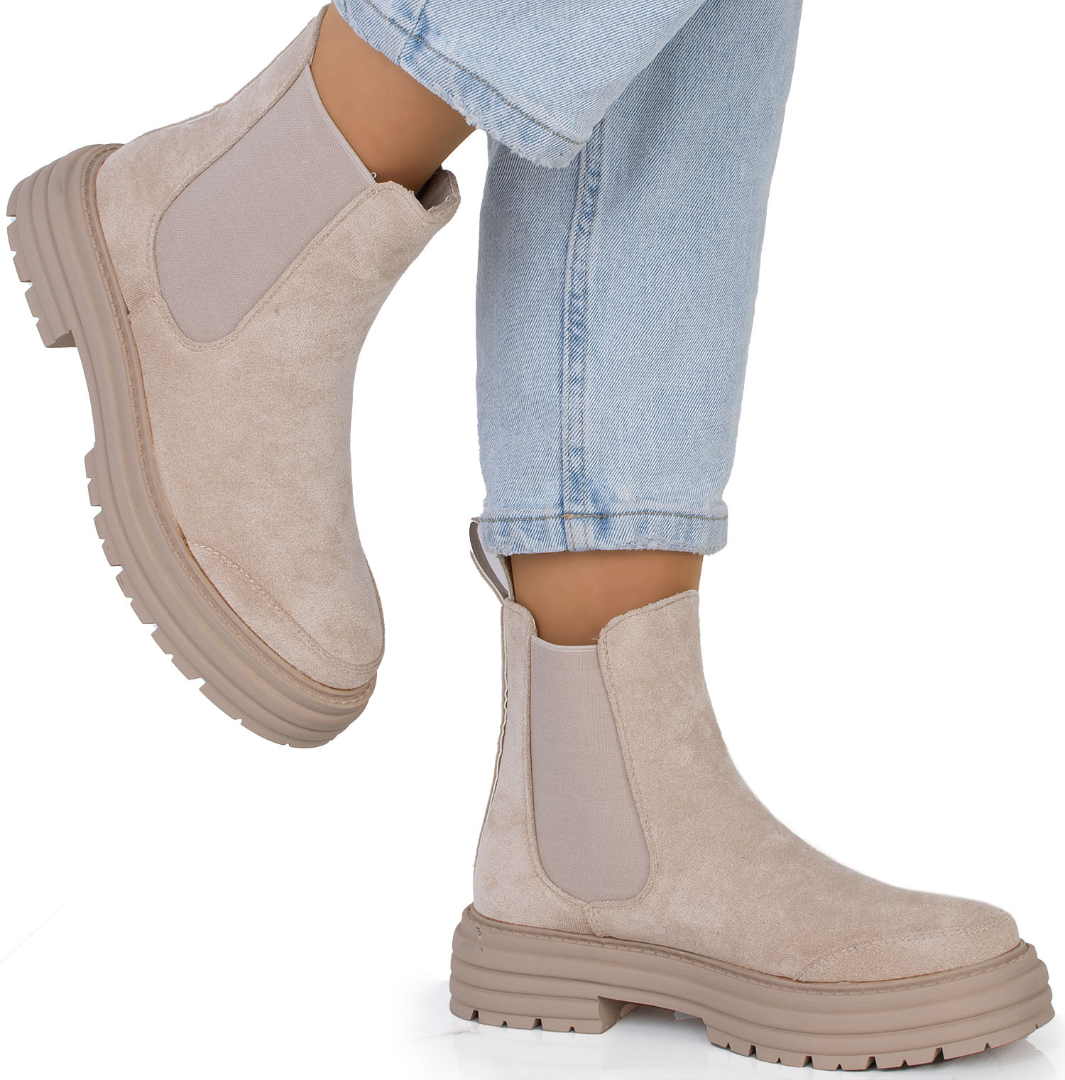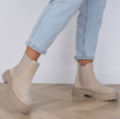 DAMSKIE BEŻOWE ZAMSZOWE BOTKI WSUWANE SZTYBLETY FALL