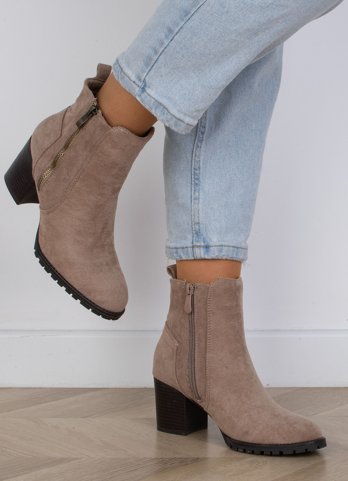 KHAKI DAMSKIE BOTKI NA SŁUPKU ZAMSZOWE GOLIA