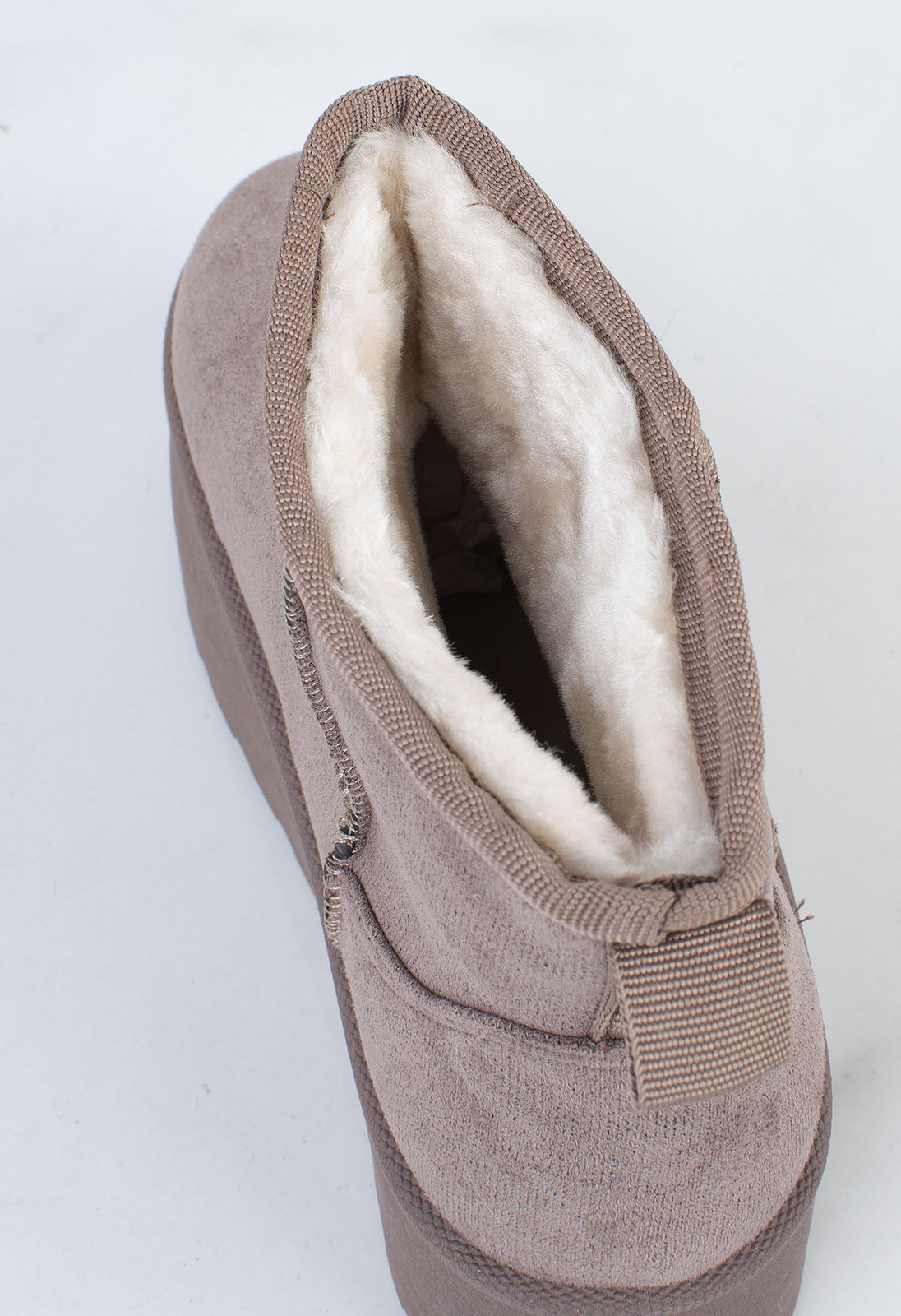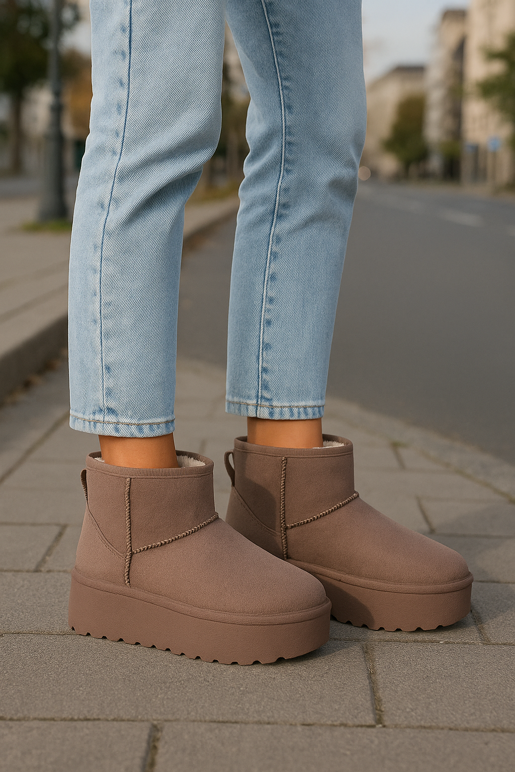 Cholewka śniegowców została wykonana z zamszu, który oprócz eleganckiego wyglądu charakteryzuje się wysoką trwałością. Wewnętrzna część buta została ocieplona ciepłym futerkiem, które doskonale chroni przed niskimi temperaturami i utrzymuje stopę w przyjemnym cieple. Futerko jest miękkie i przyjemne w dotyku, zapewniając wygodę podczas noszenia.