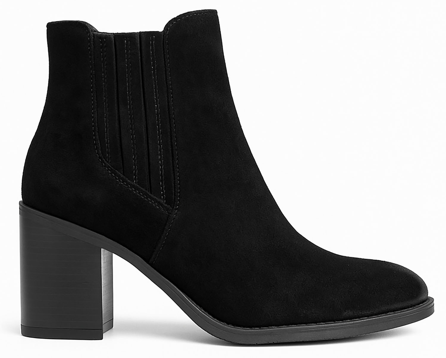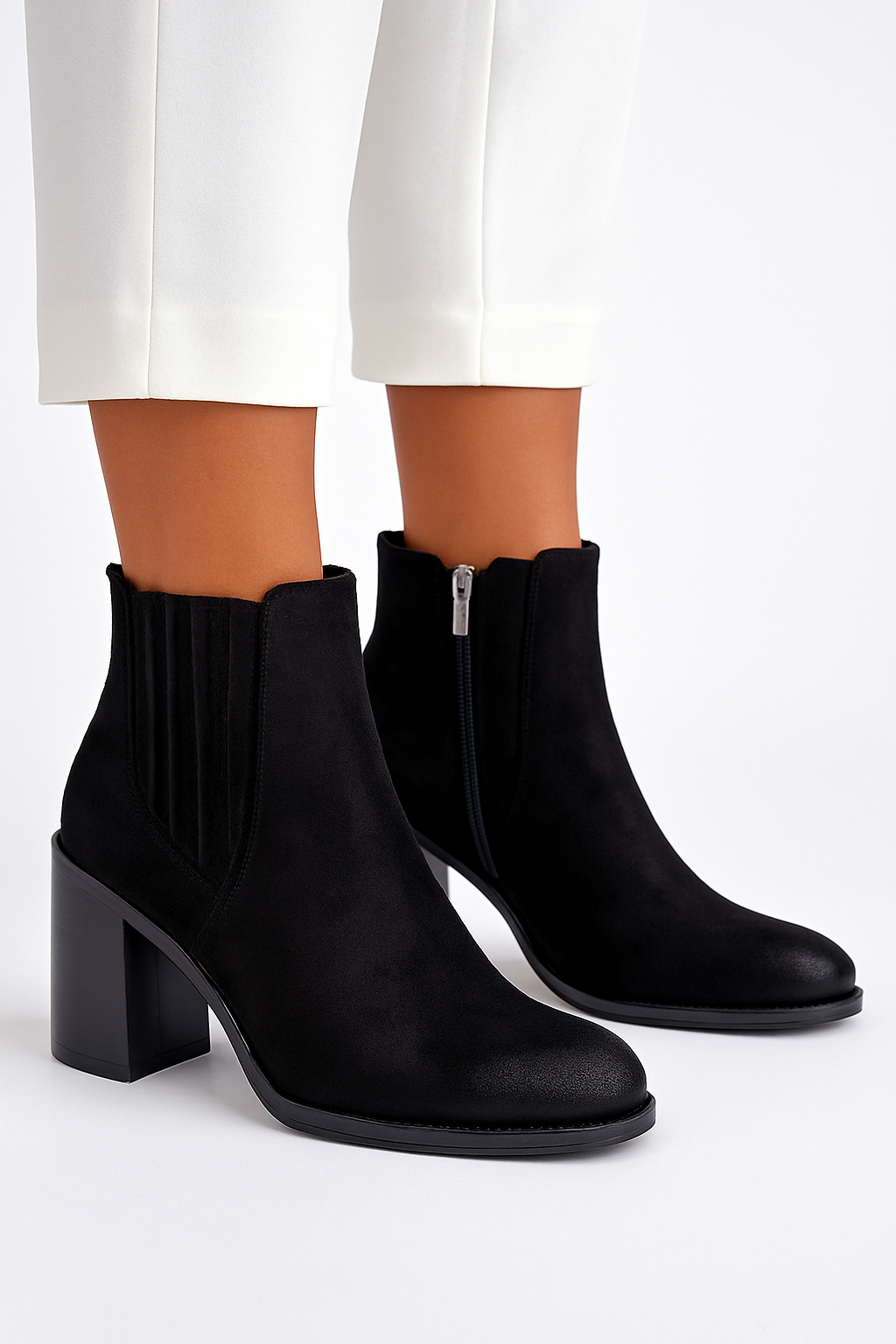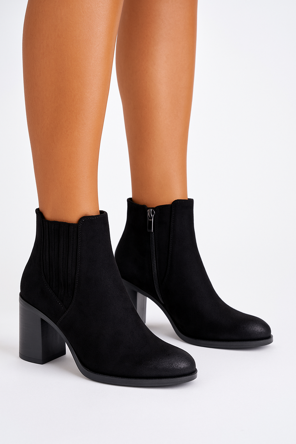 CZARNE DAMSKIE BOTKI NA SŁUPKU ZAMSZOWE OCIEPLANE ARDELE