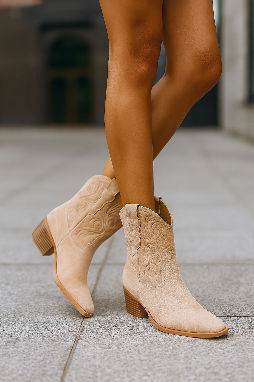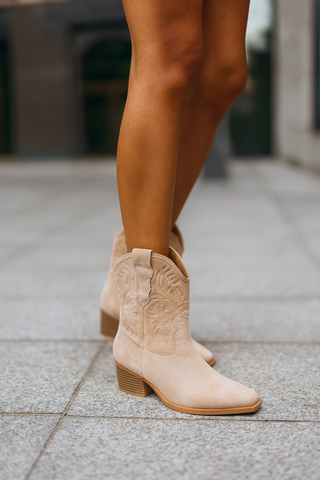 BEŻOWE ZAMSZOWE WYSOKIE KOWBOJKI BOTKI OBCAS ERANI