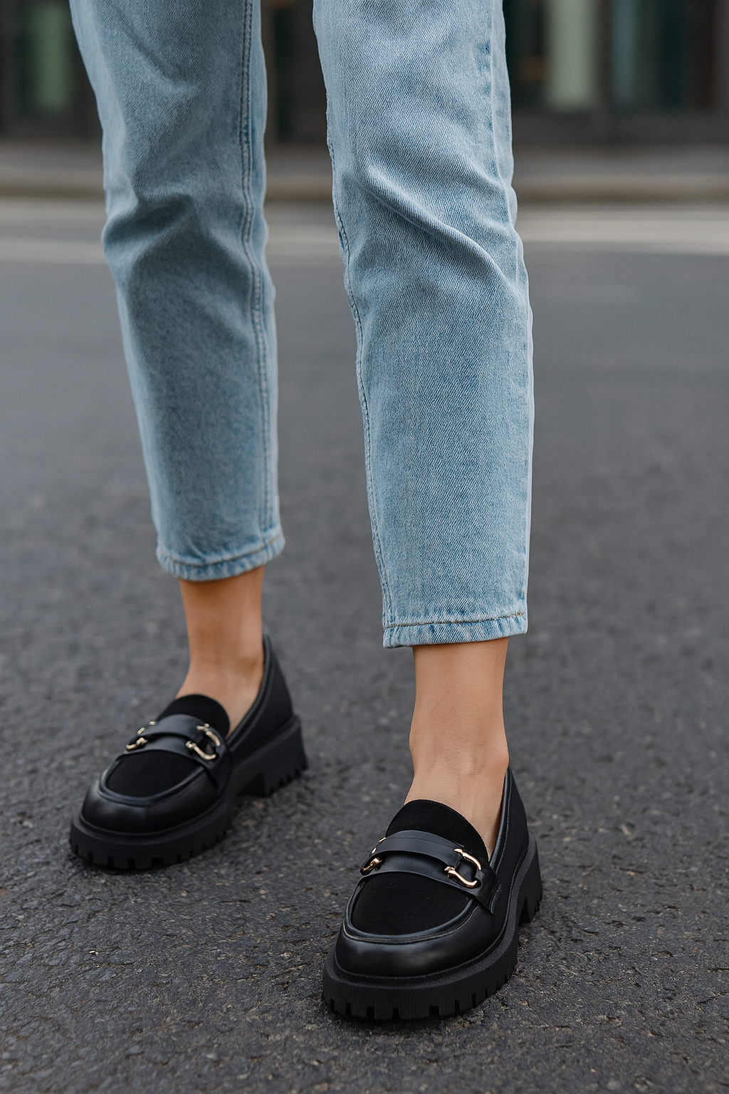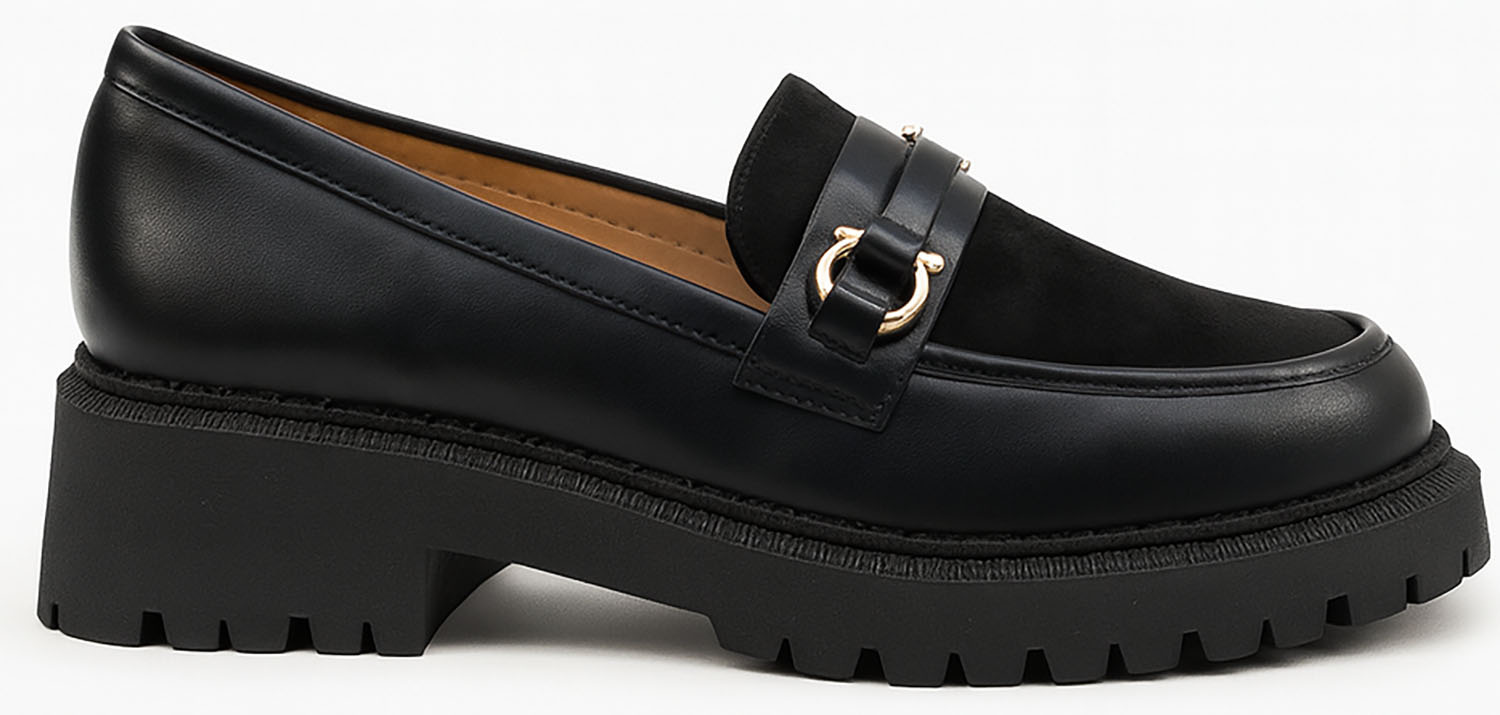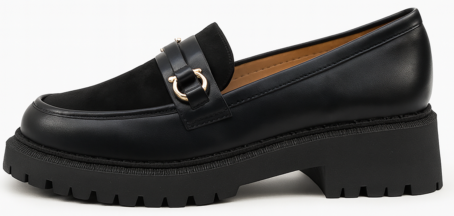 CZARNE PÓŁBUTY MOKASYNY MATOWE Z ŁAŃCUCHEM HELORI